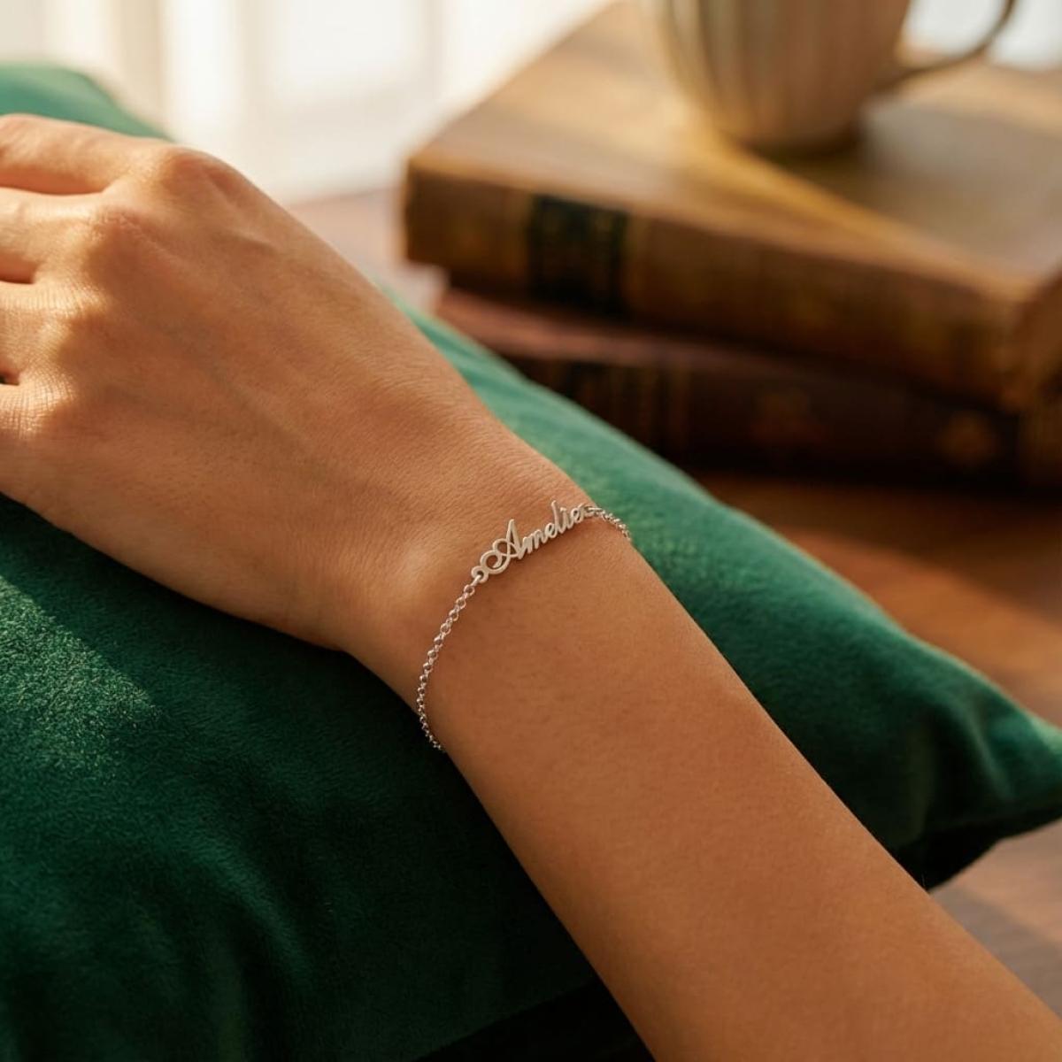 Ние от бижутерия Паладиум ви предлагаме едно уникално решение за подарък на любима жена – сребърна гривна с надпис по избор. Възможността да използвате нечие име за декоративен акцент на изделието, ви позволява да персонализирате подаръка си и по този начин да го направите много по-скъп и желан. Персоналният жест е това, което придава на подаръците истинска стойност и специално значение.
