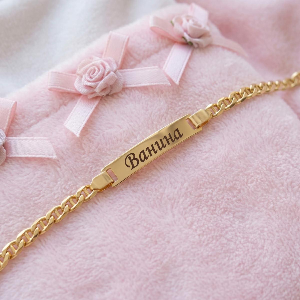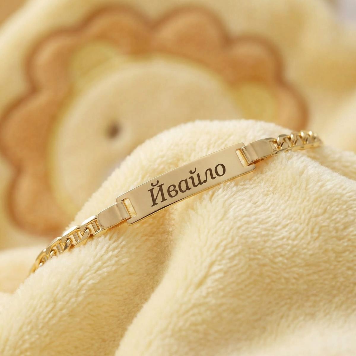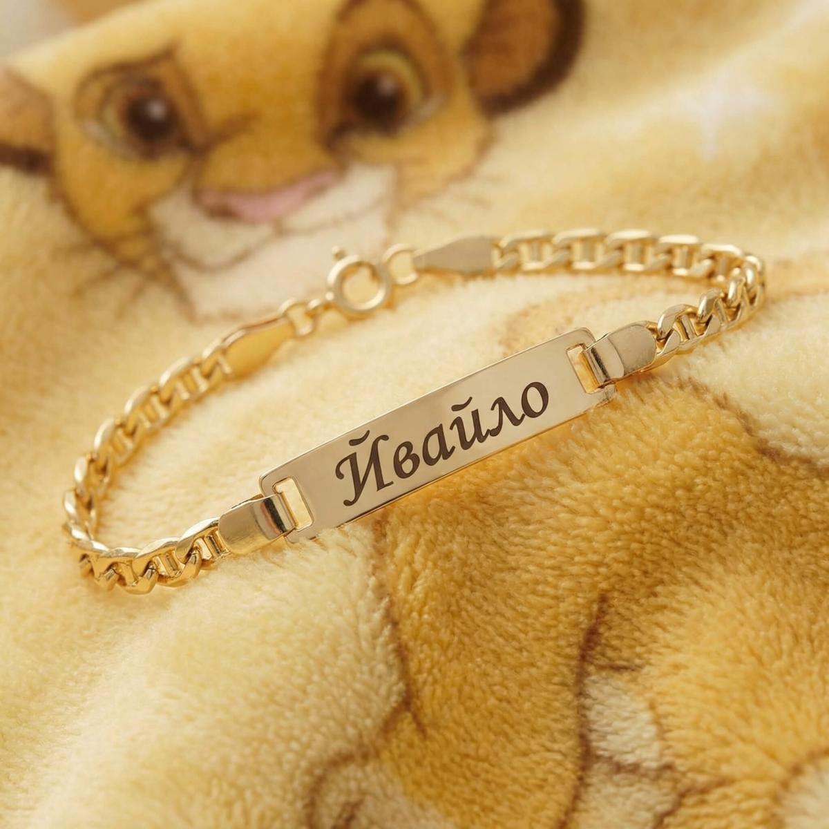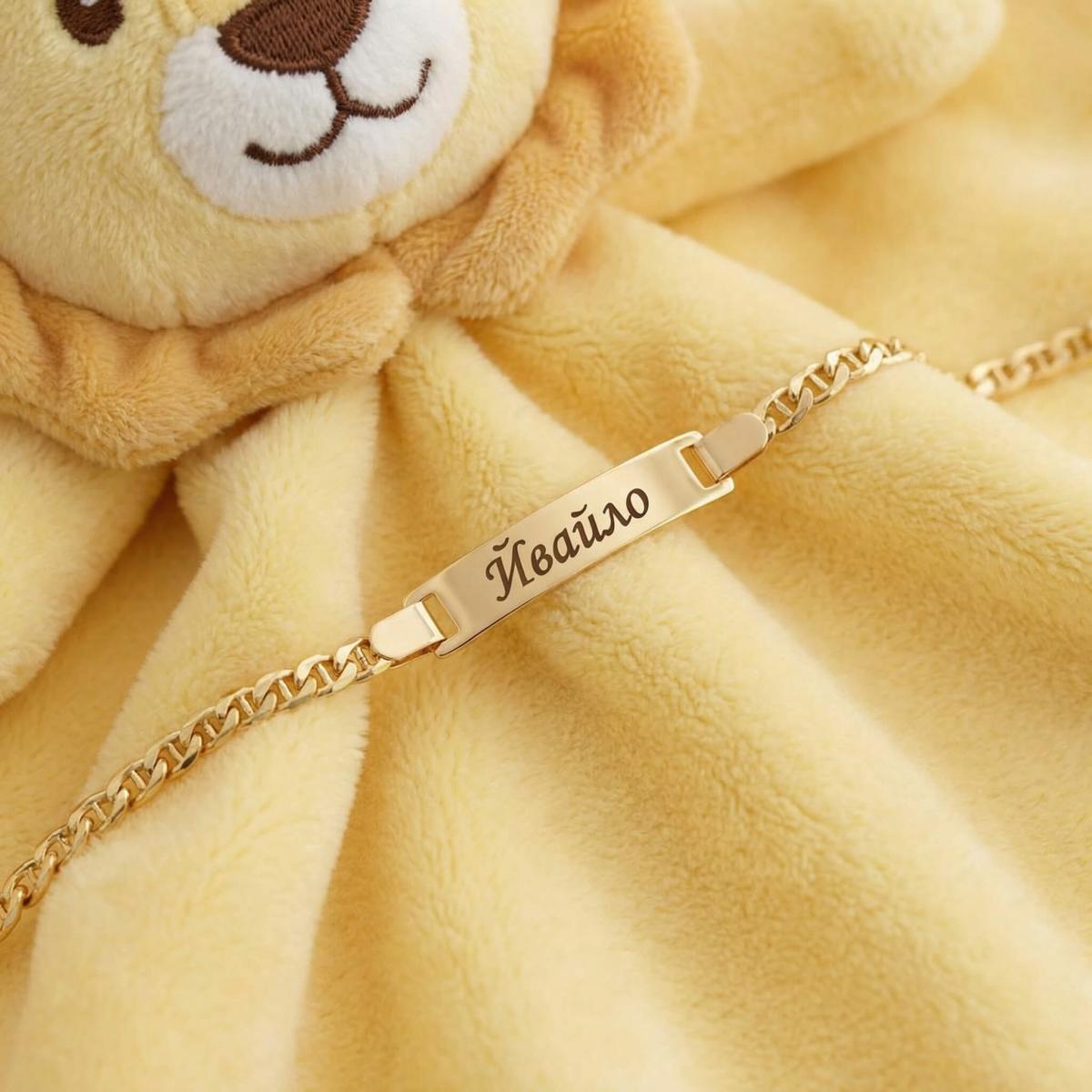 Златна детска гривна с плочка, с възможност за гравиране