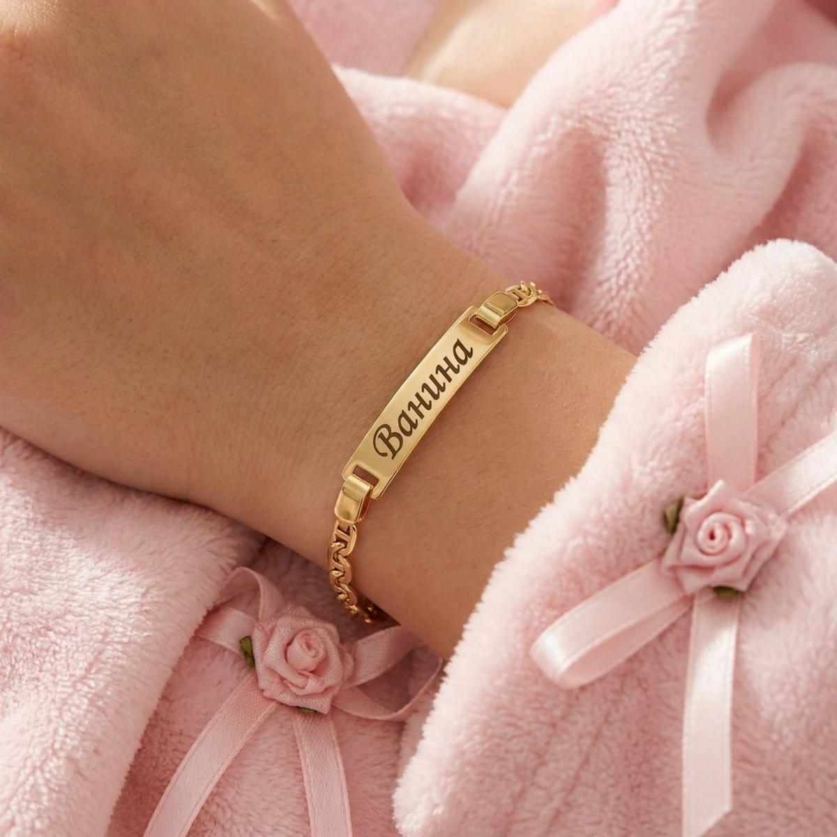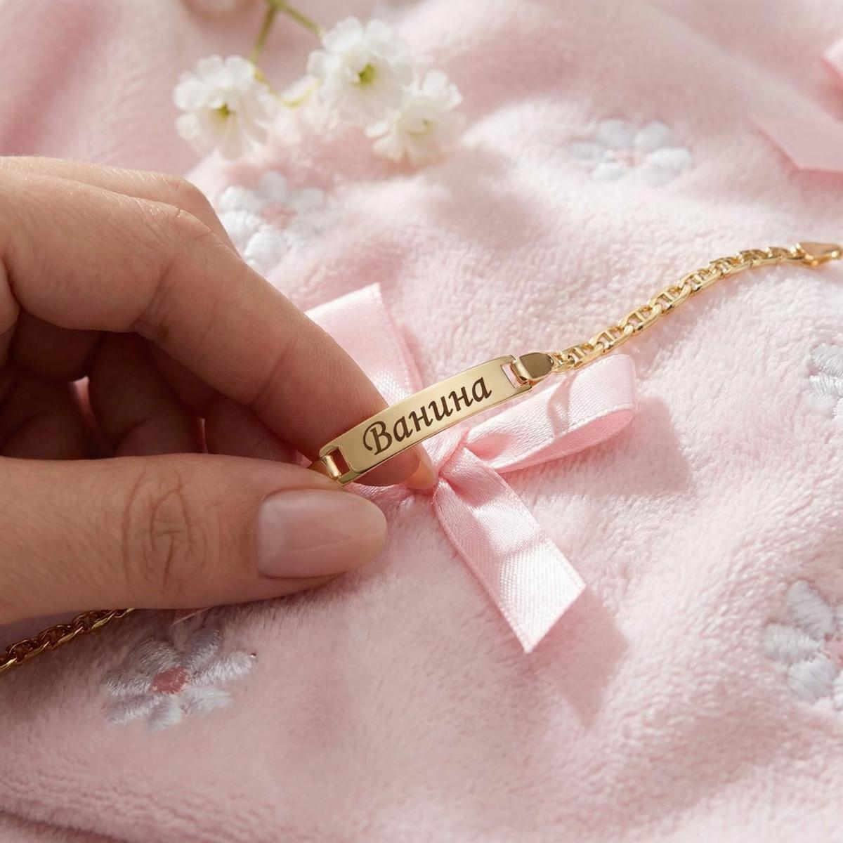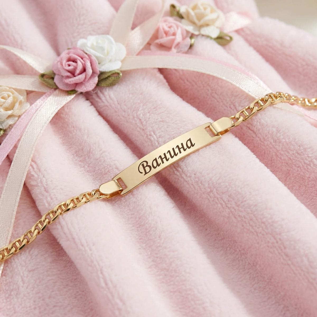 Златна детска гривна с плочка, с възможност за гравиране