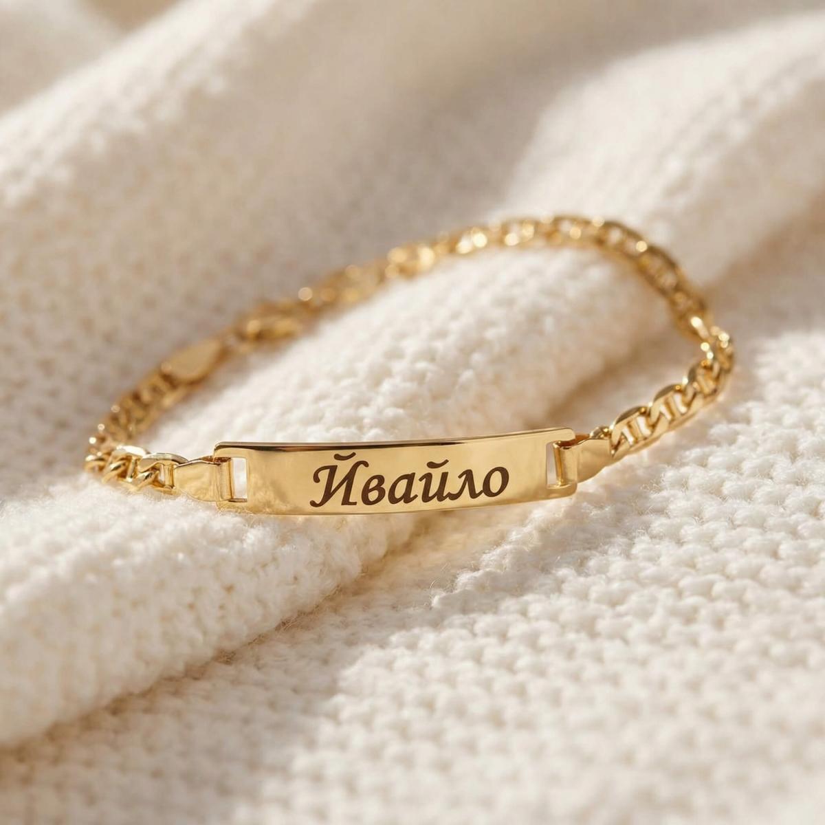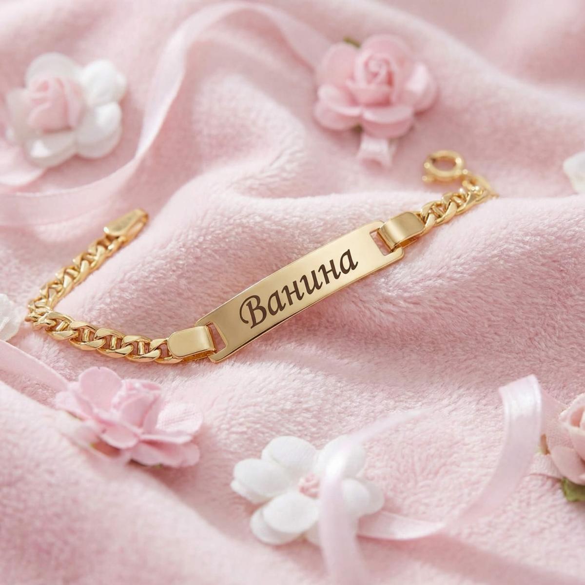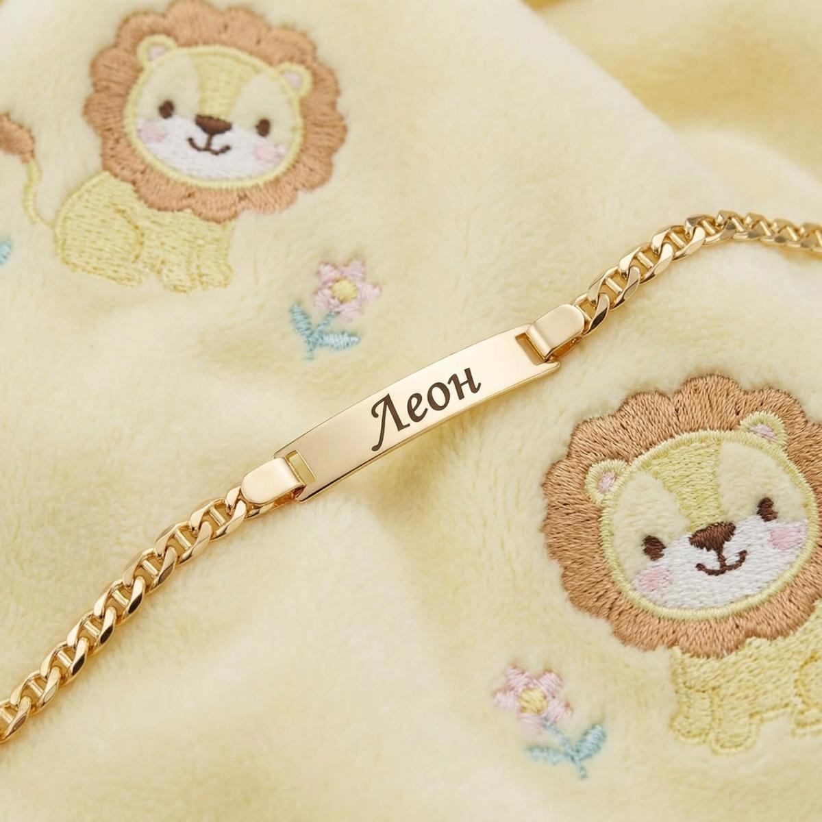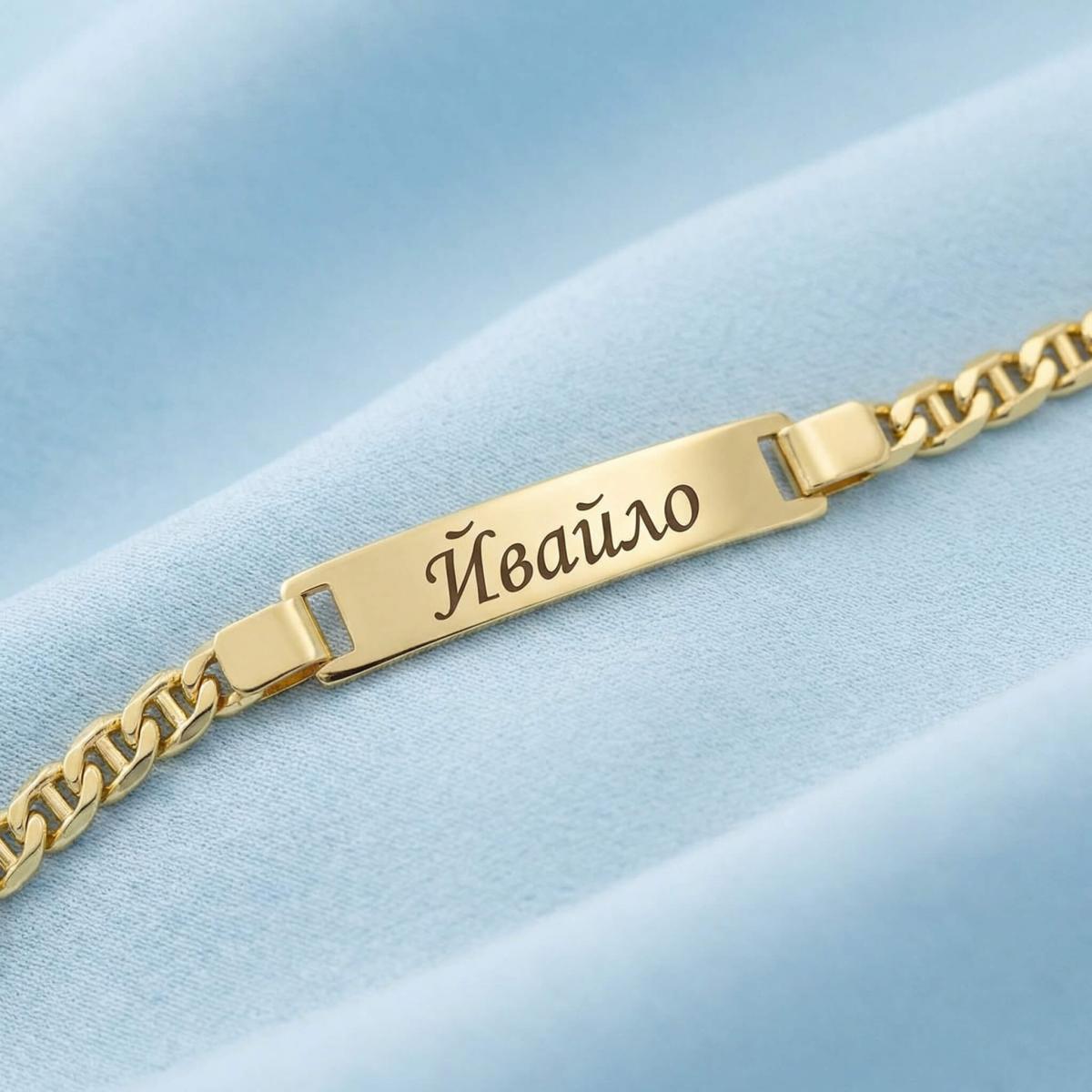 Златна детска гривна с плочка, с възможност за гравиране