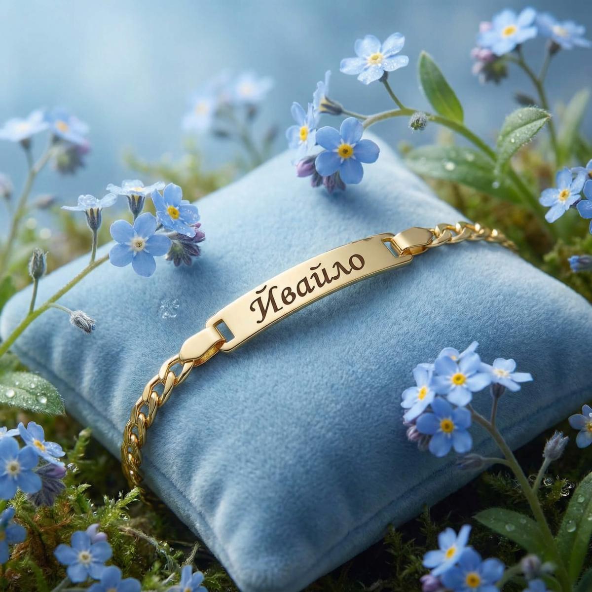 Златна детска гривна с плочка