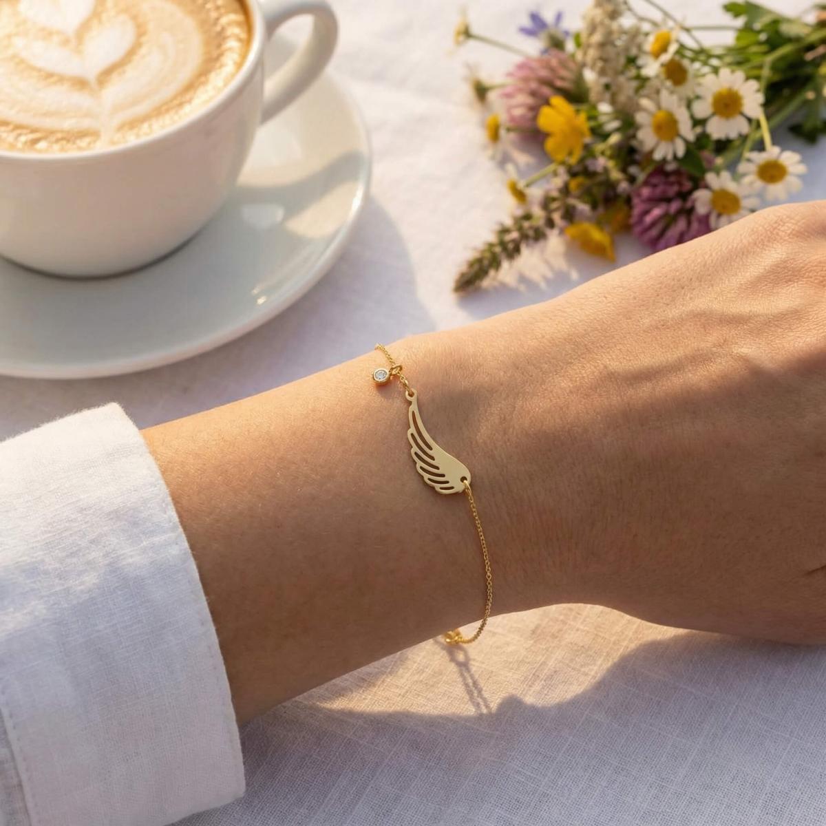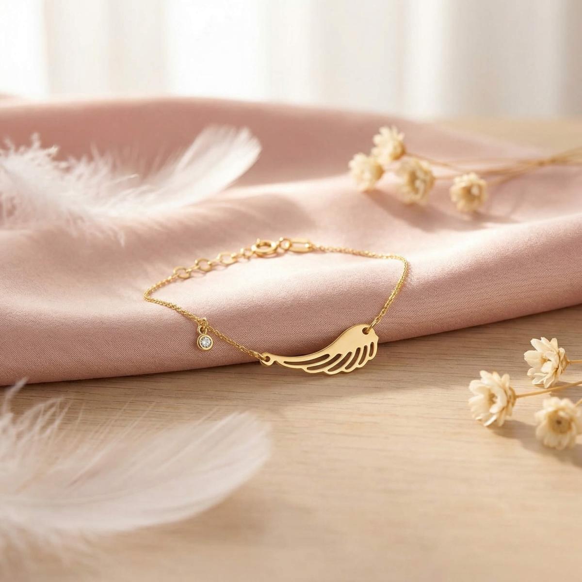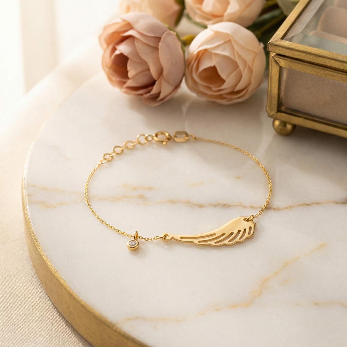 Златна гривна Ангелско крило – изработена от жълто злато, символ на нежност и закрила.
