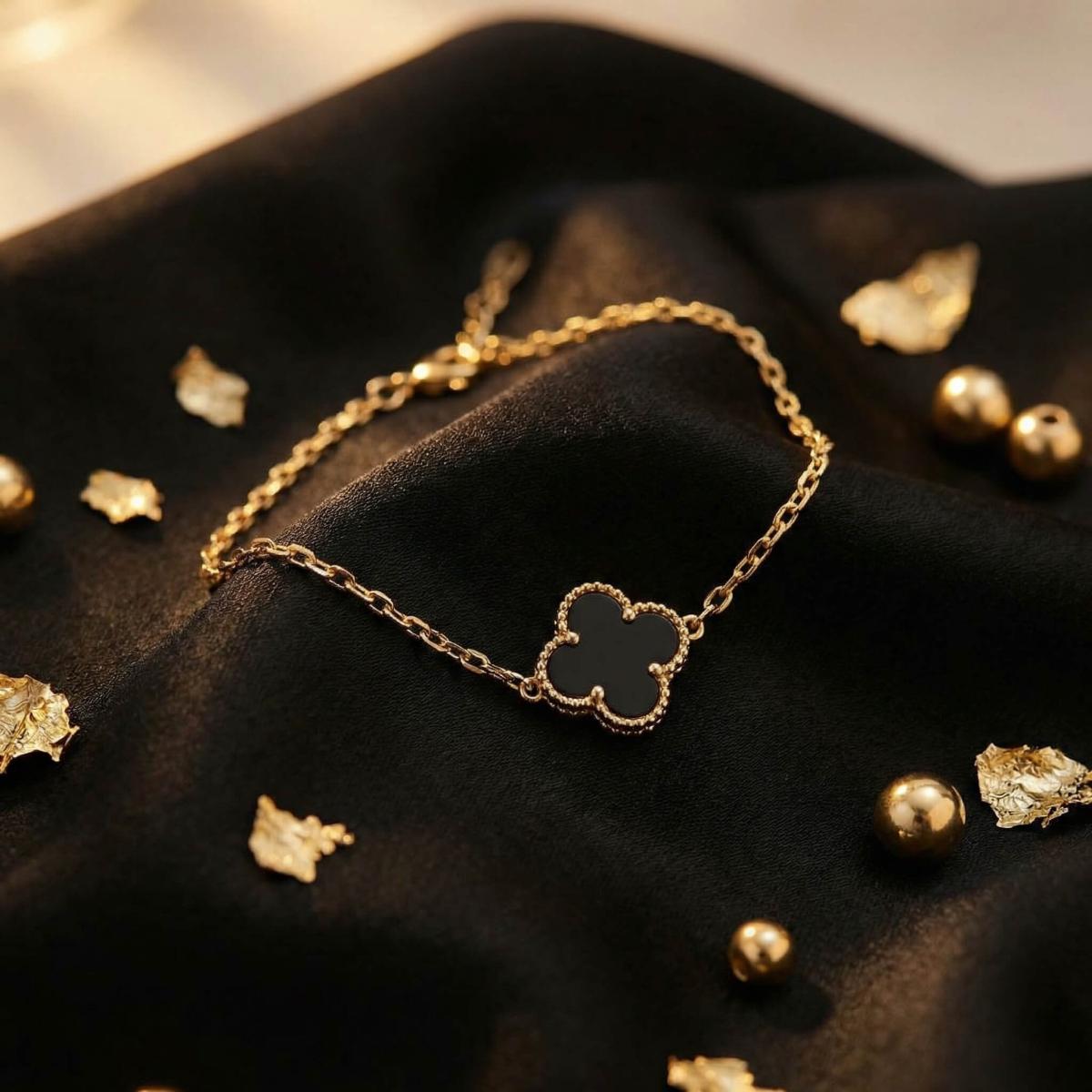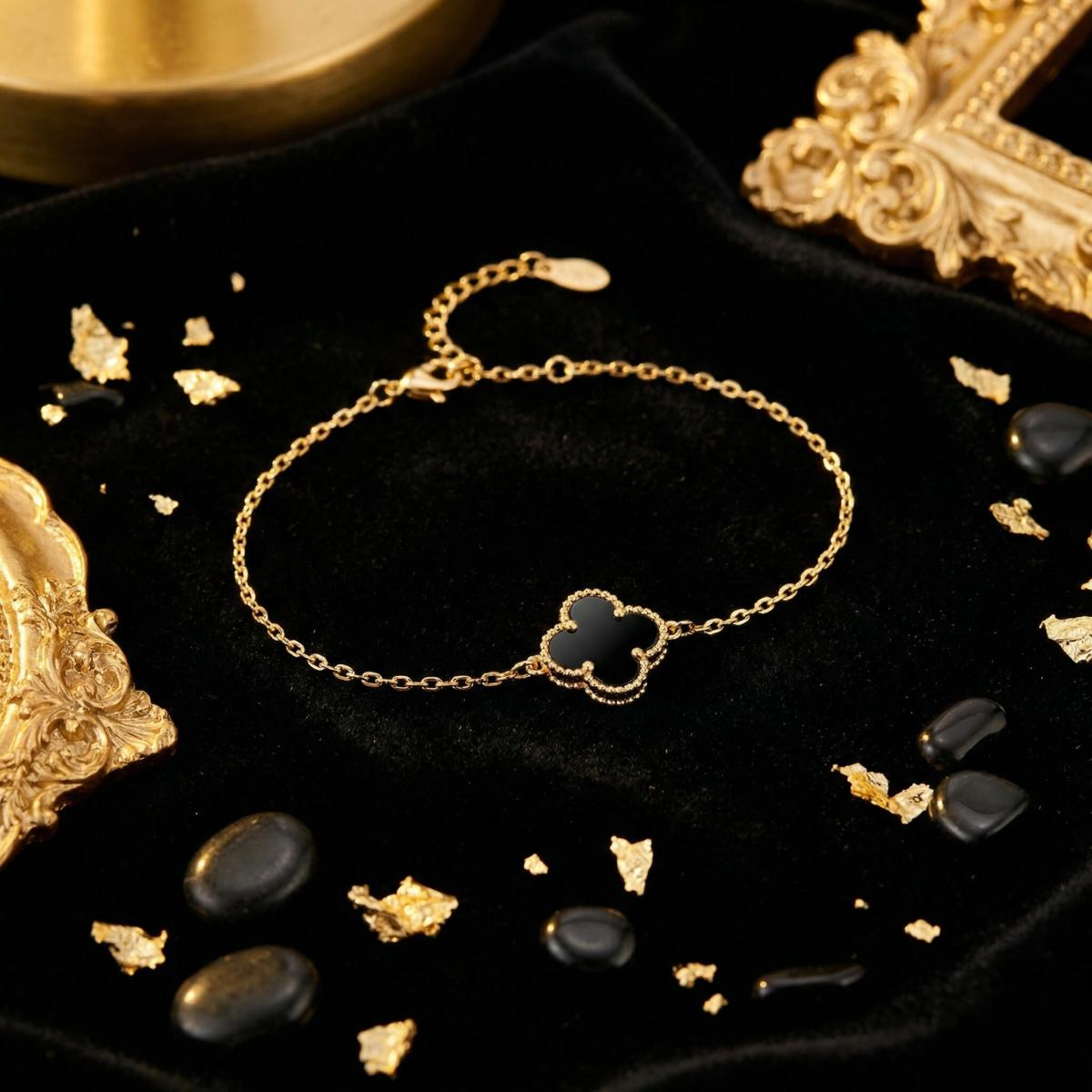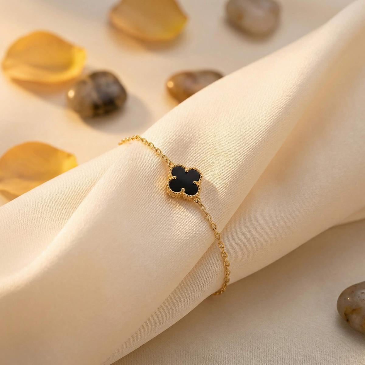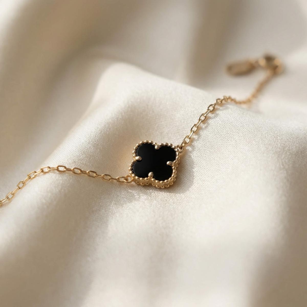 Златна гривна с черна детелинка-9мм