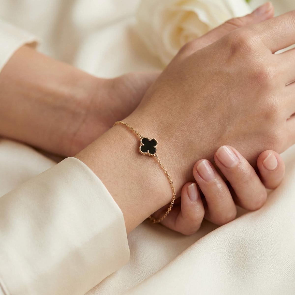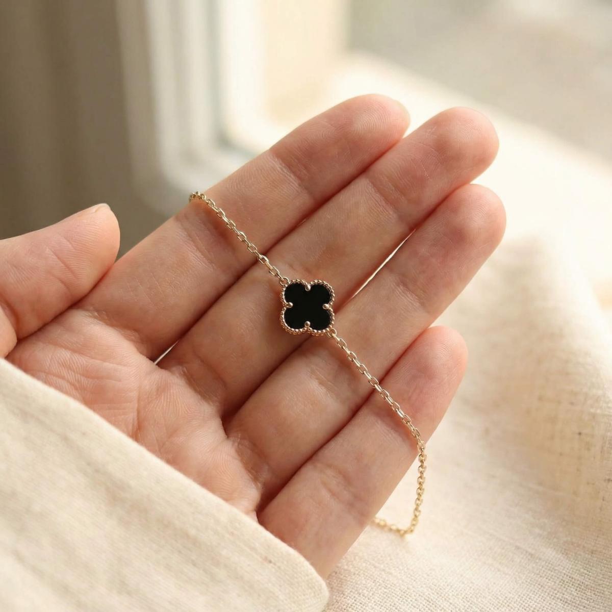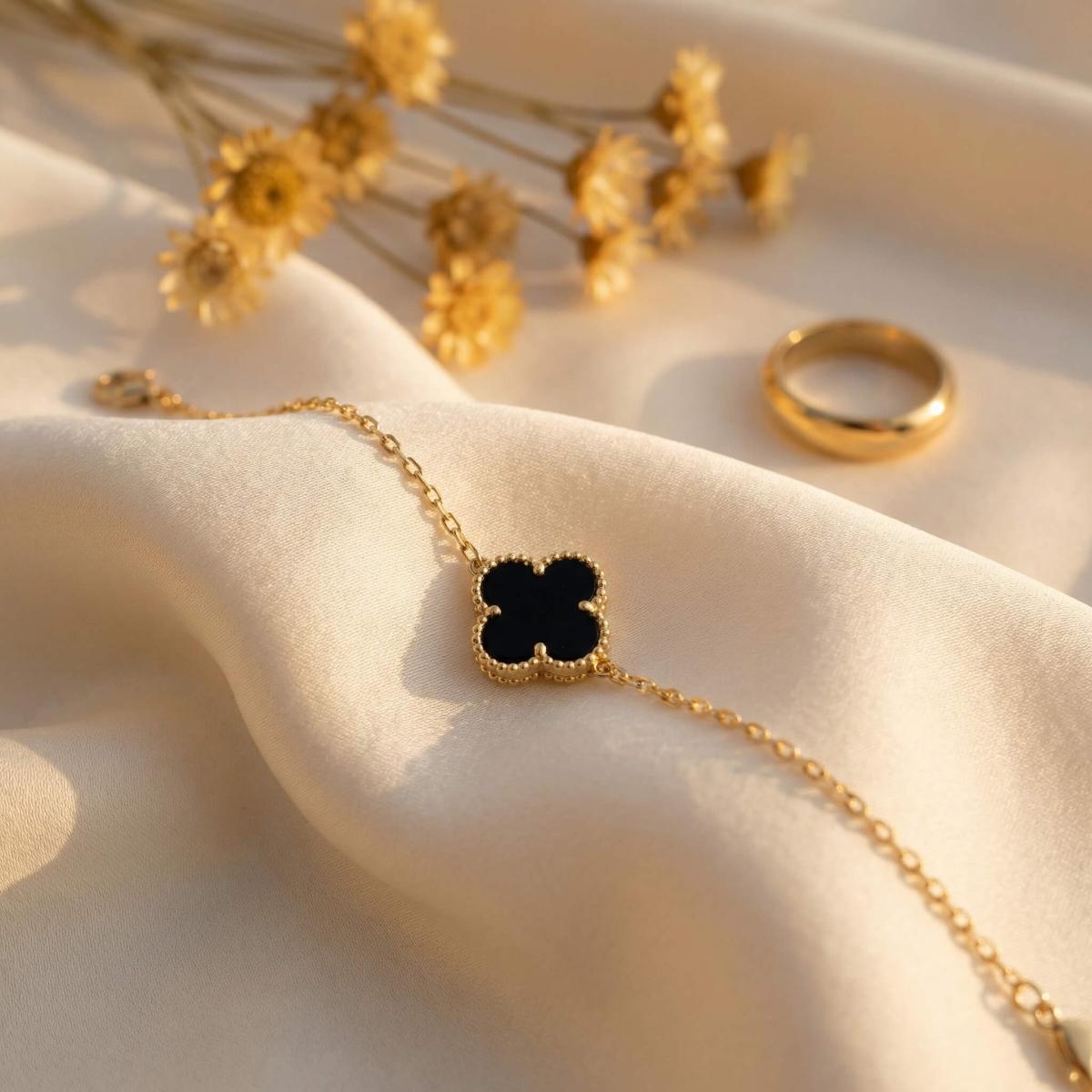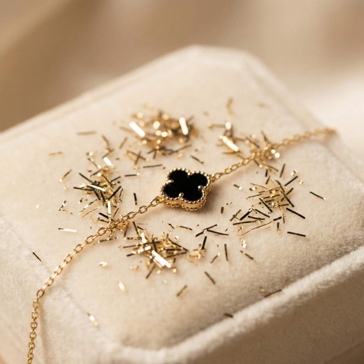 Златна гривна с черна детелинка-9мм