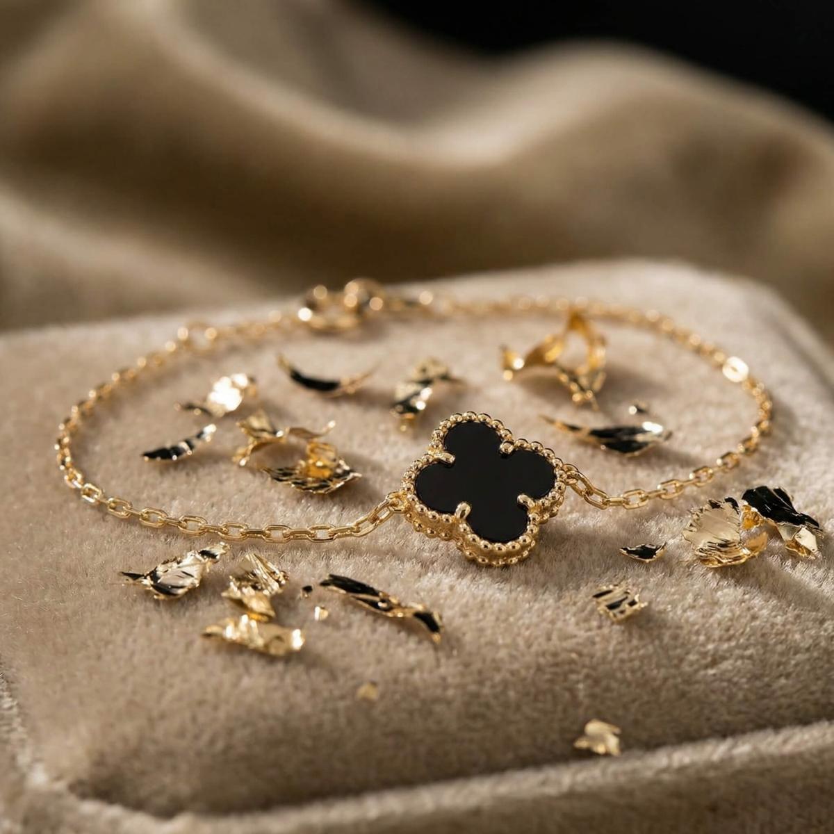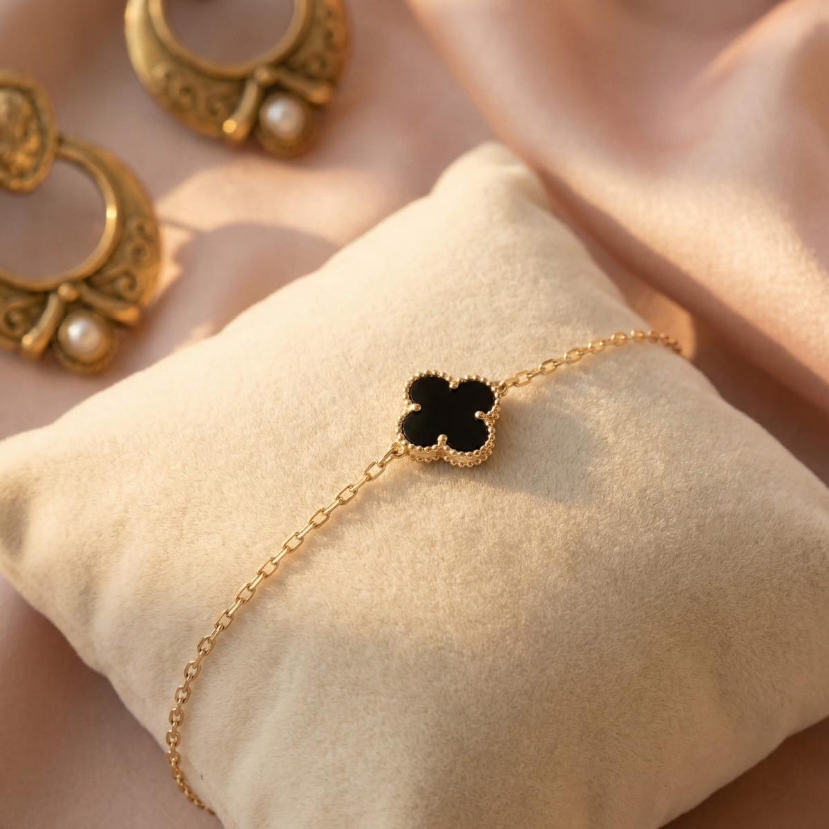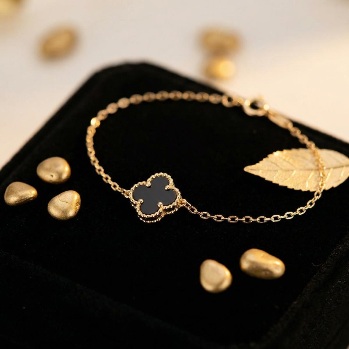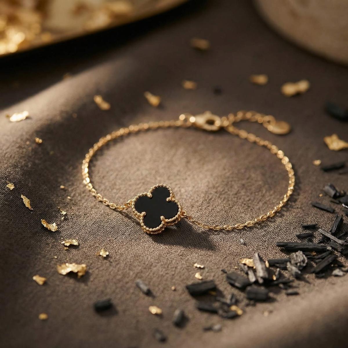 Златна гривна с черна детелинка-9мм