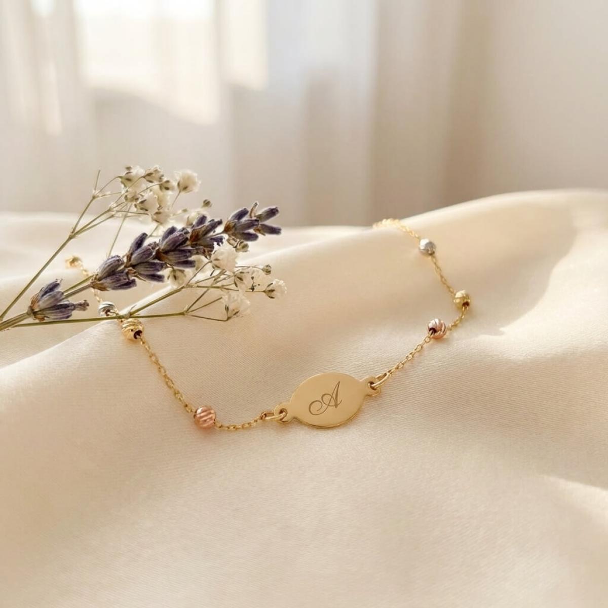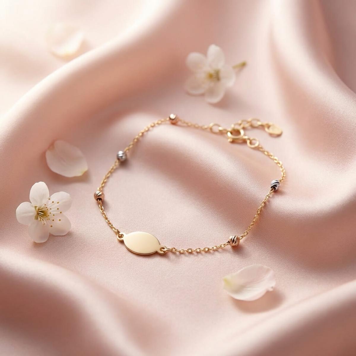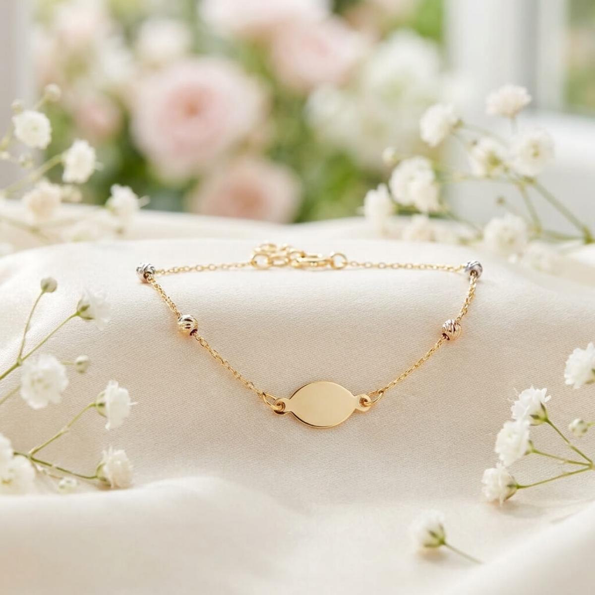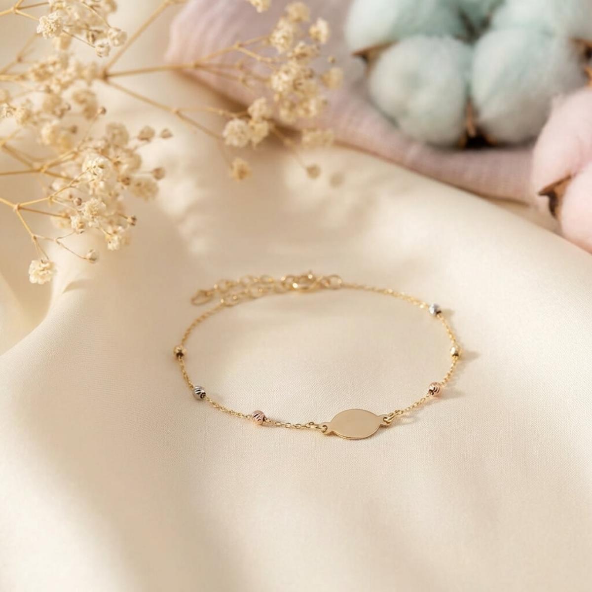 Златна гривна с плочка, с възможност за гравиране