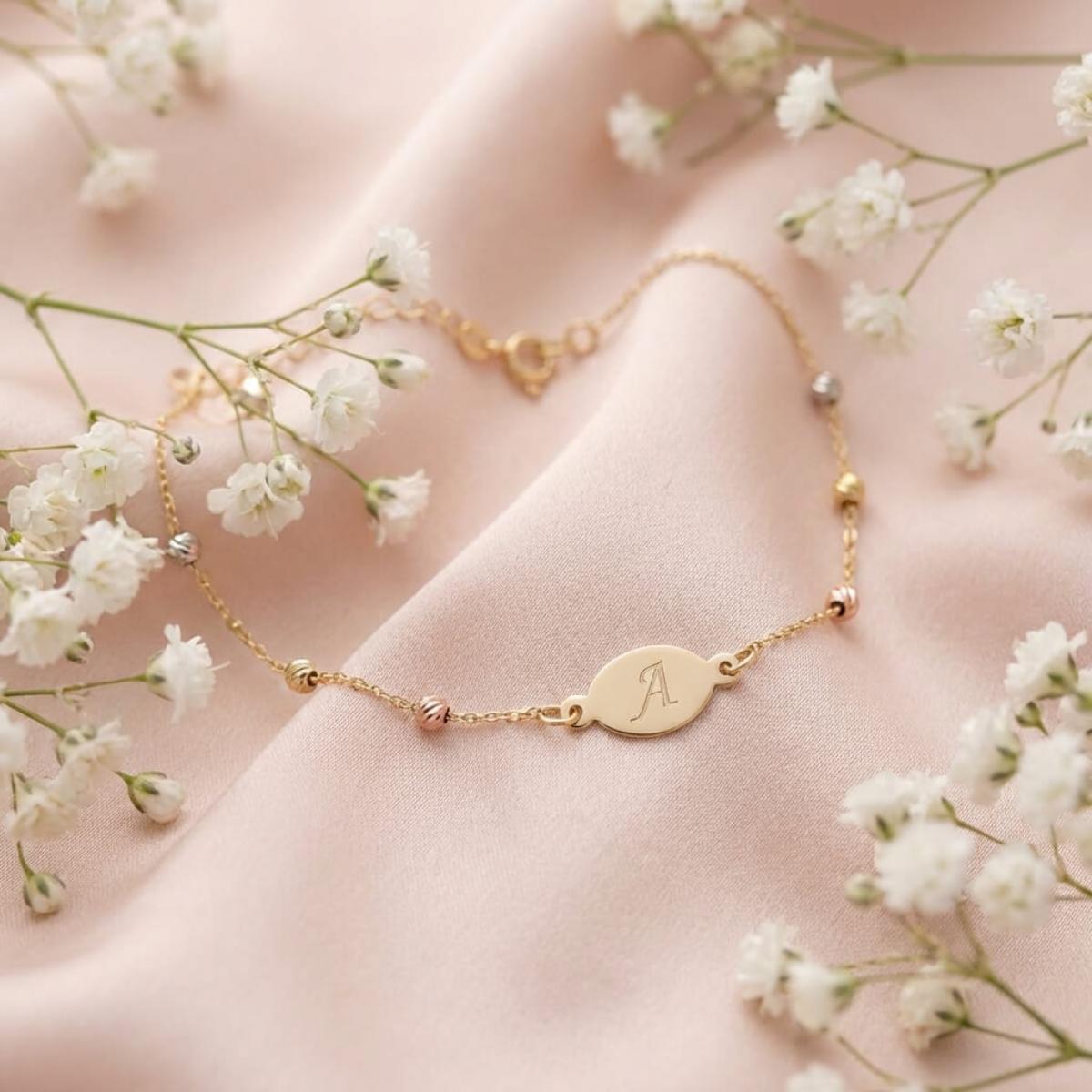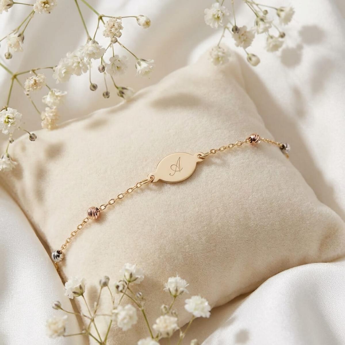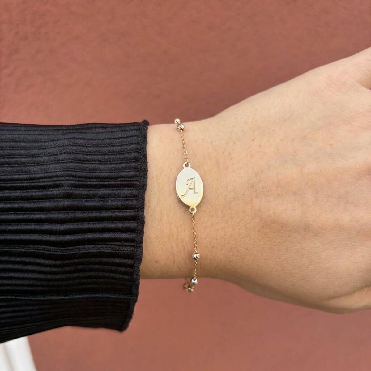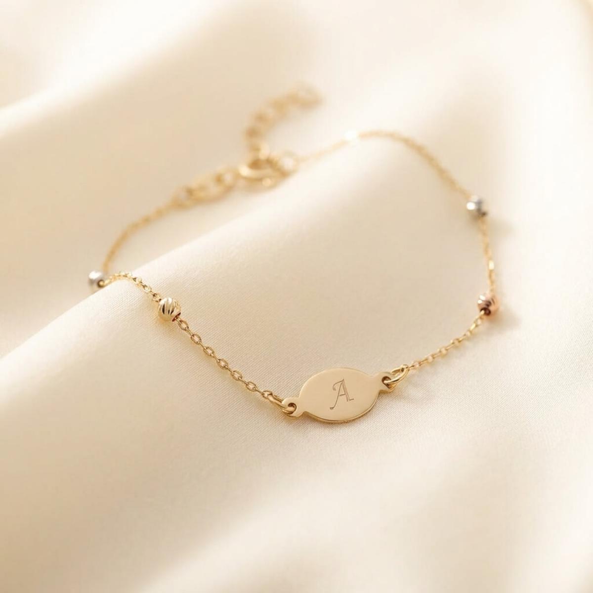Златна гривна с плочка, с възможност за гравиране
