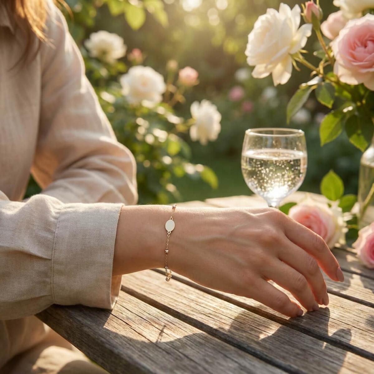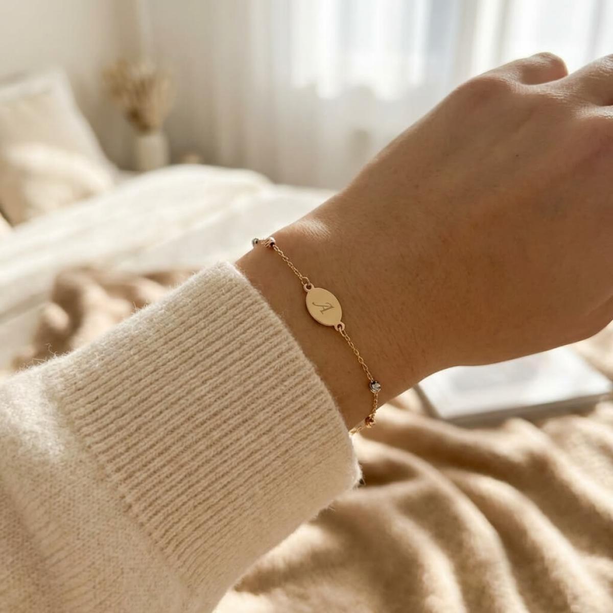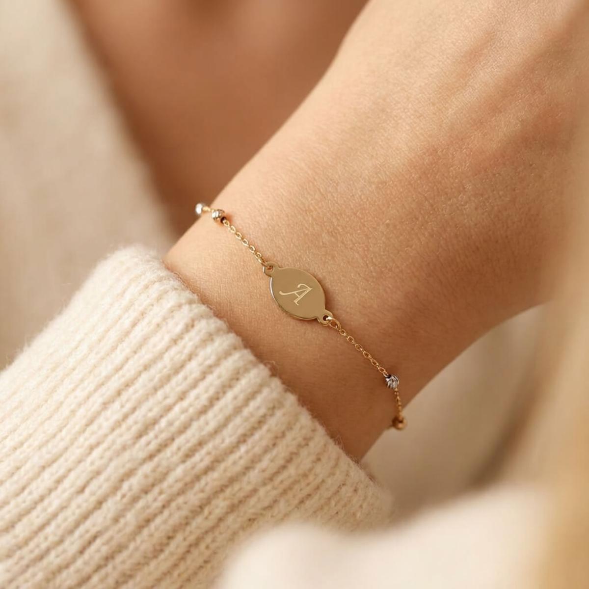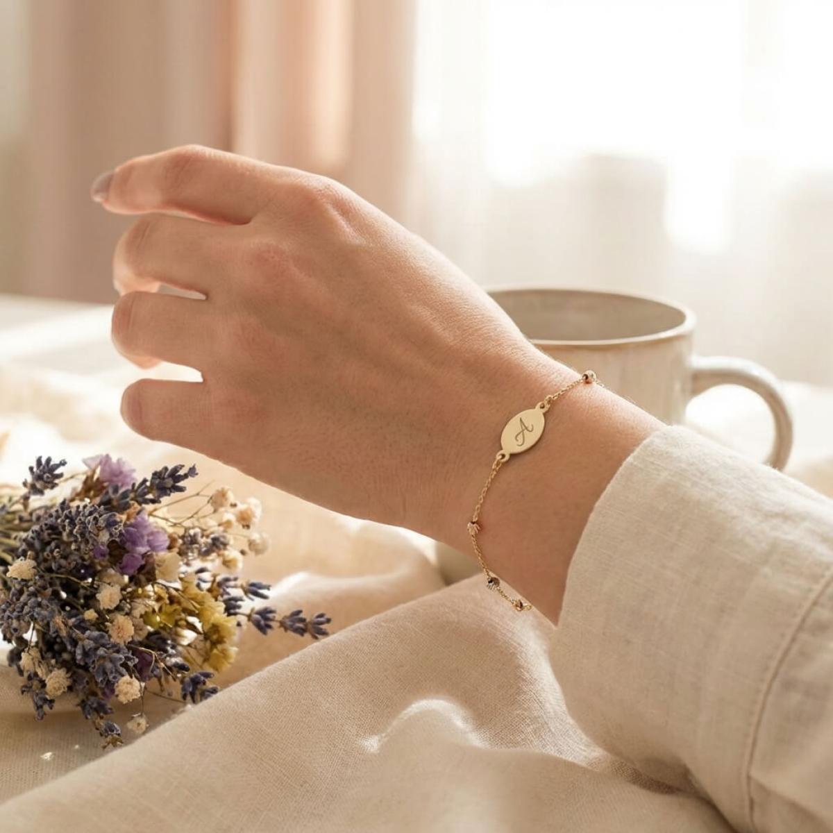 Златна гривна с плочка, с възможност за гравиране