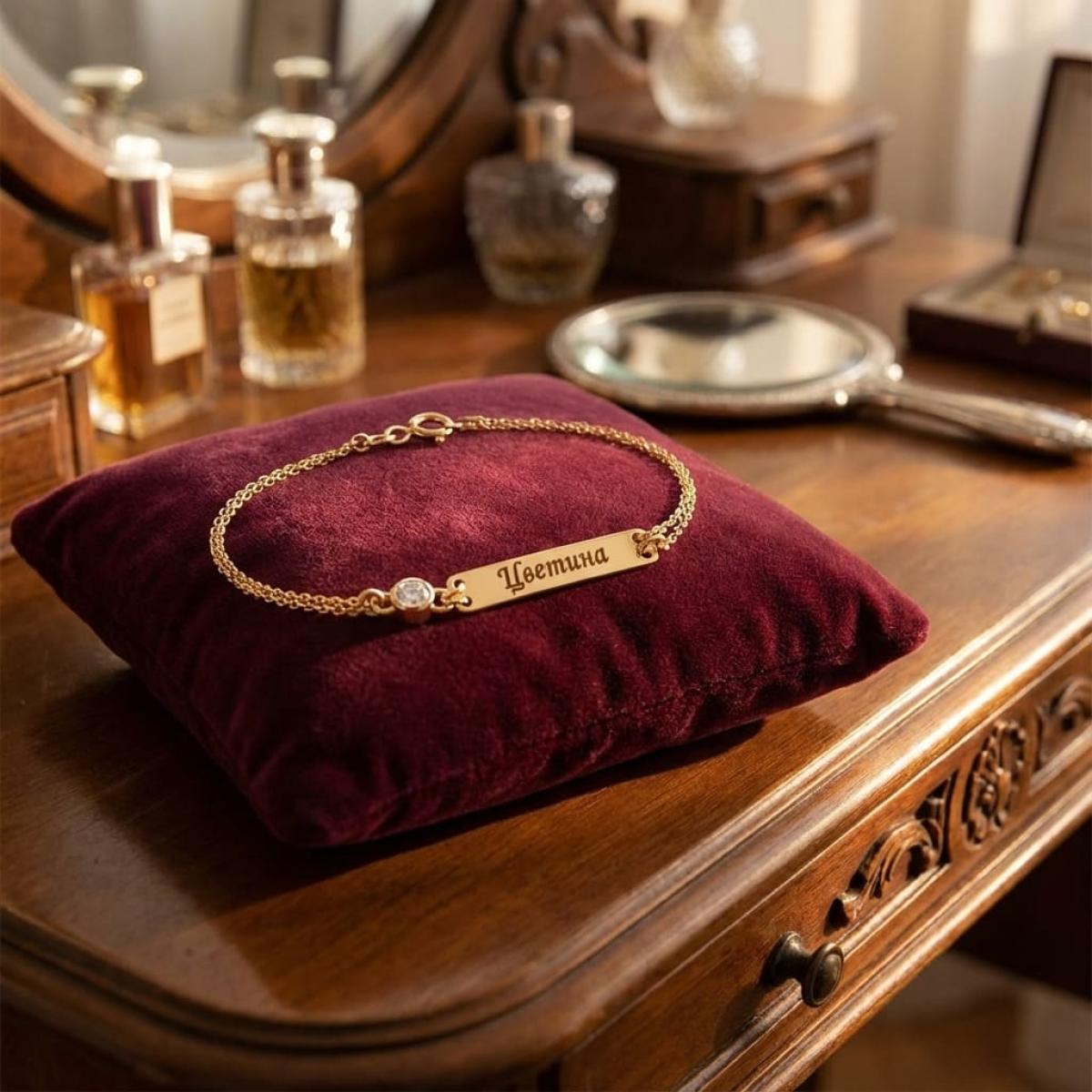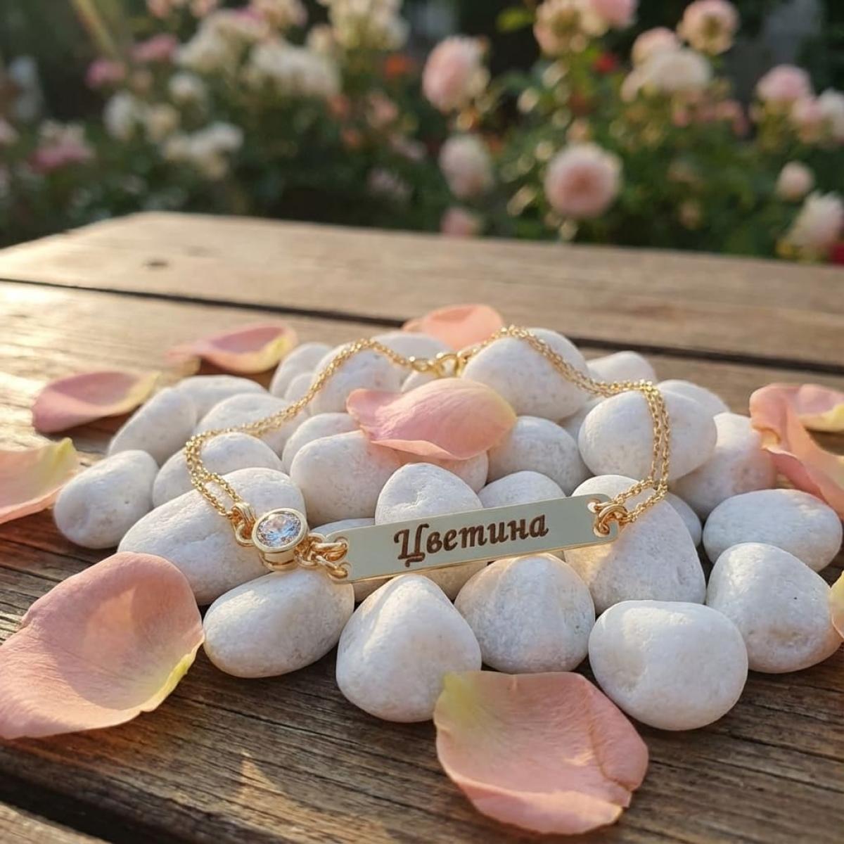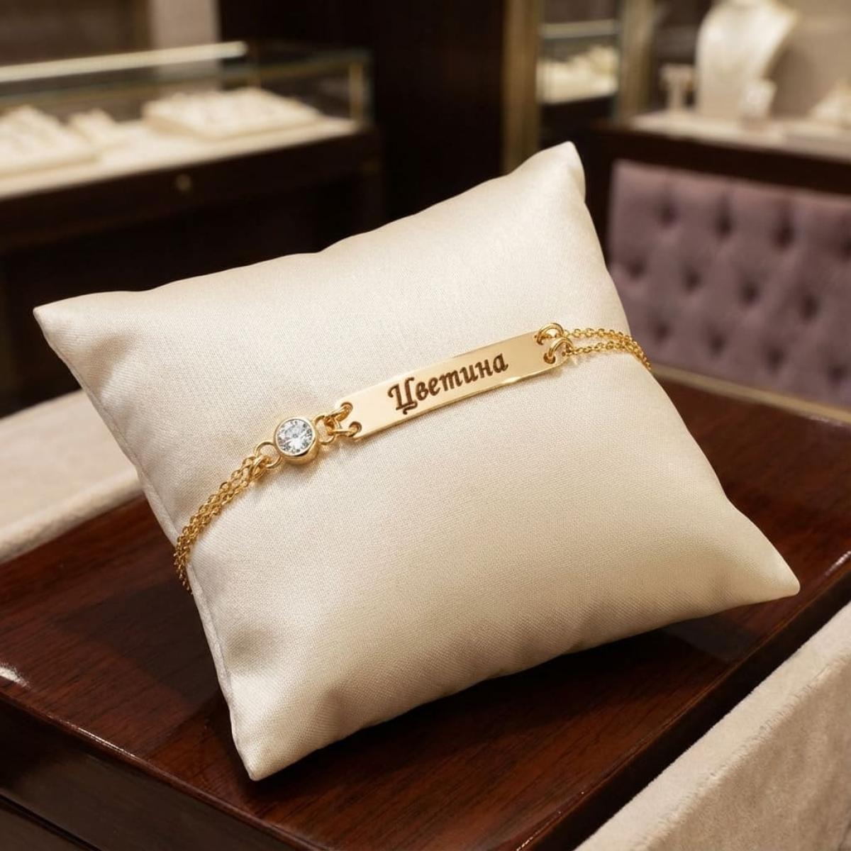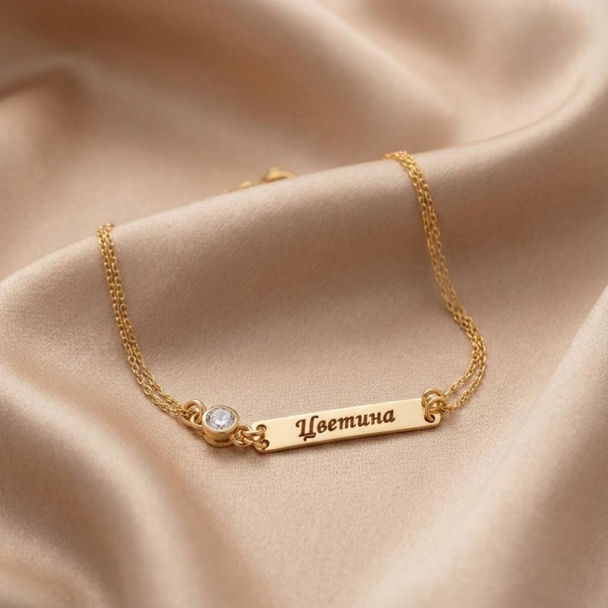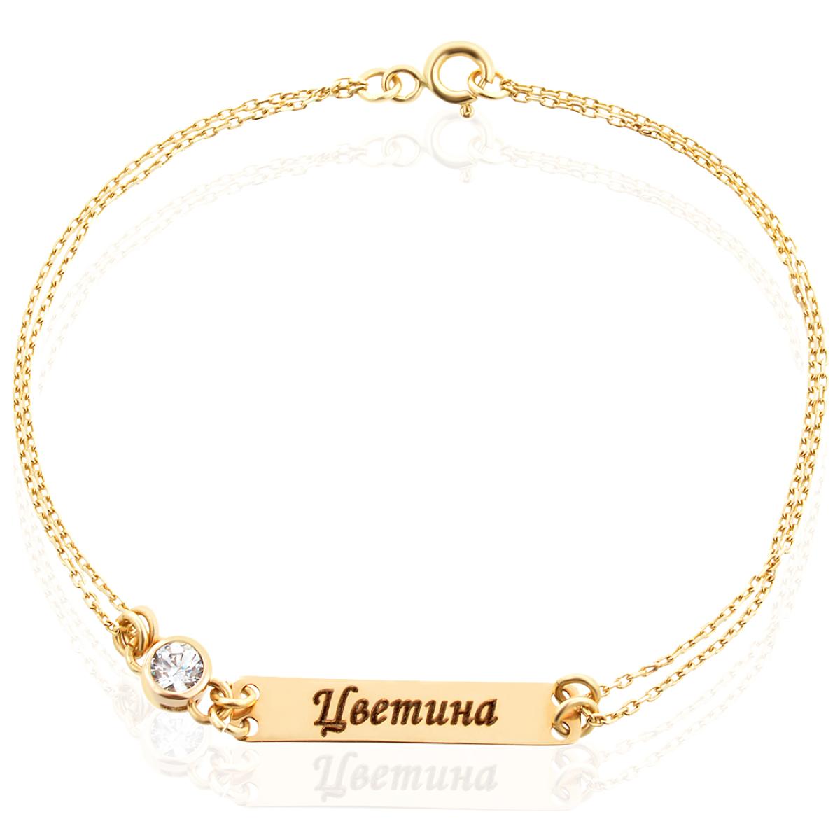 Златна гривна с плочка и циркон