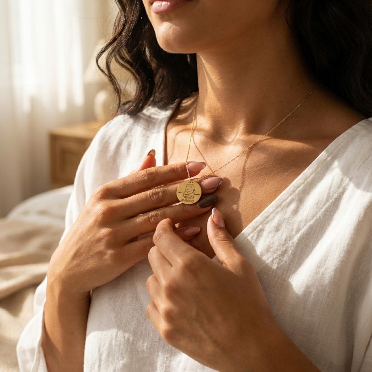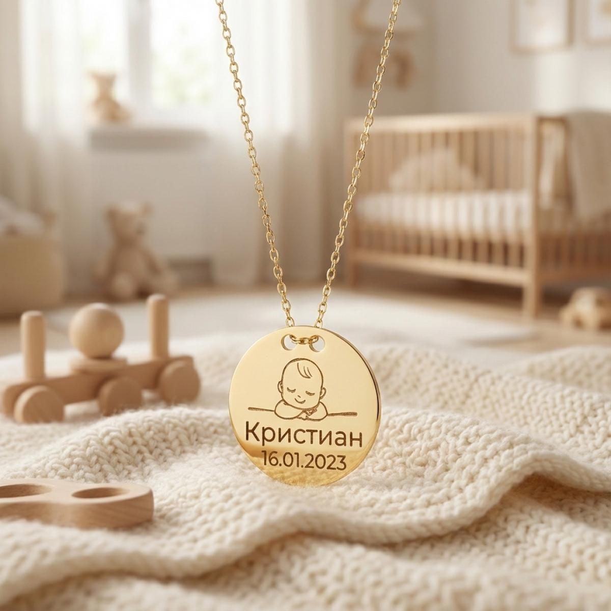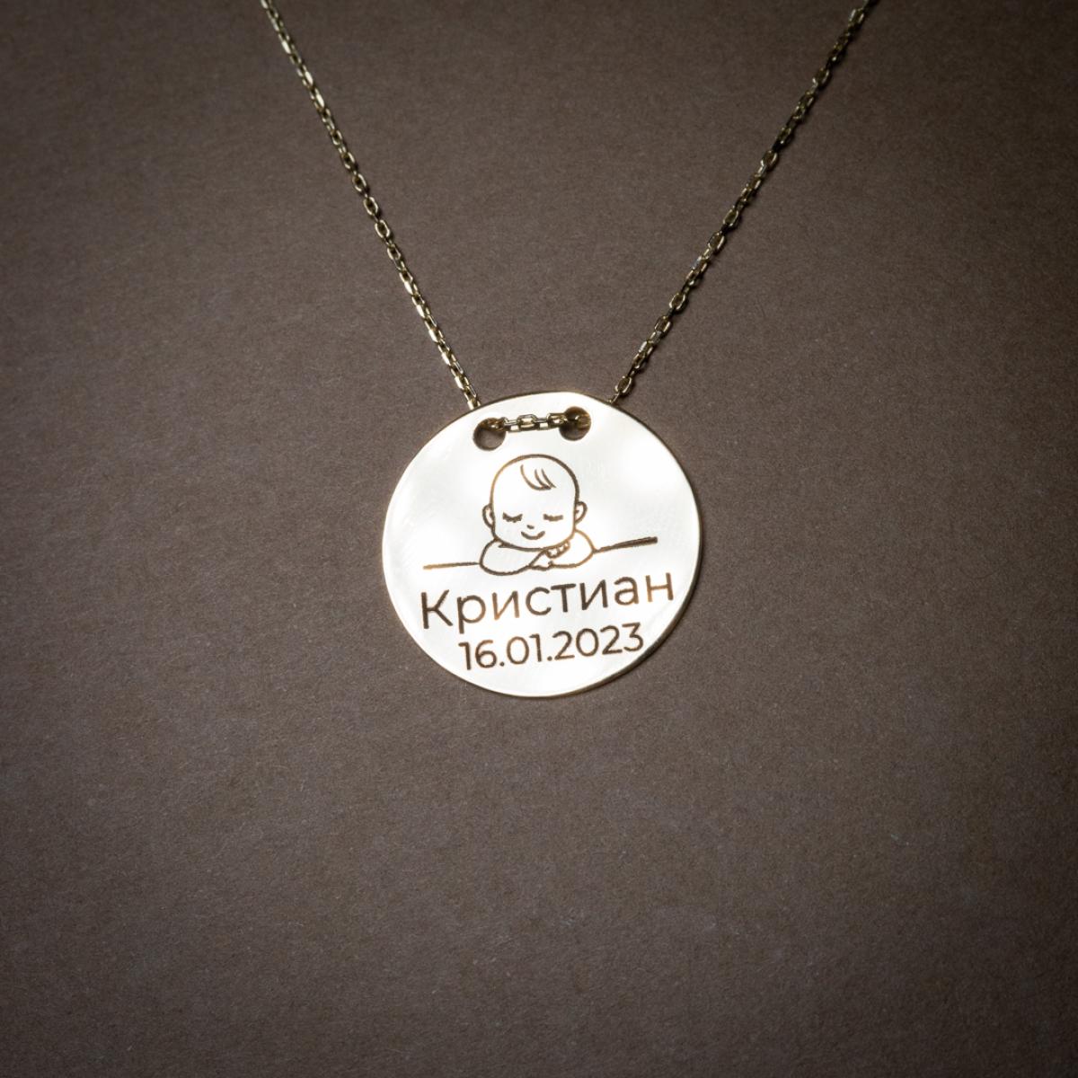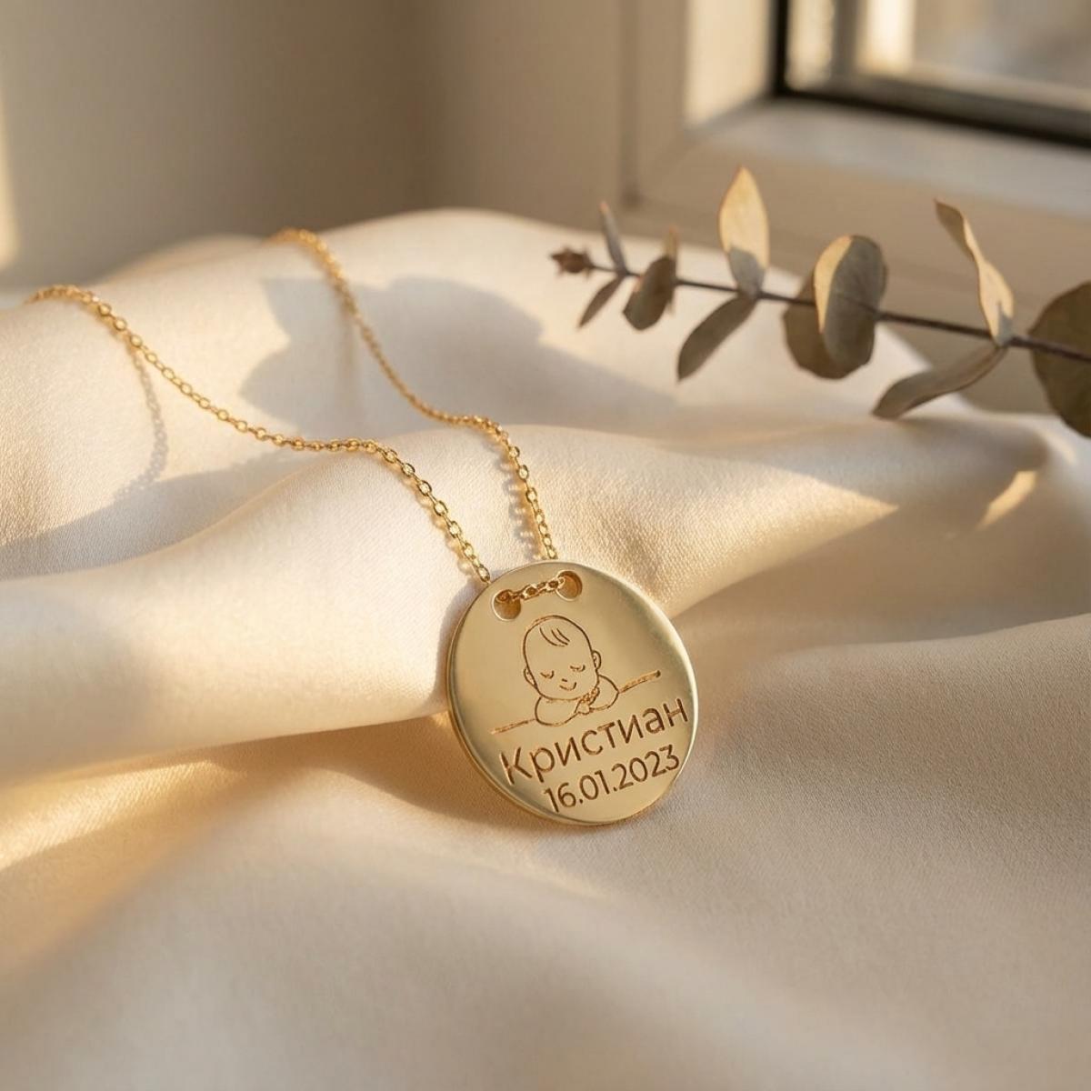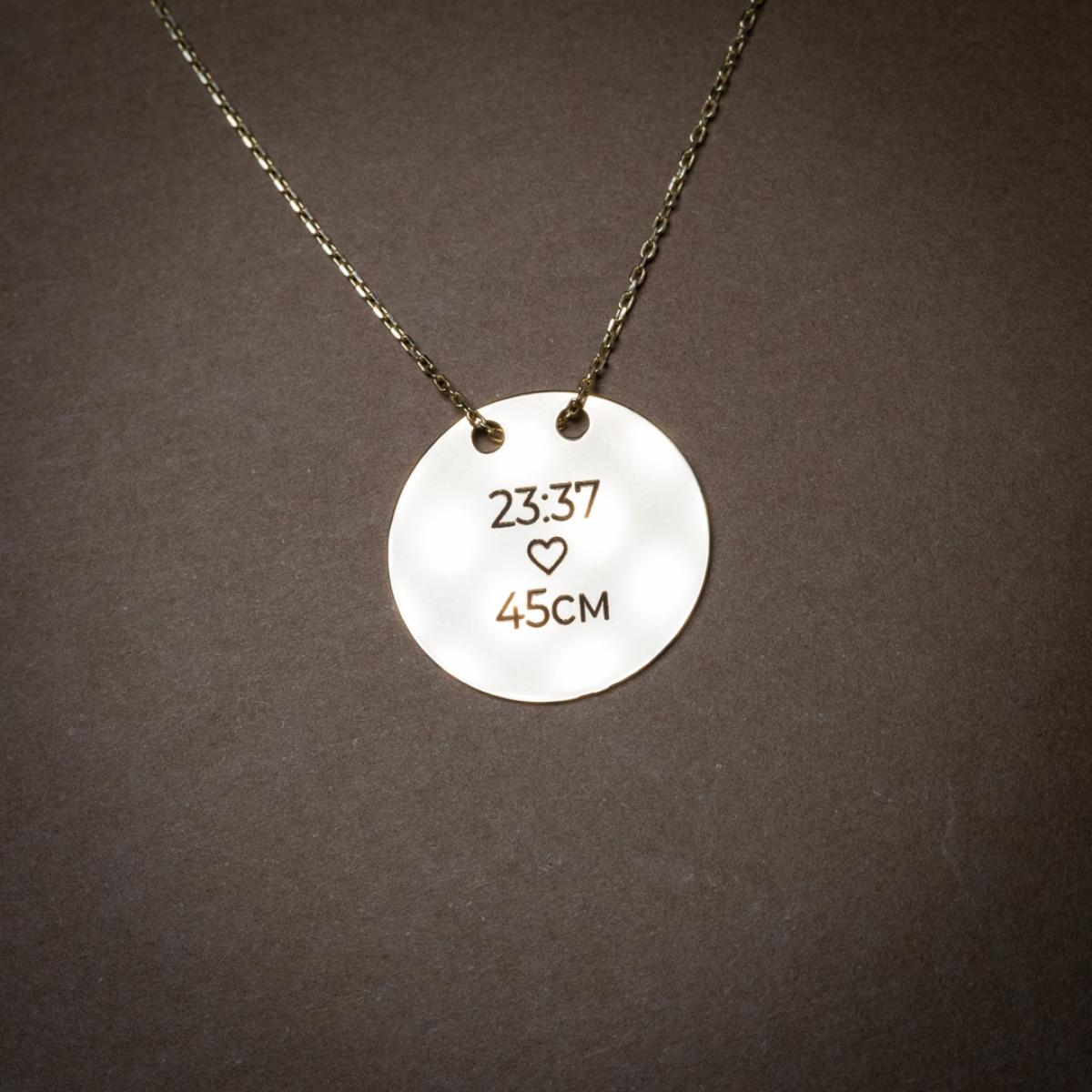 Гравирайте рождените данни на Вашето бебе на златното колие и носете талисмана навсякъде със себе си. ❤️