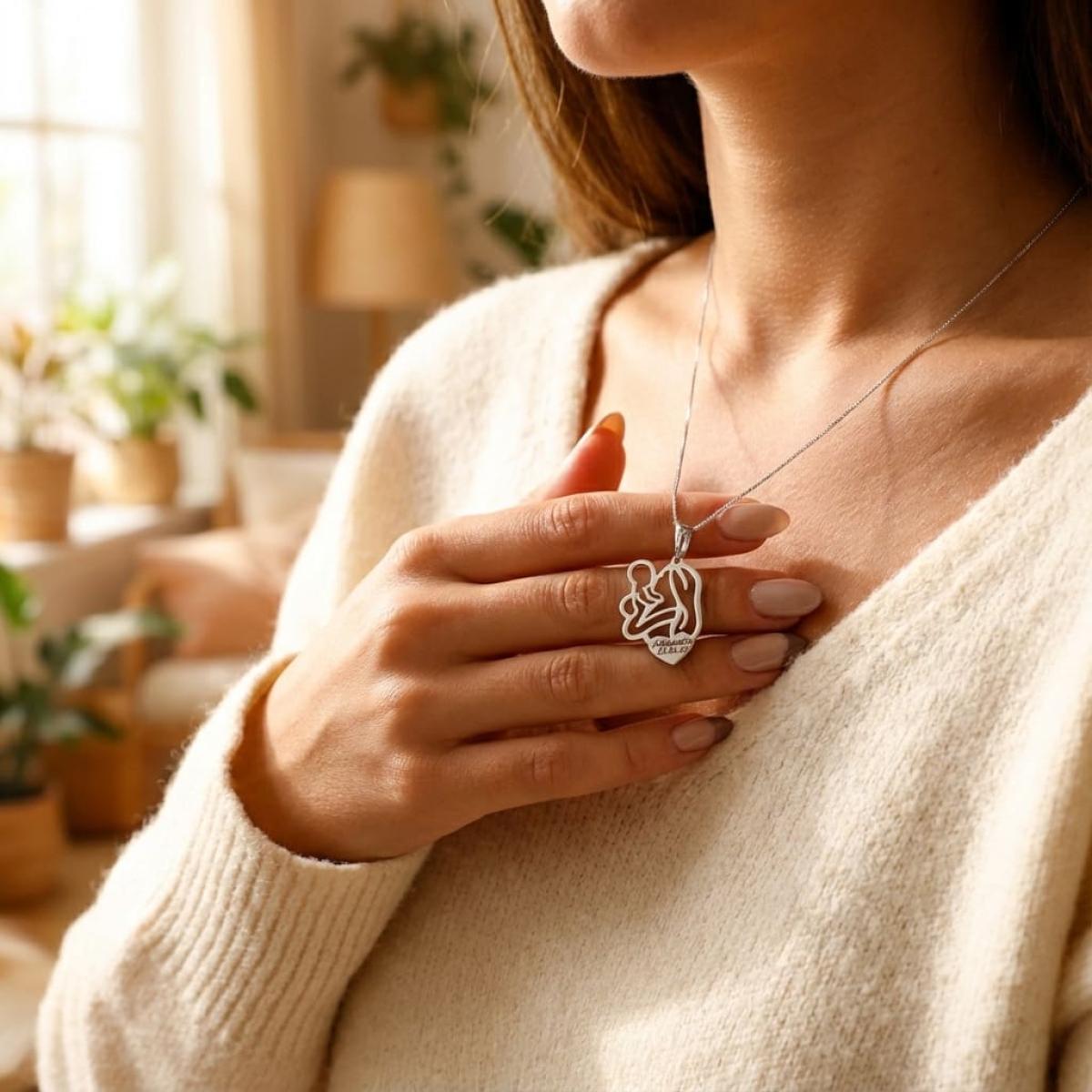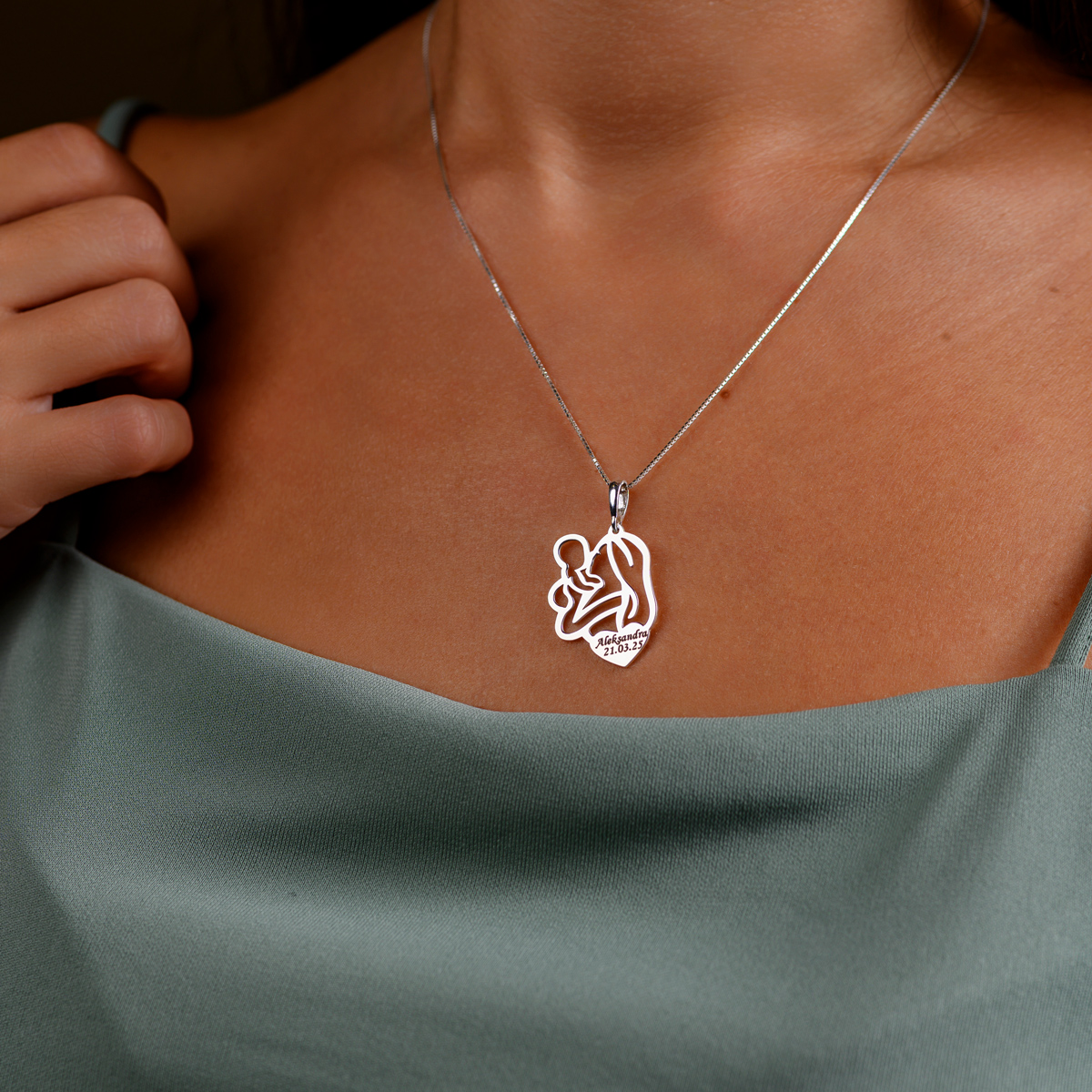 Израз на най-чистата любов – медальонът Майчина прегръдка е емоционално бижу, което символизира нежната връзка между майка и дете. Изработен от сребро проба 925, той представя стилизирана фигура на майка, прегръщаща детето си в нежна извивка.