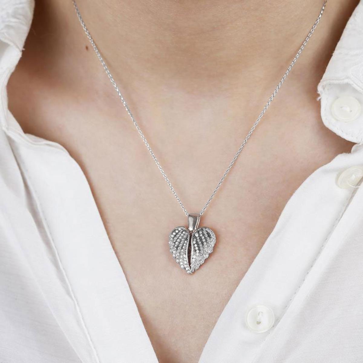 Нежно сребърно колие (пр.925) Ангелски криле, в основата му е скрито сърце с гравирано пожелание, измислено от Вас самите .