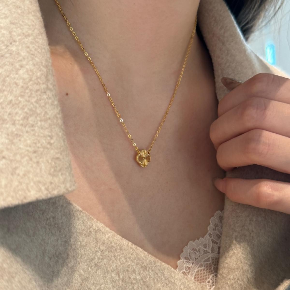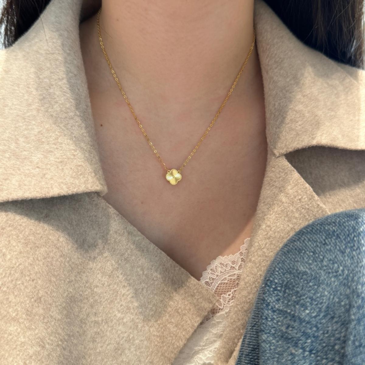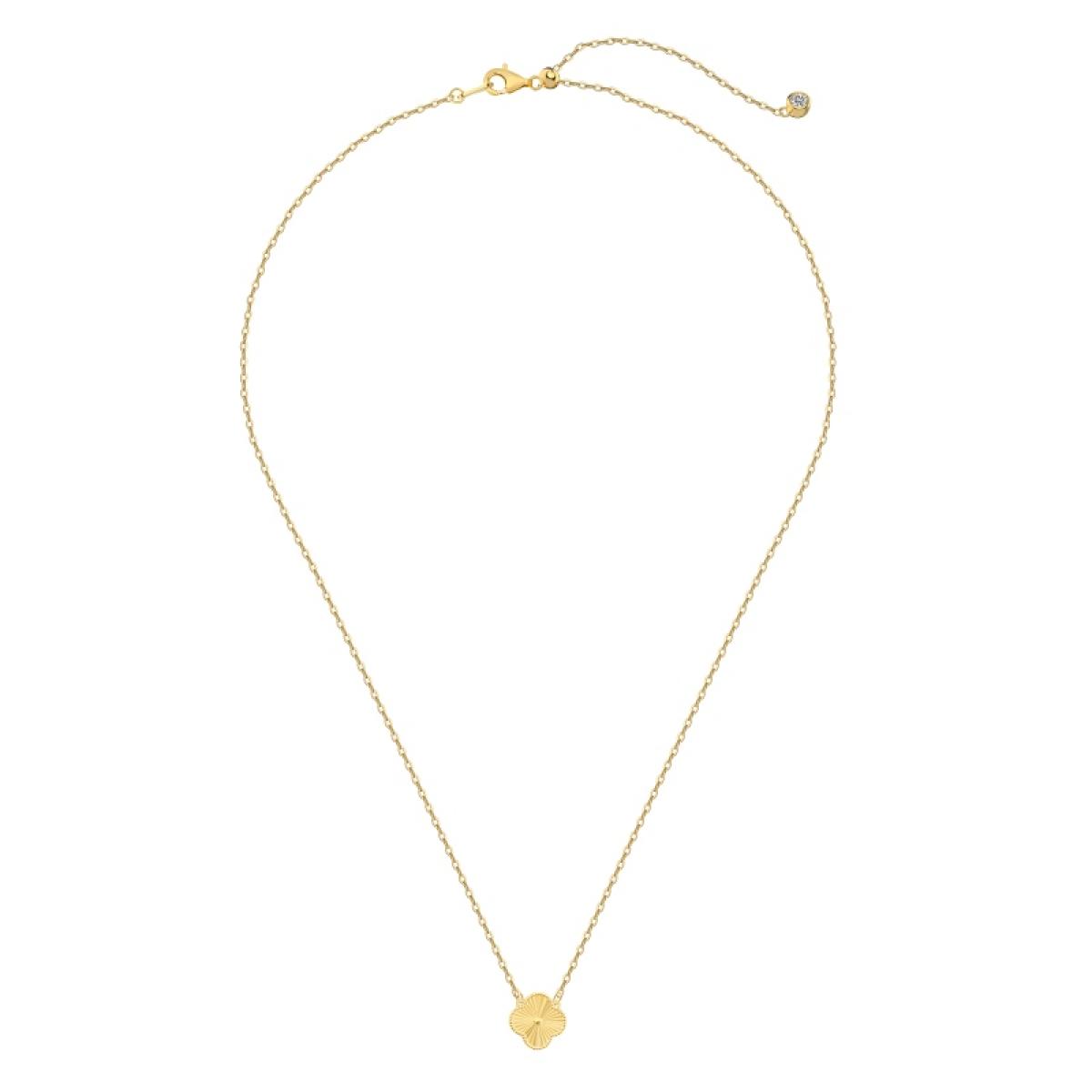 Колие, отличаващо се със своята вечна елегантност. Вдъхновено от формата на детелина, тази икона на късмета е в сребърен обков с 14 карата златно покритие