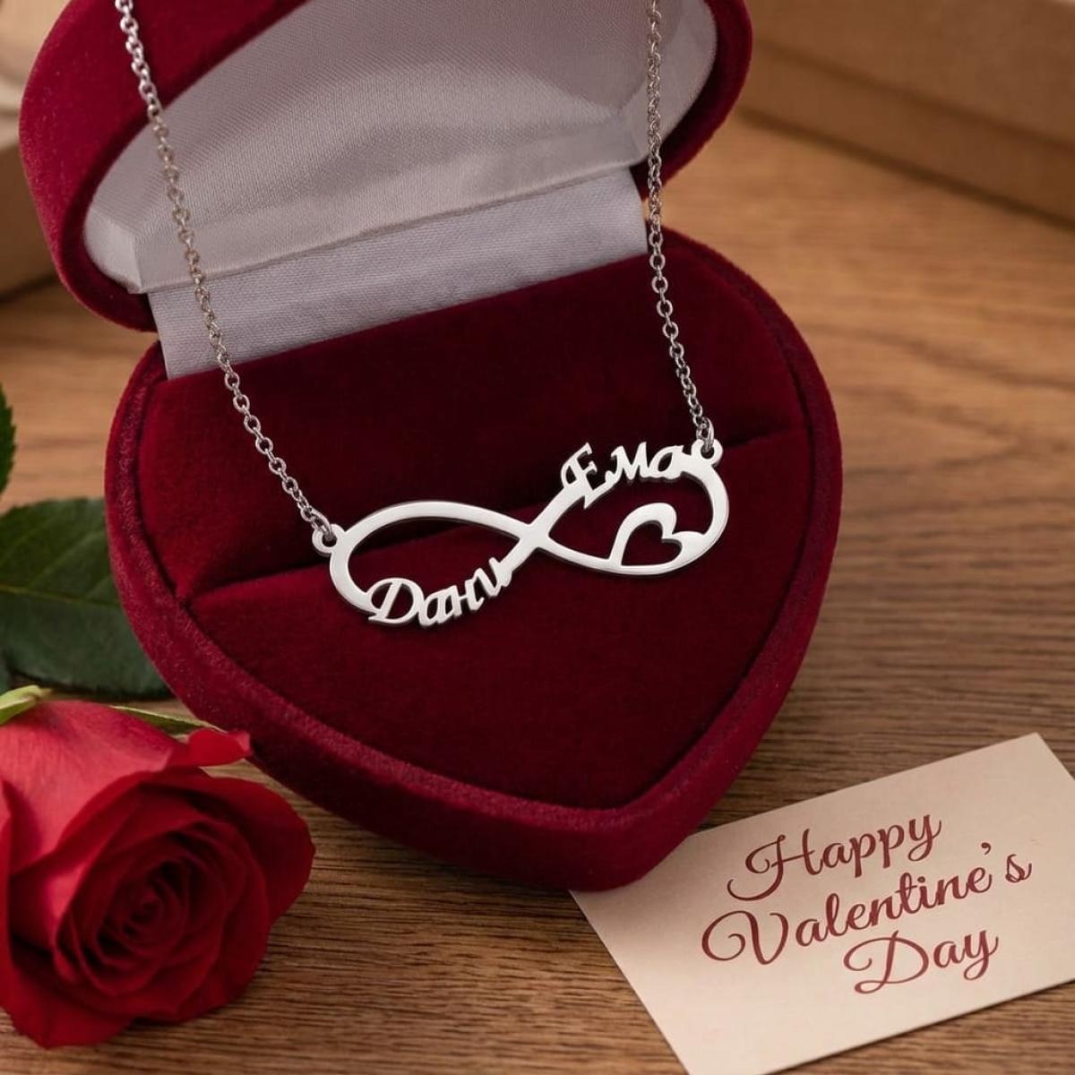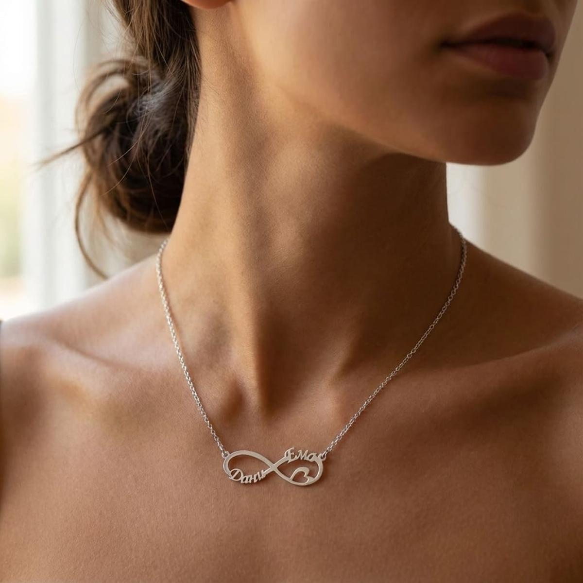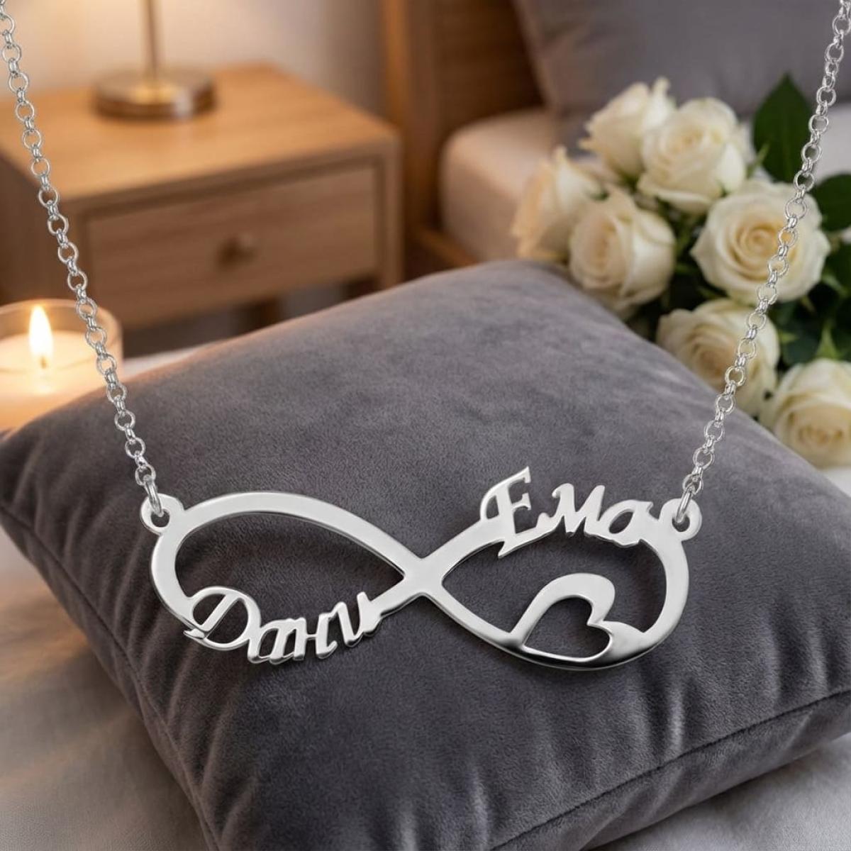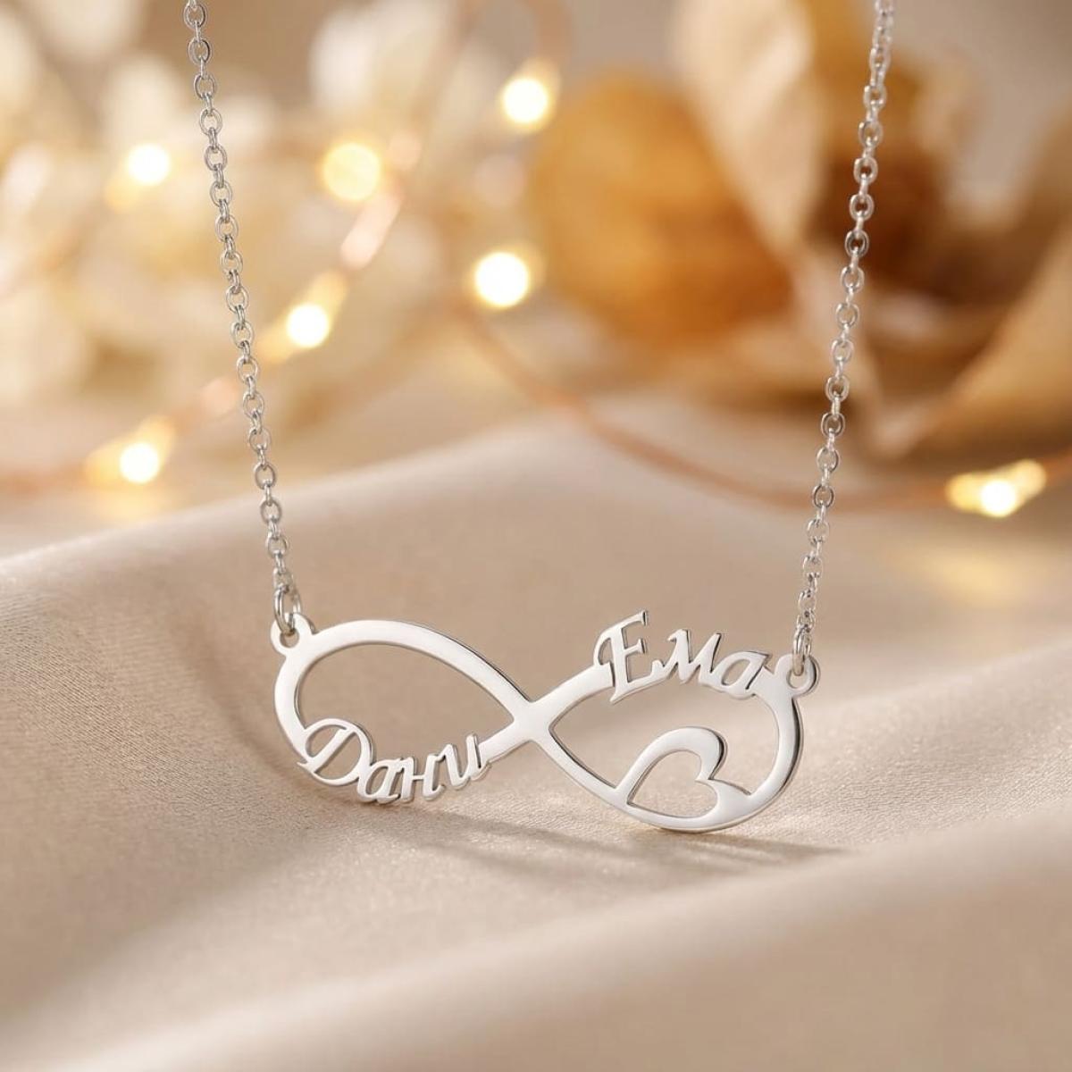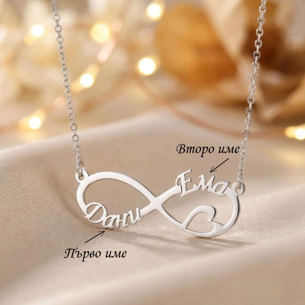 Сребърно колие с безкрайност и две имена по избор