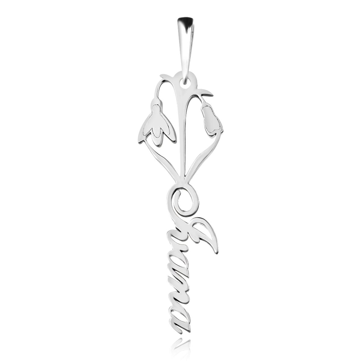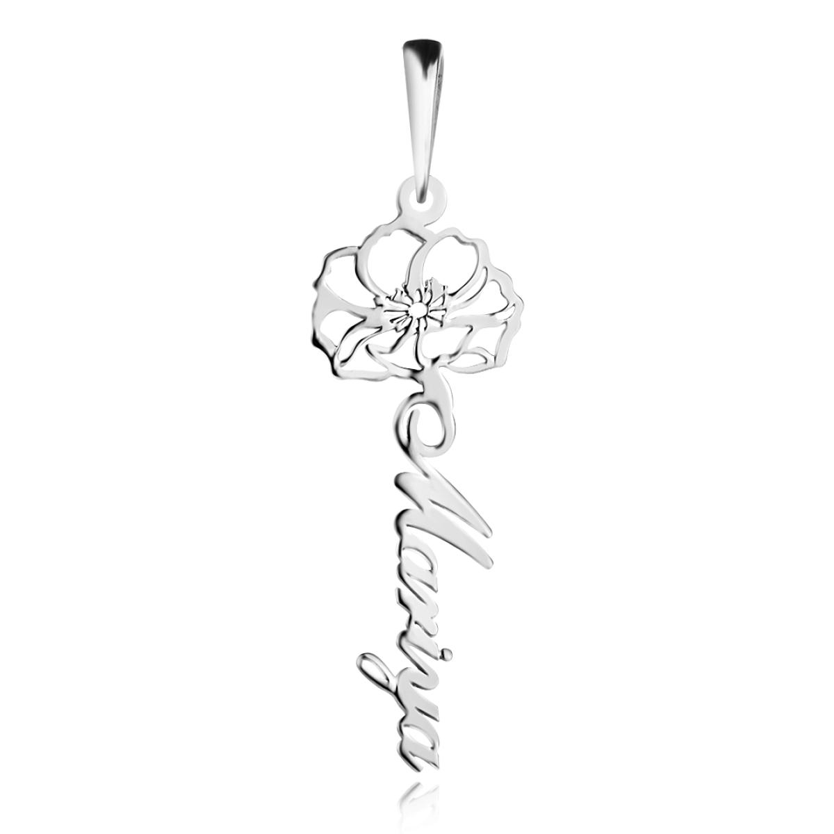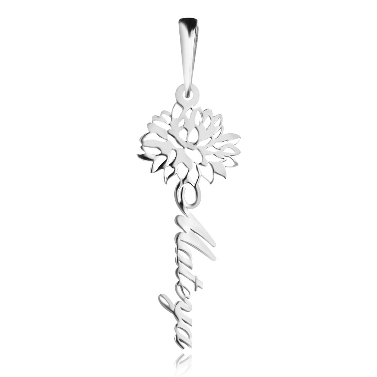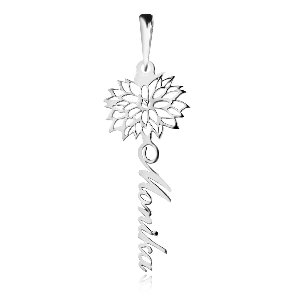 Сребърно колие с цвете на месеца и име