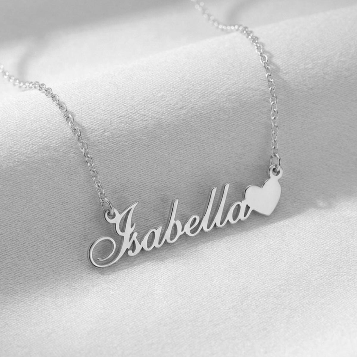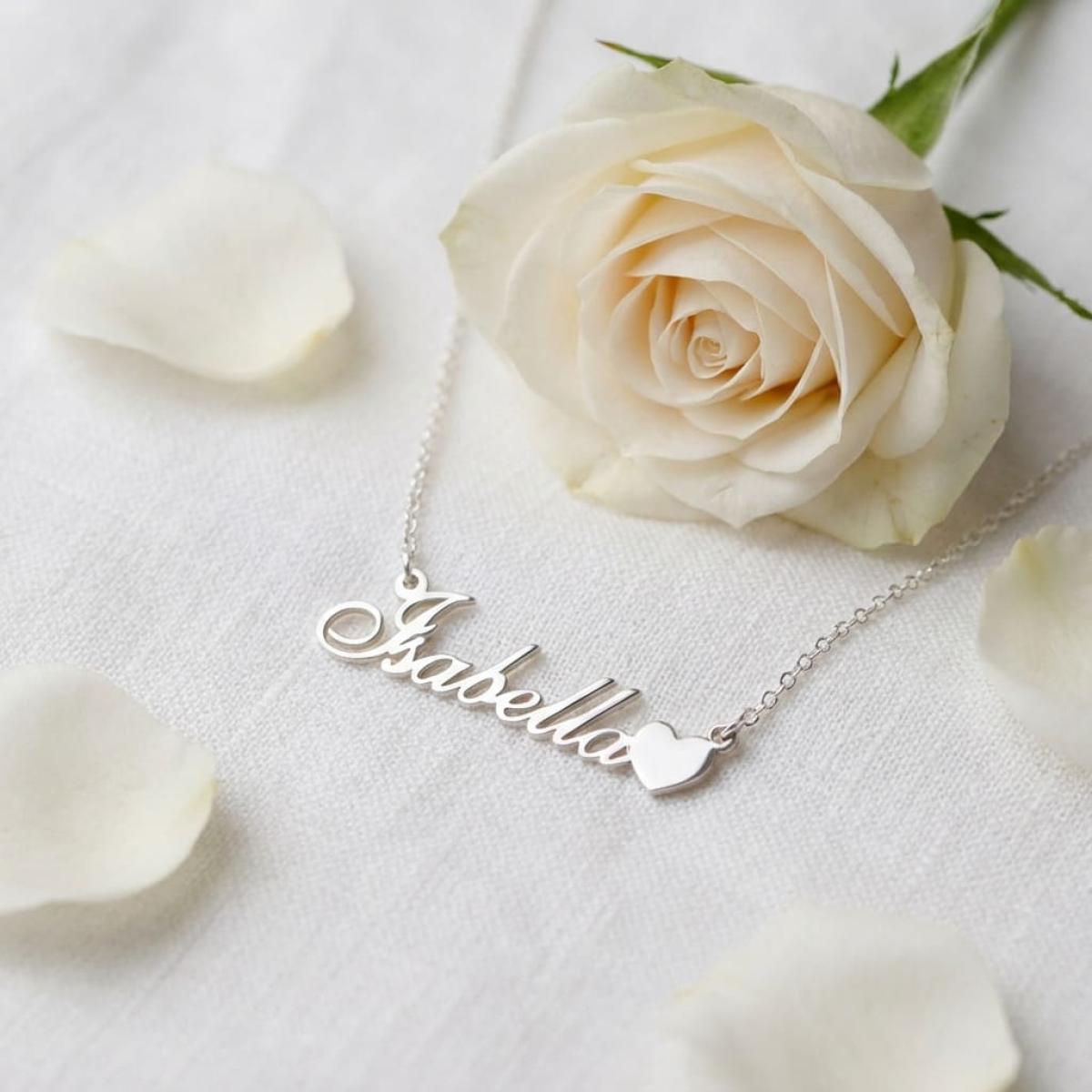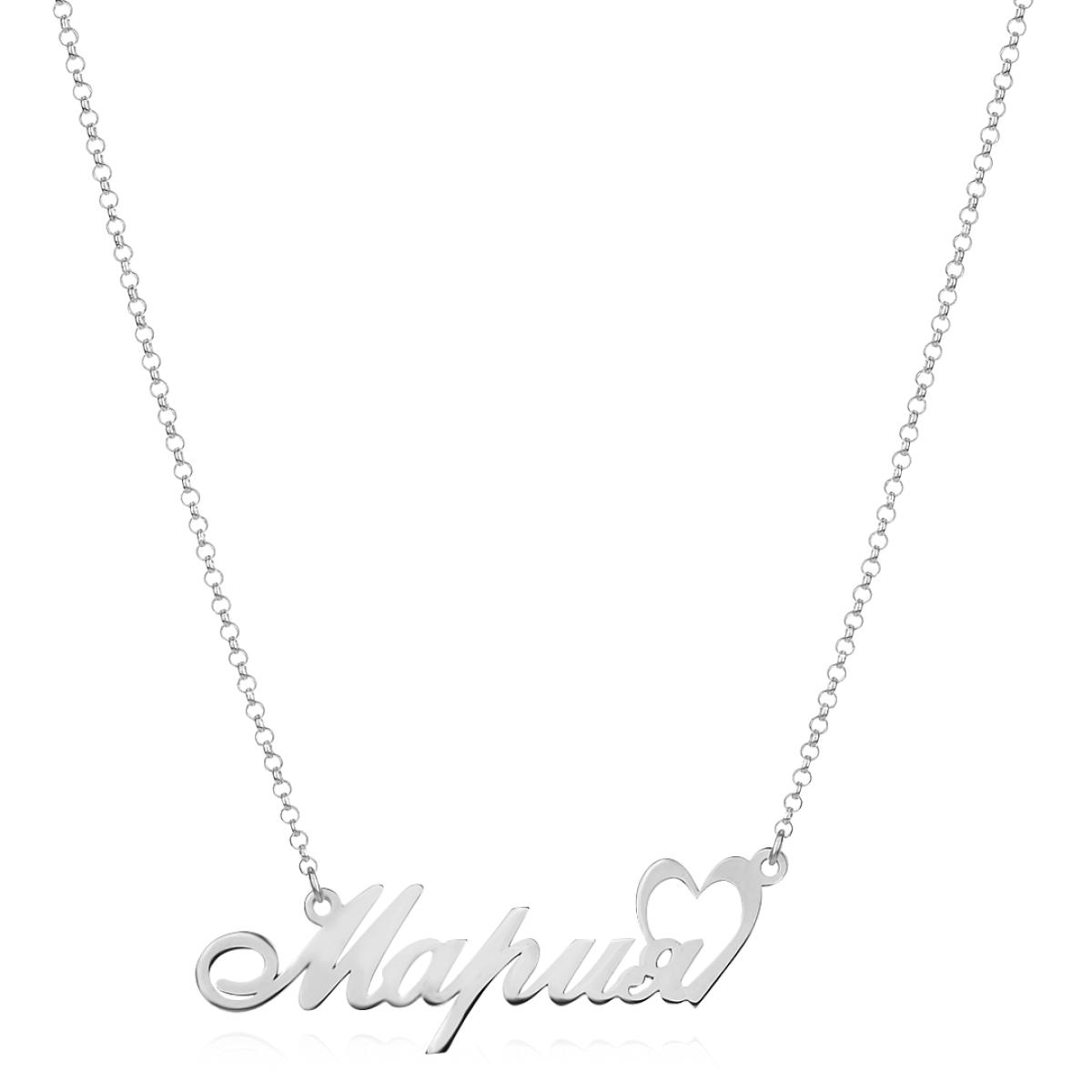 Сребърно колие с име по избор и сърце