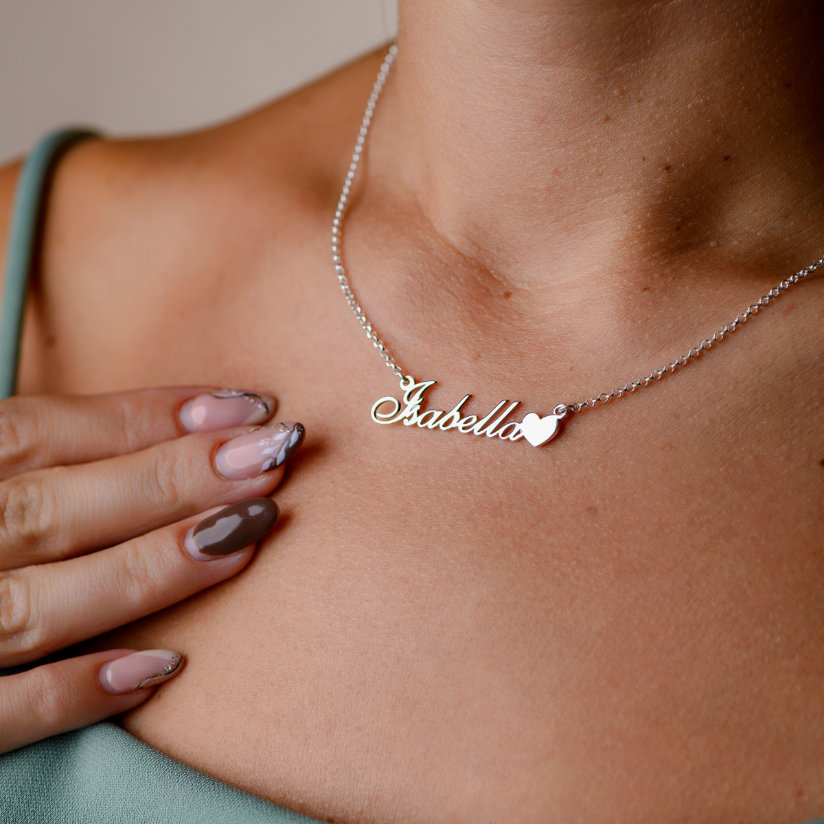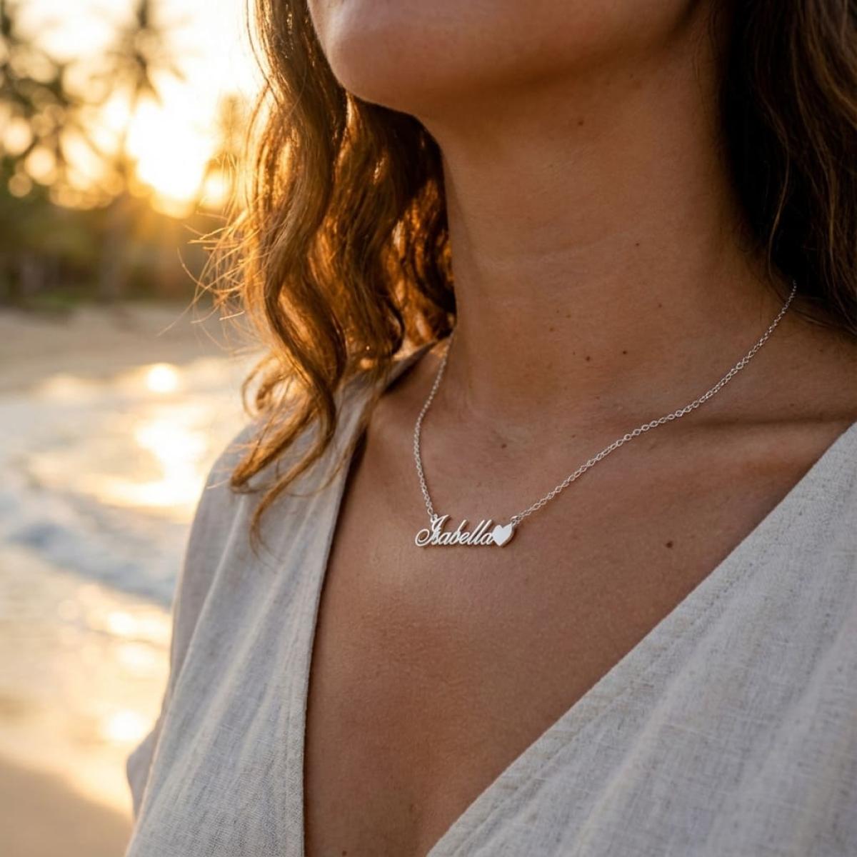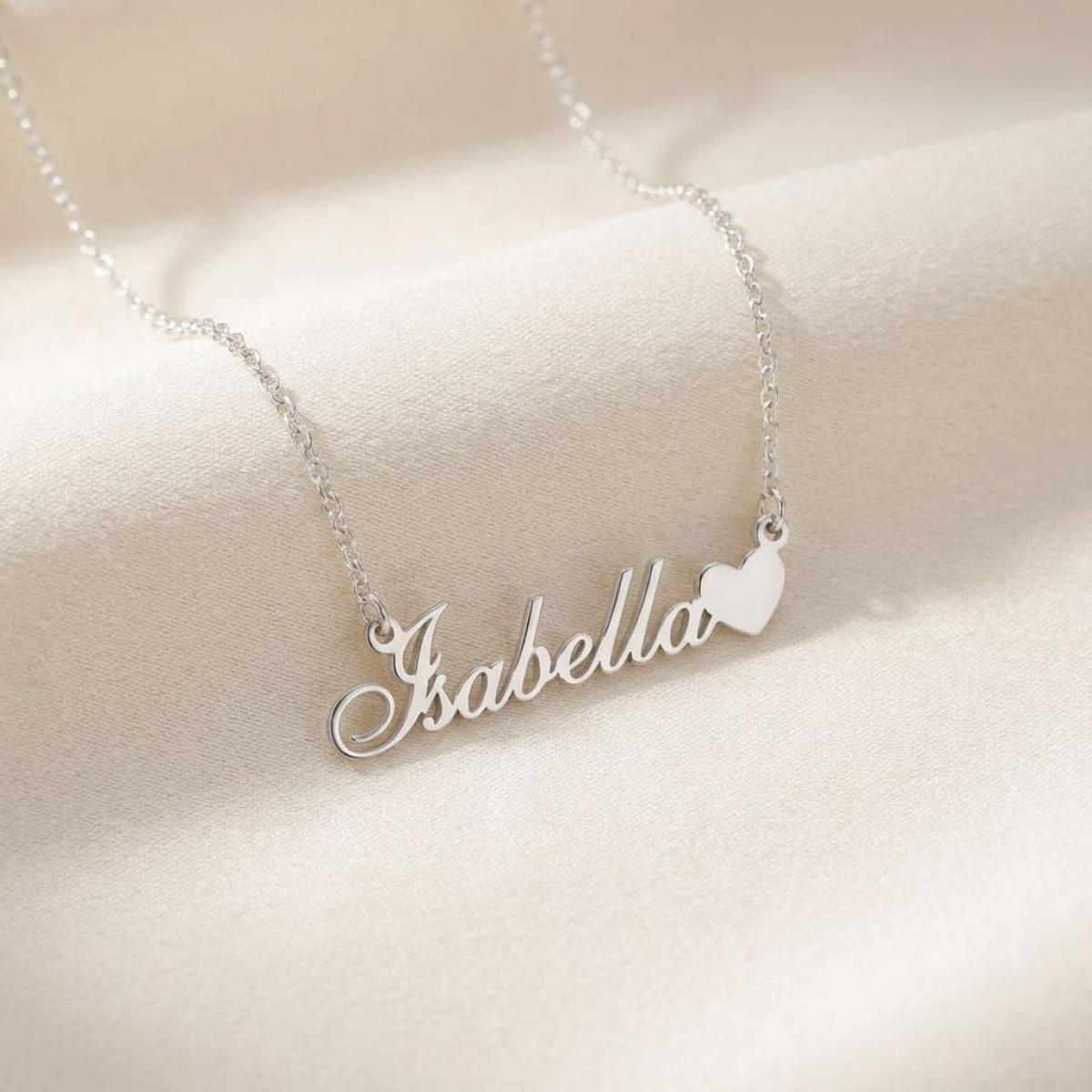 Сребърно колие с име по избор и сърце