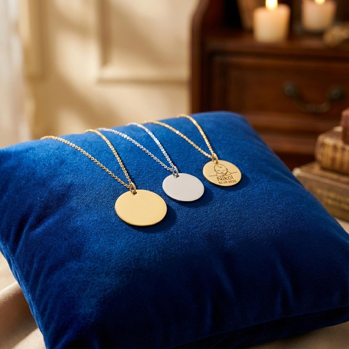 От момента, в който вземат в ръце своите рожби, та чак до сетния им дъх, за майките няма нищо по-важно от техните деца. Бижутерия Паладиум ви предлага един супер оригинален и много сантиментален подарък – колие с кръгла плочка за гравиране, на която ще изпишем рождените данни на вашето дете.