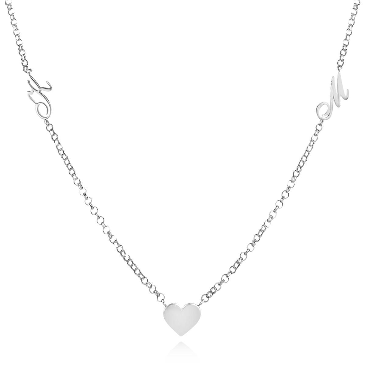 Сребърно колие със сърце и персонализирана буква по избор, изработено от сребро 925 – символ на любов и индивидуалност.