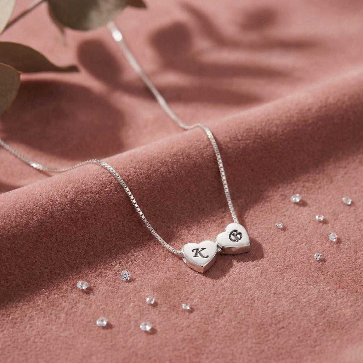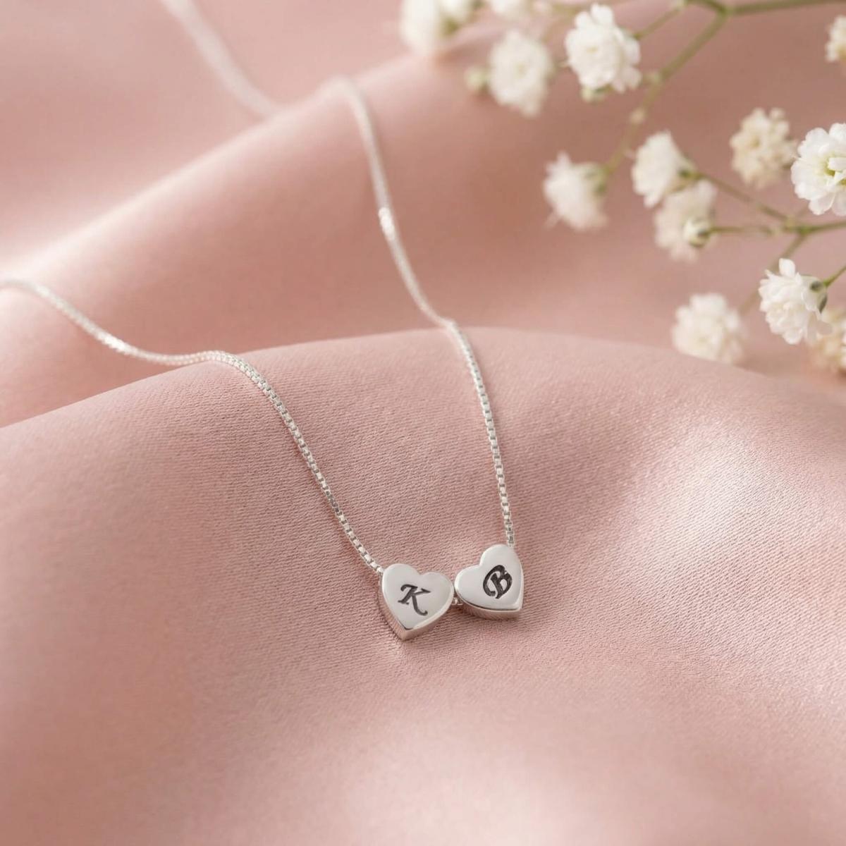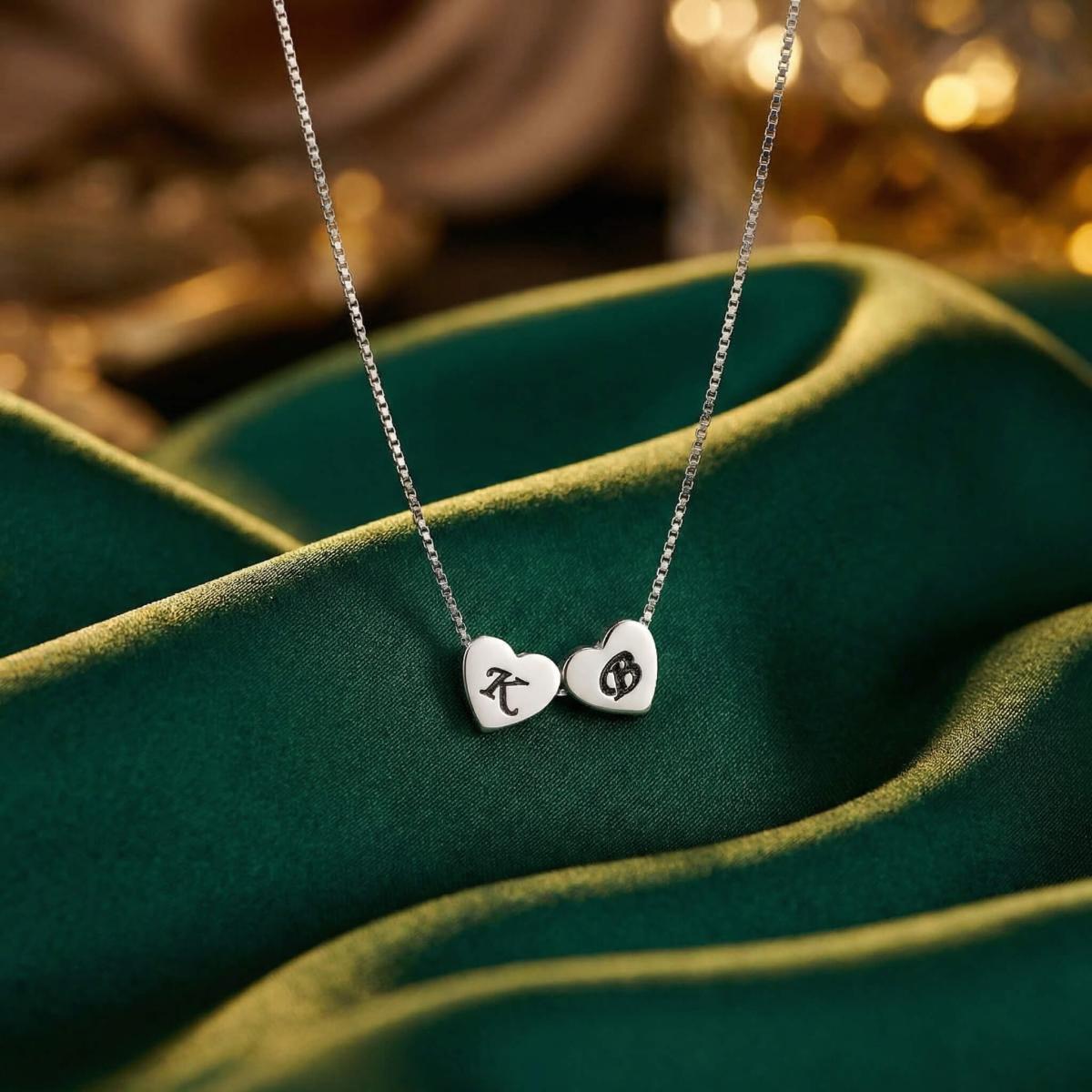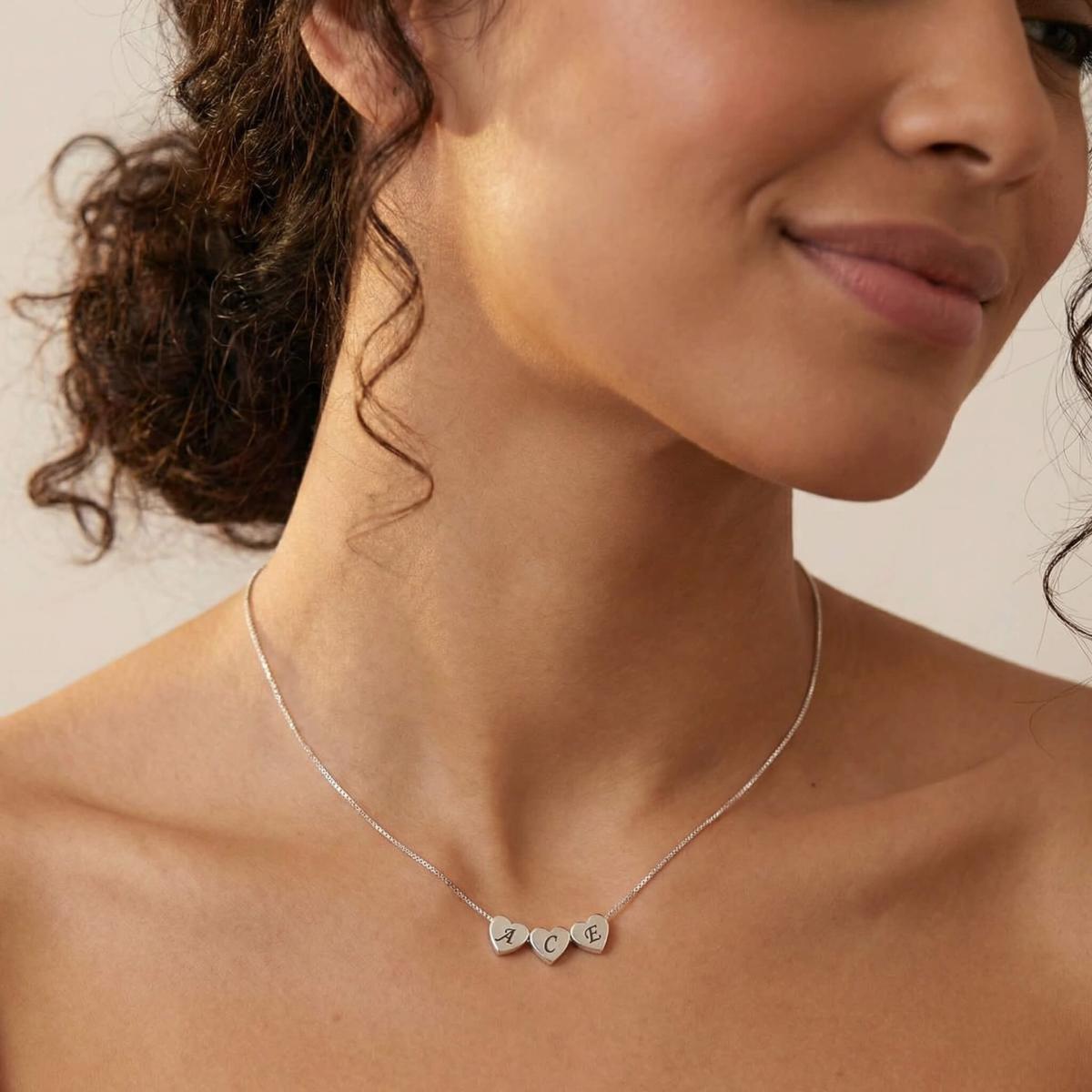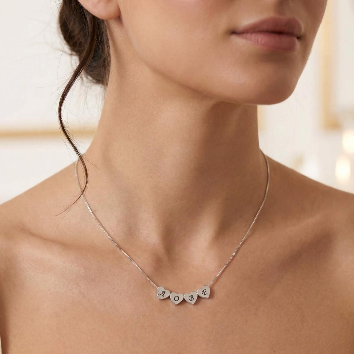 Нежно и емоционално сребърно колие, създадено да разказва лична история. Колието е декорирано с фини сребърни сърца, всяко от които може да бъде персонализирано с гравиране на инициали, буква или символ.
