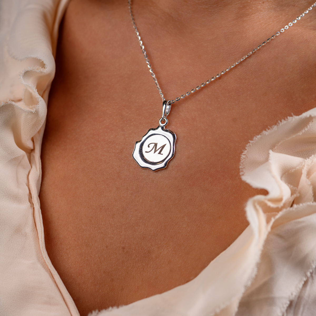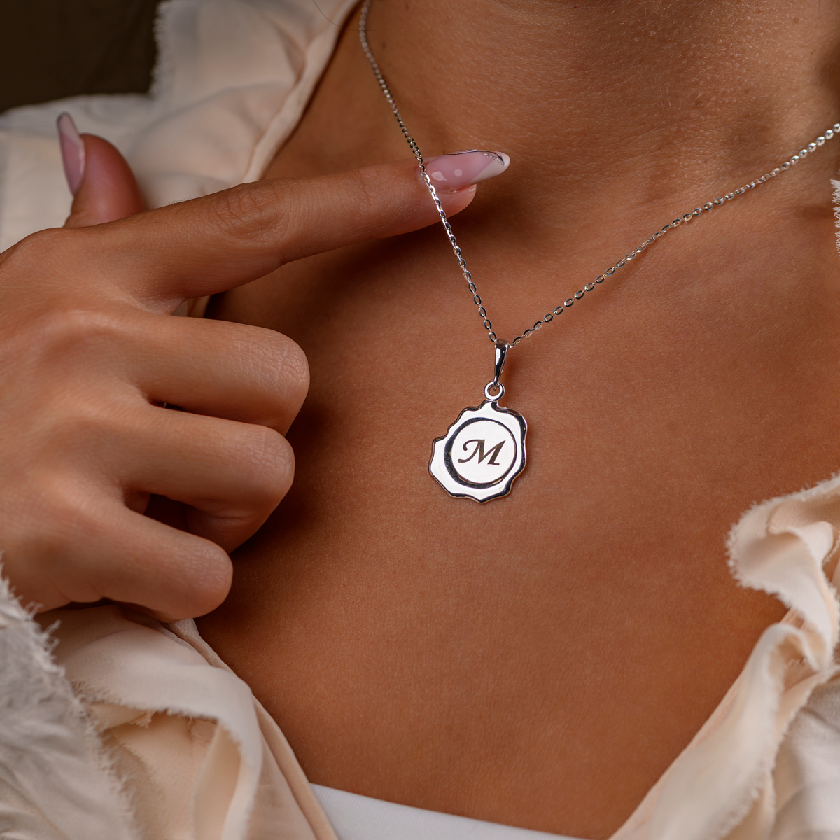 Медальонът е чудесен начин да създадете една оригинална и очарователна визия. Нужно е просто да заложите на по-интересен и необичаен дизайн. Нашият сребърен медальон с форма на восъчен печат е перфектният начин да бъдете различни. В центъра му можем да изпишем буква или послание по ваш избор, което ще го превърне в страхотно персонализирано бижу.