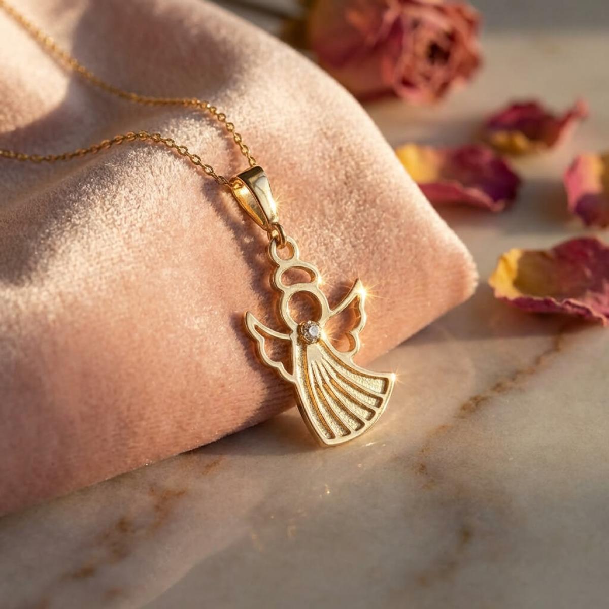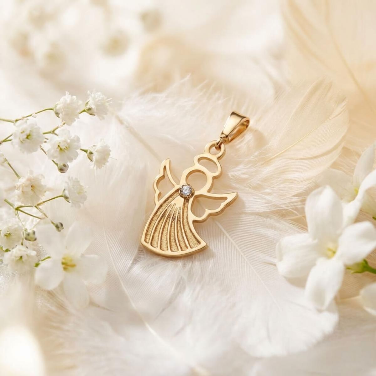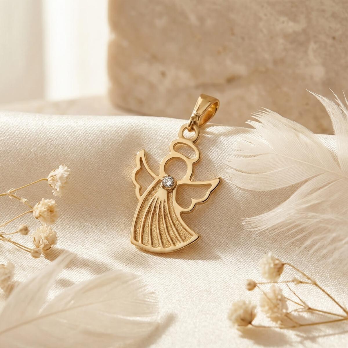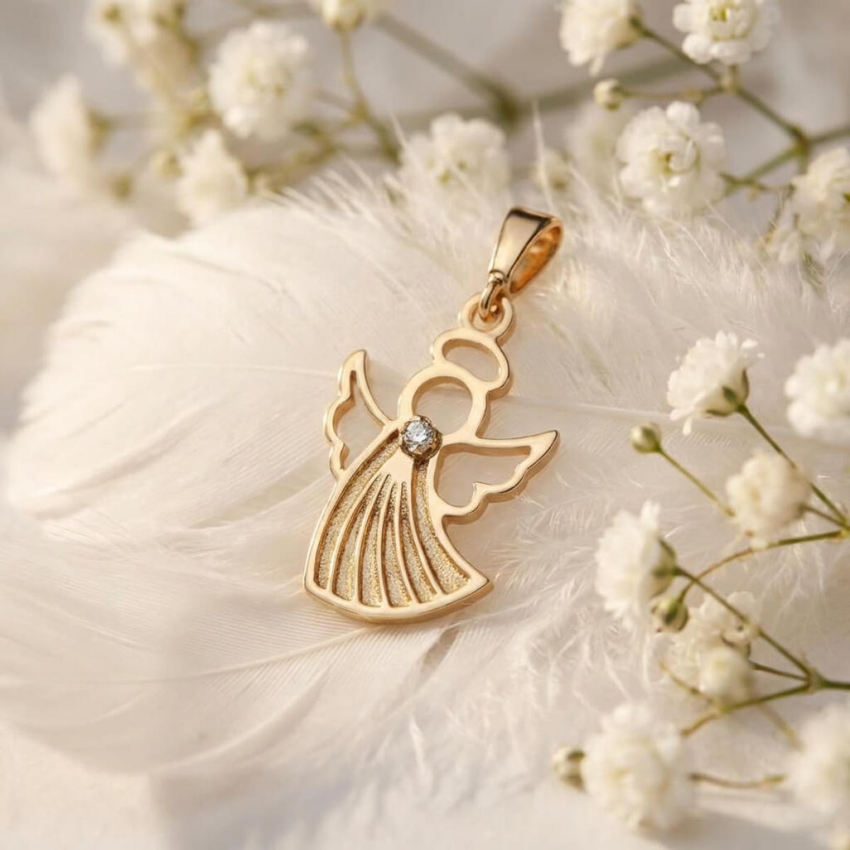 Прелестна златна висулка Ангелче е перфектният подарък за всяка жена по всякакъв повод. Може да се носи върху по-плътни или тънки златни верижки, както и да се комбинира с други бижута от този класически благороден метал.