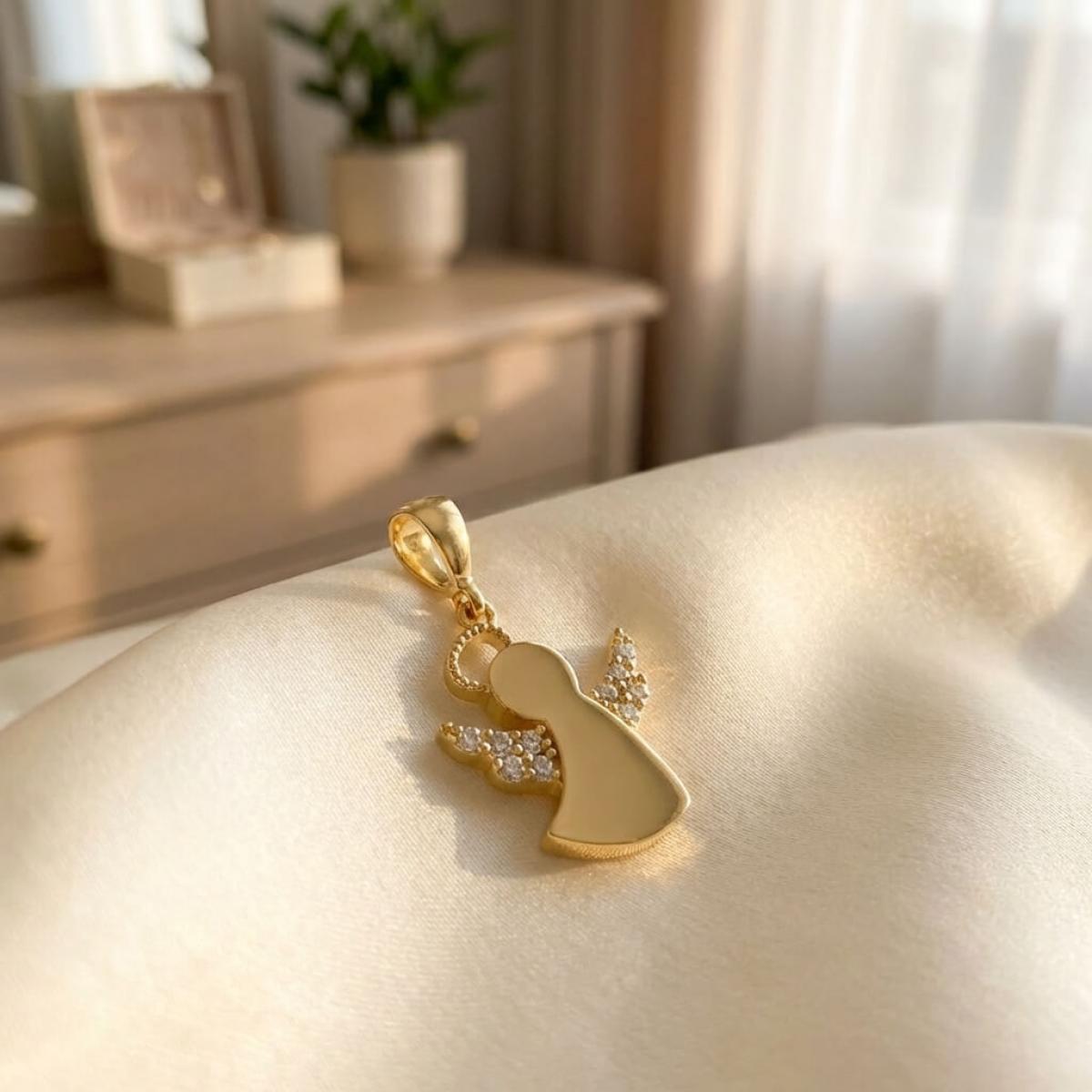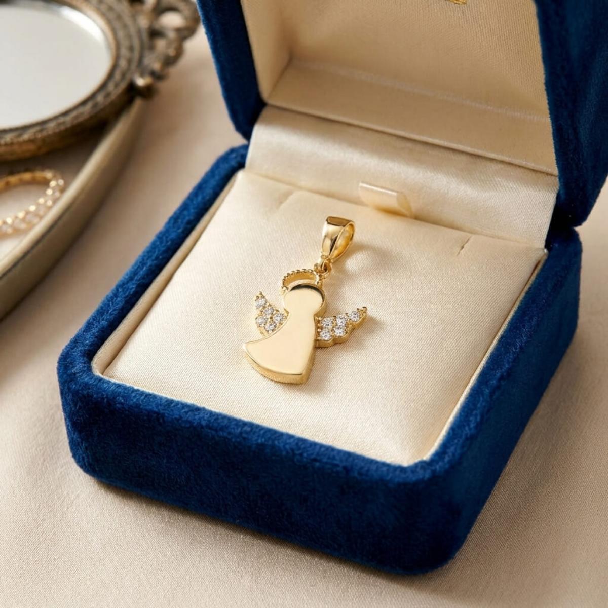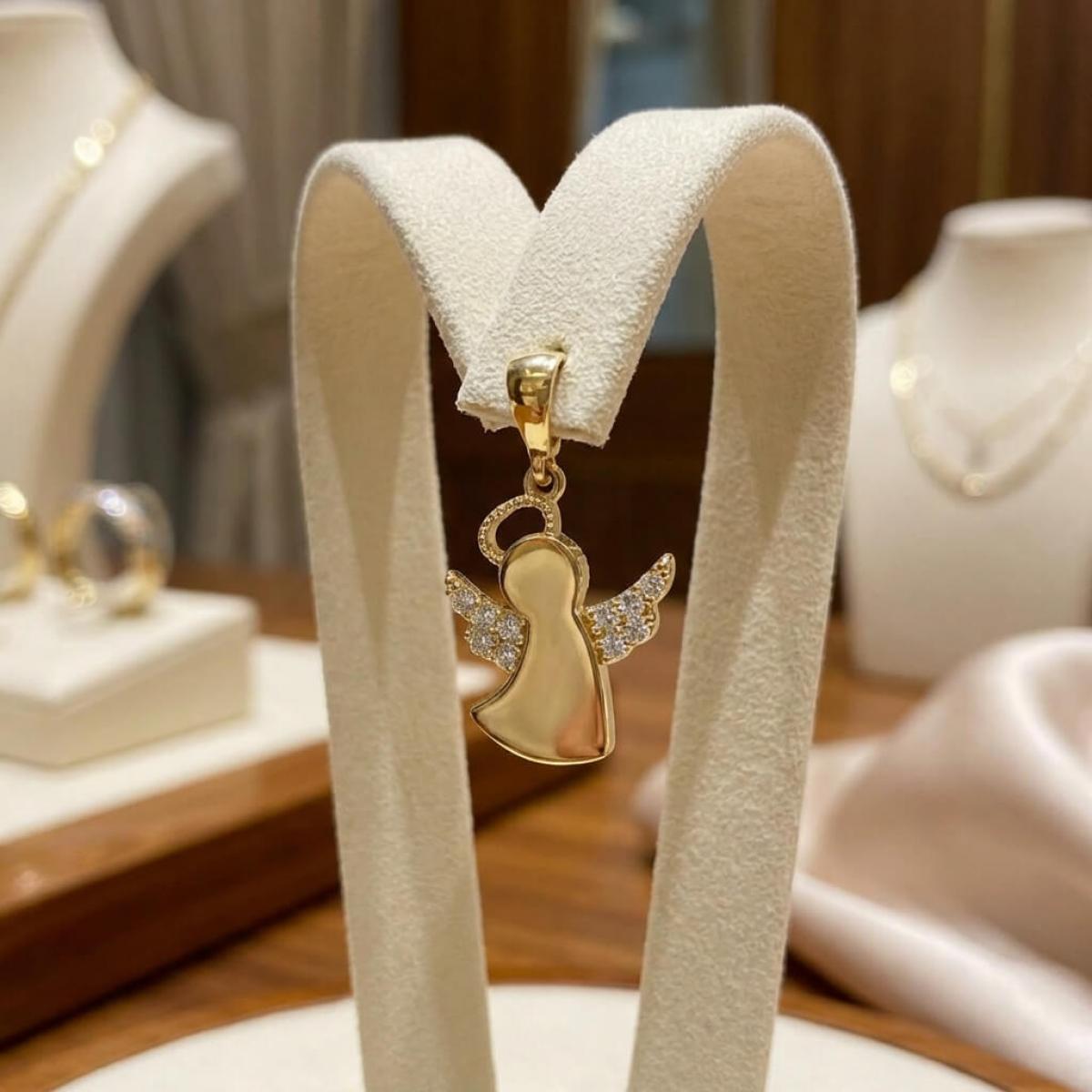 Фигурката на Ангел е изработена по дизайн на нашата компания. Не можете да не забележите модерните линии, чрез които е оформено херувимчето. Съвременните стилове в ювелирното изкуство са се настанили трайно в дизайна на голяма част от нашите бижута, защото клиентите ни очакват от нас да им предложим интересни и модни накити от злато.