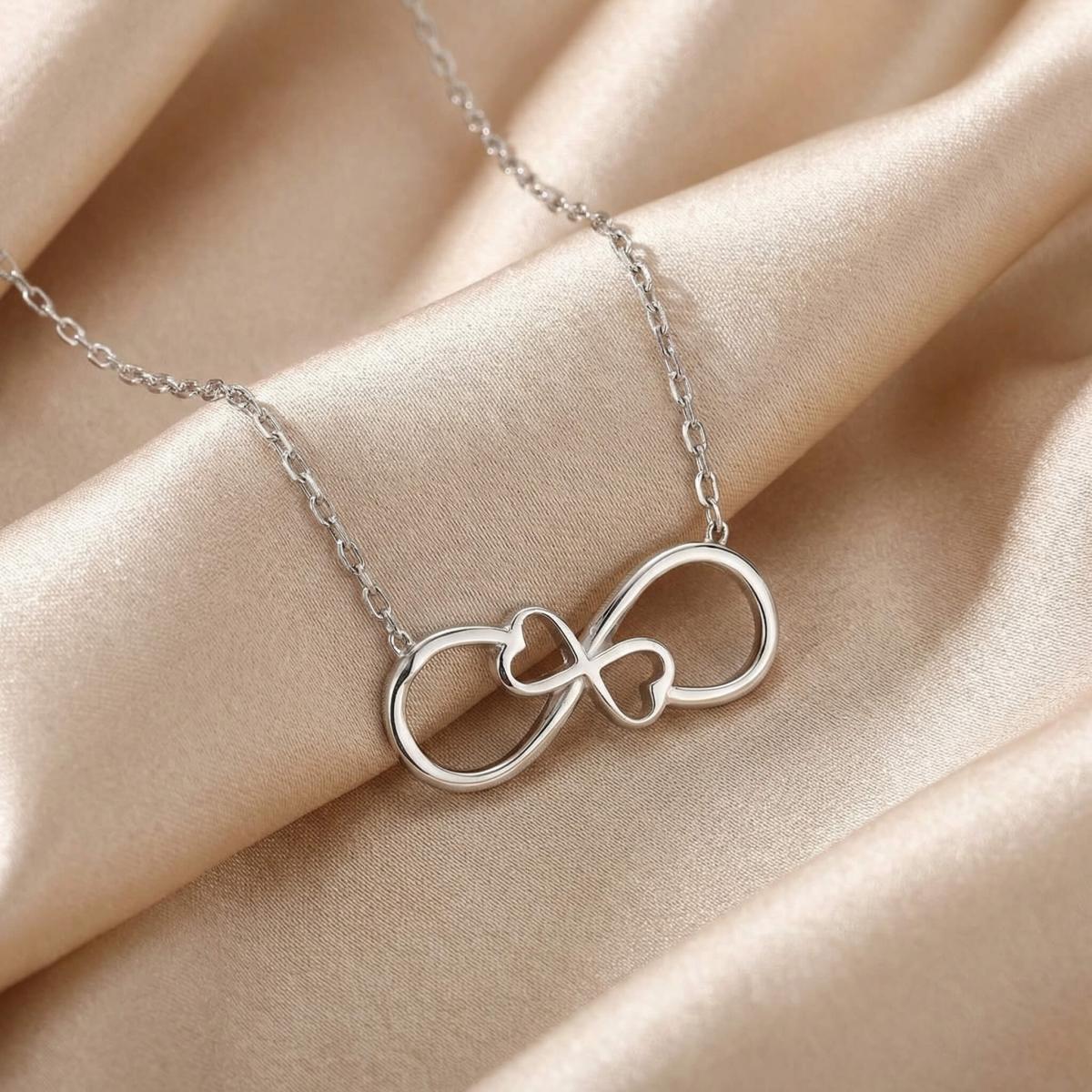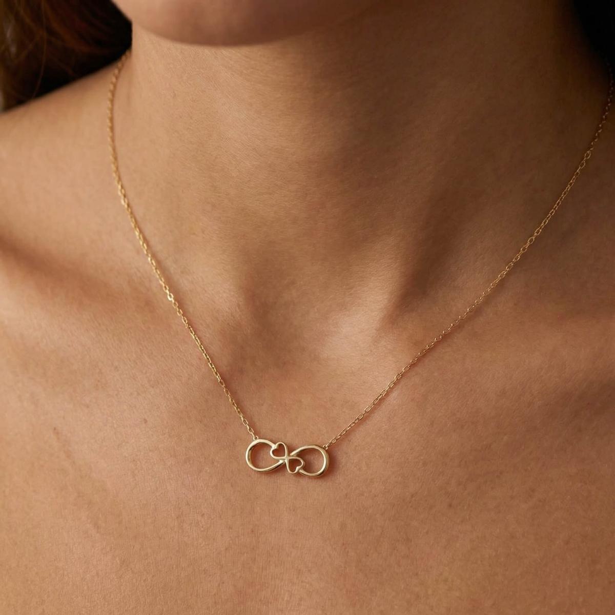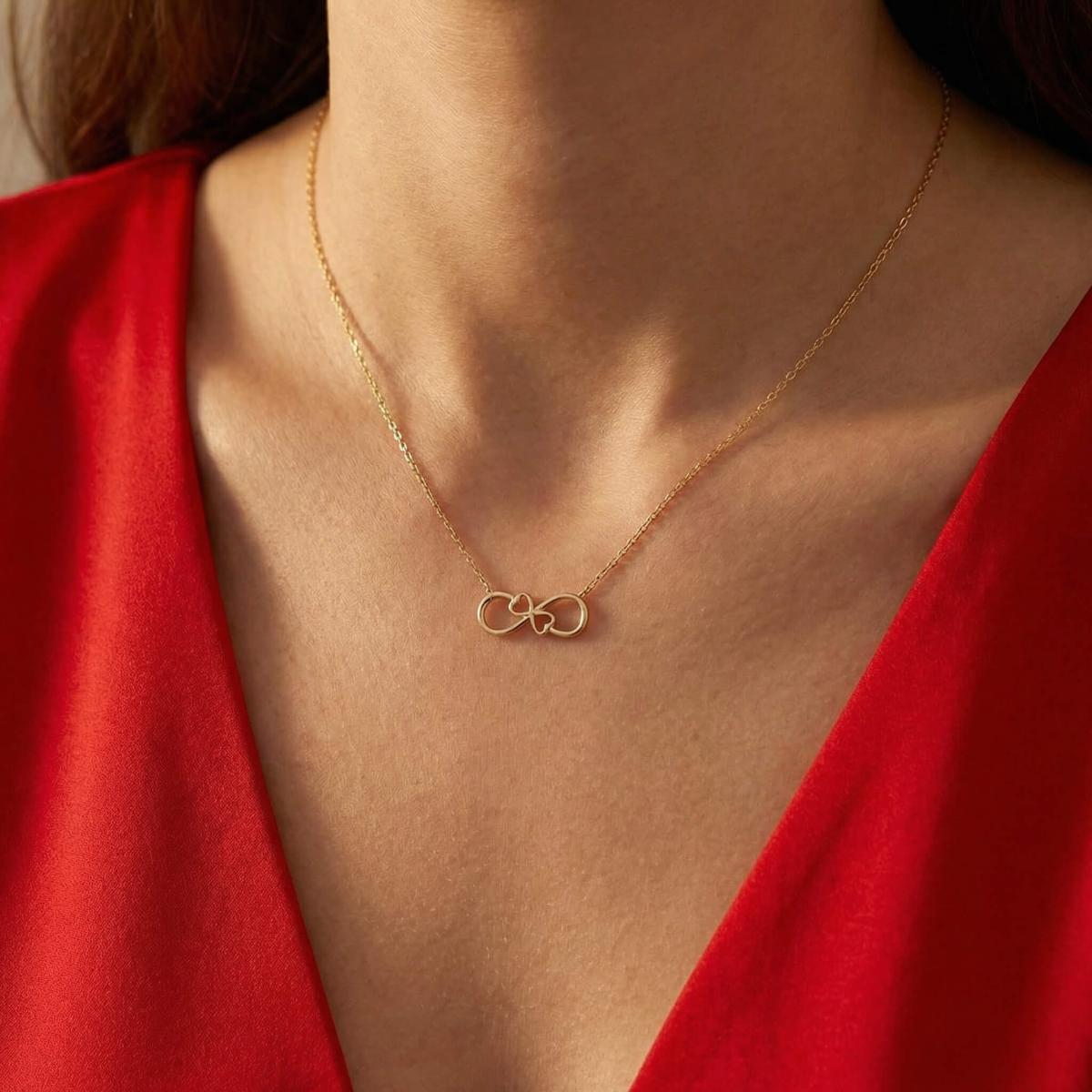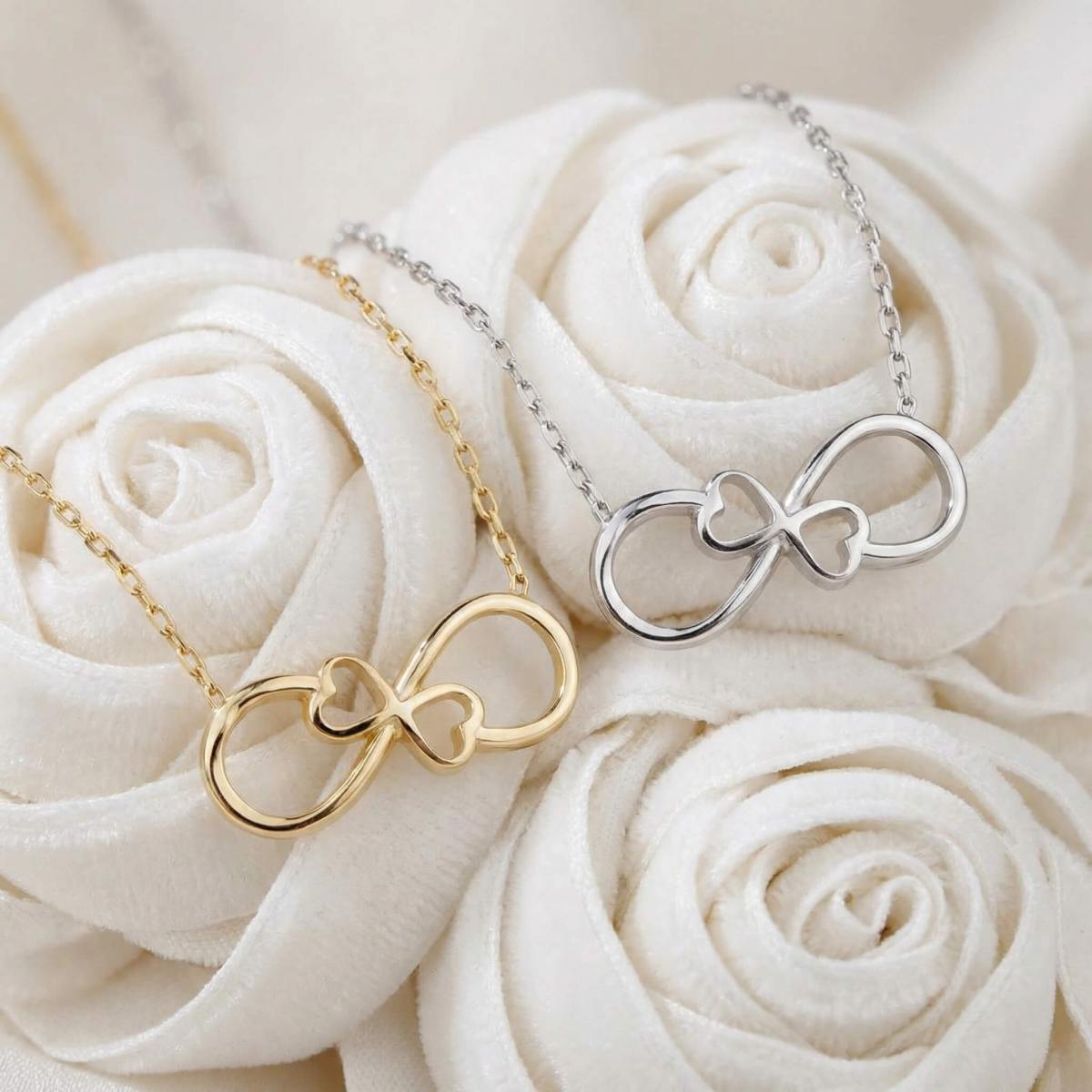 Златното колие безкрайност е едно обаятелно ювелирно изделие, което ще стои прекрасно на всяка женска шия. Заслужава си да го поднесете като подарък на любимата жена, за да ѝ покажете вашата любов. Майсторите бижутери на бижутерия Паладиум са вложили цялата любов и старание в неговата изработка. Златният накит запазва не само финансовата си, но и своята емоционална стойност.