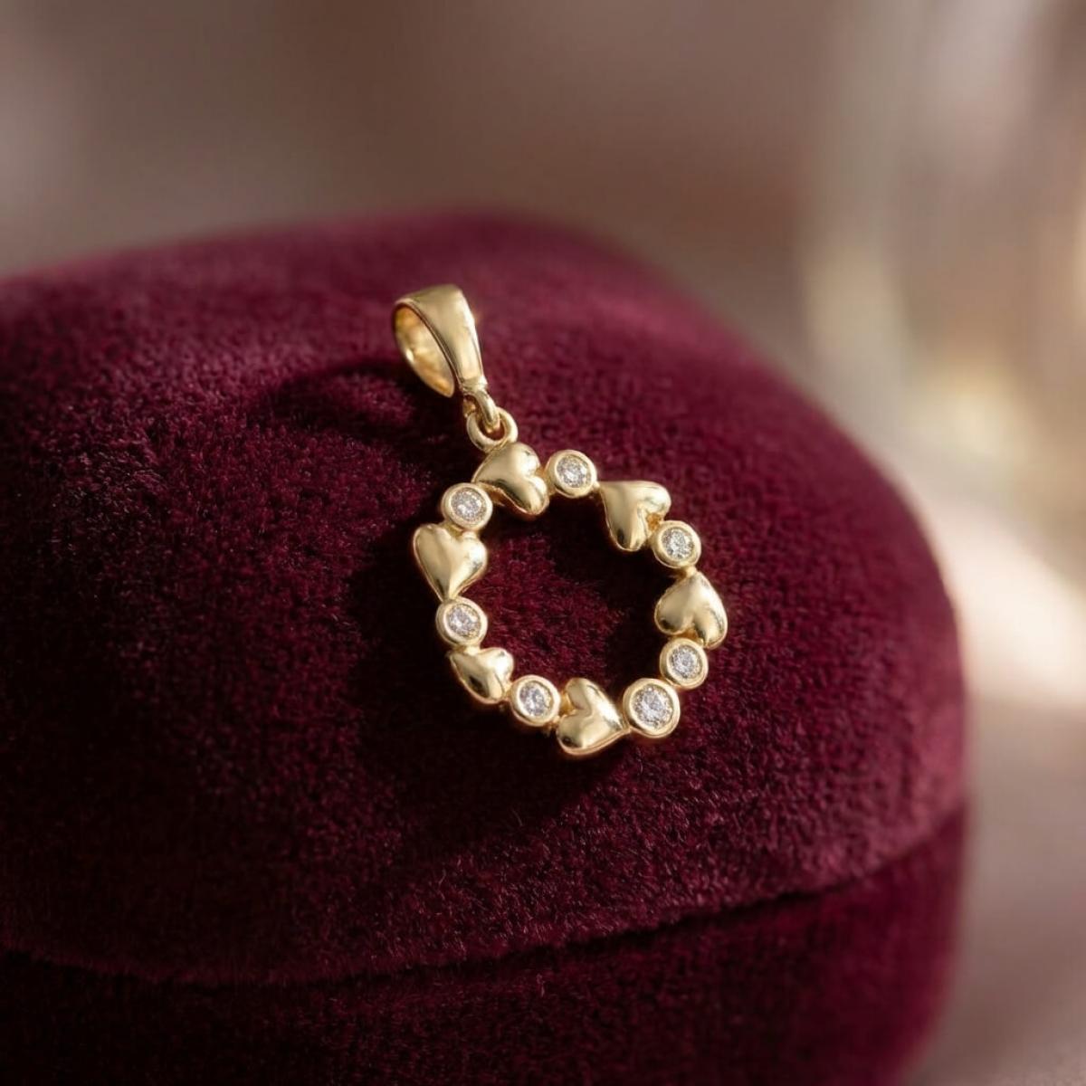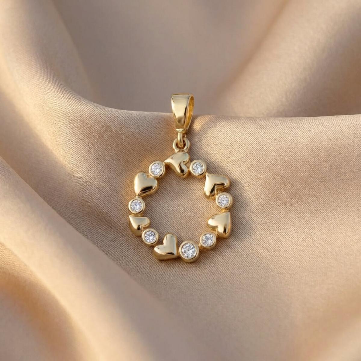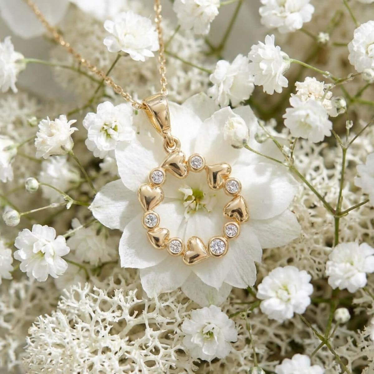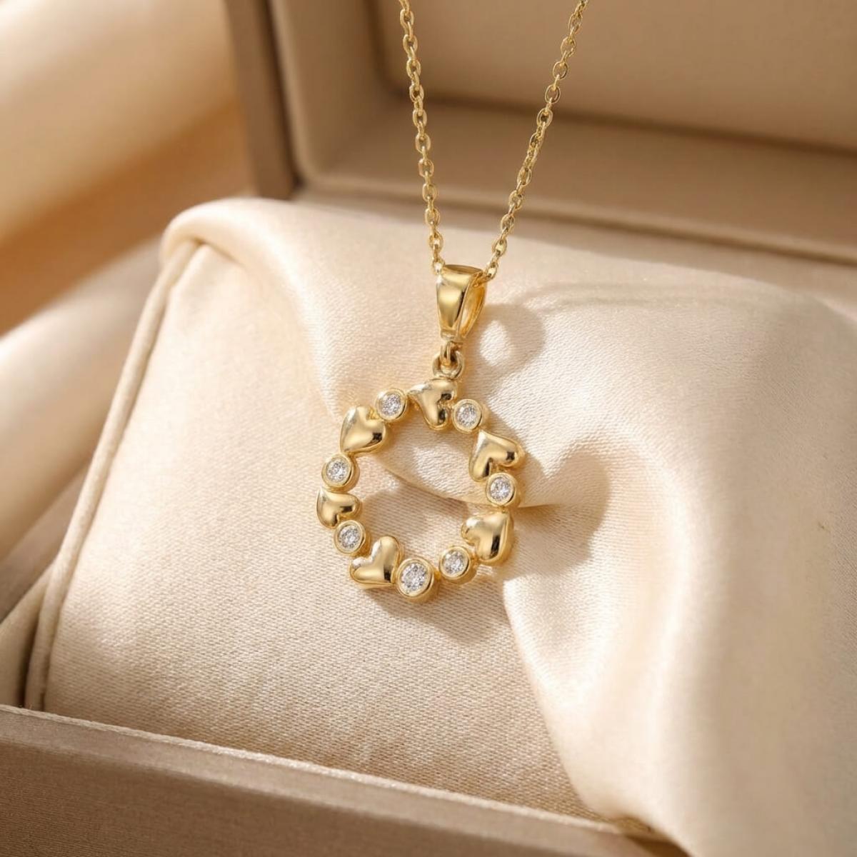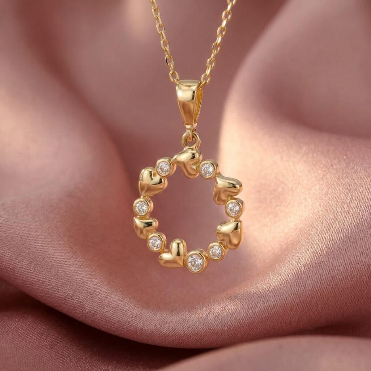 Това златно колие с множество циркони е ръчно изработено с много старание.
