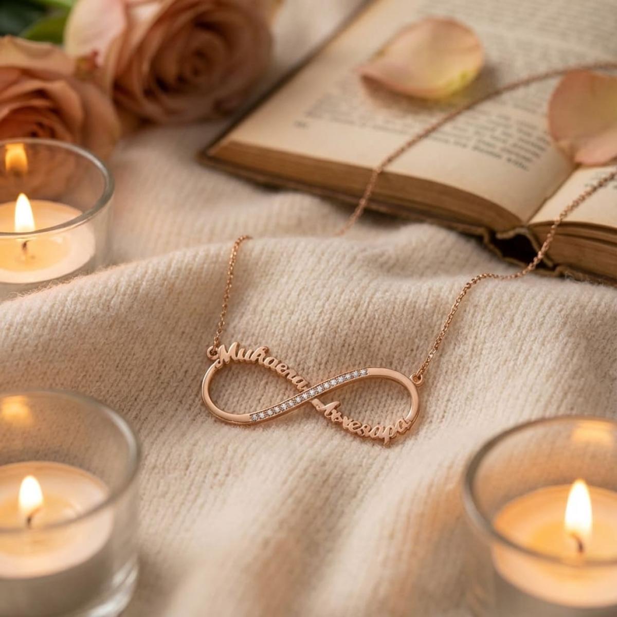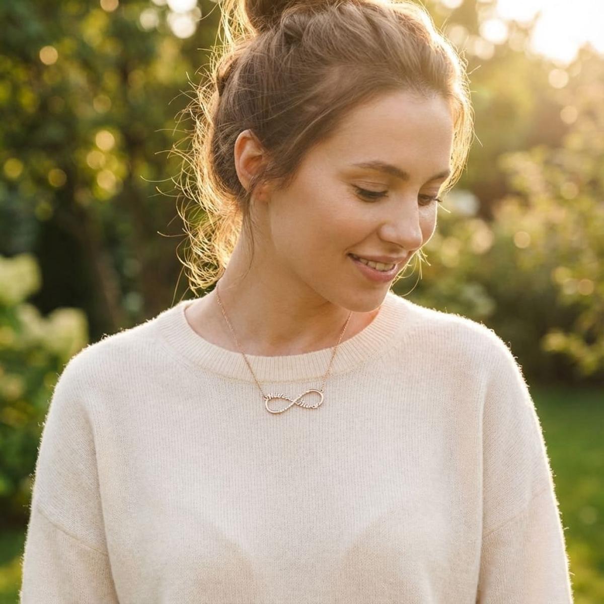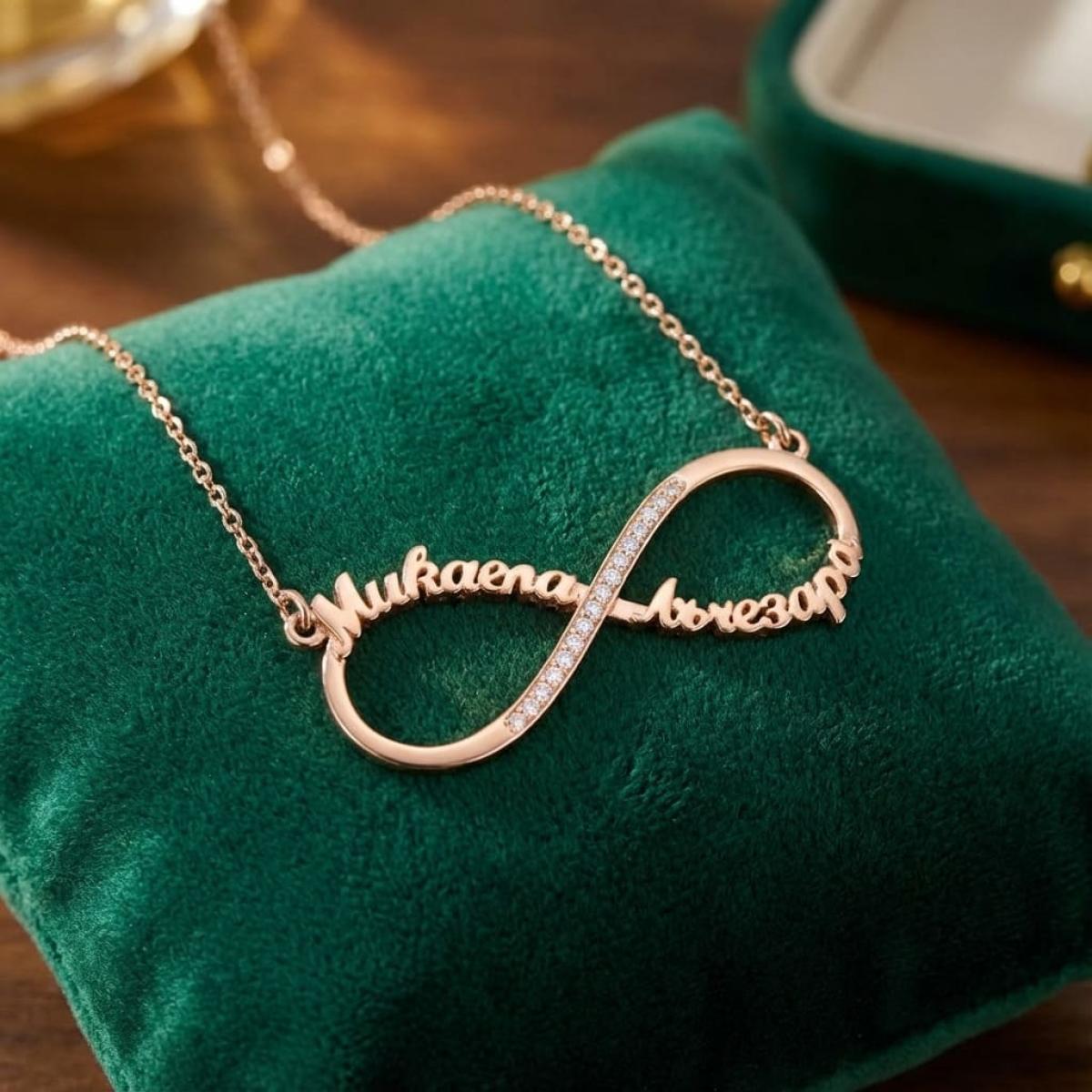 Знакът за „безкрайност“ е един от най-търсените в бижута, защото изобразява безкрайната връзка. Това колие е символ на вечната любов, която въпреки предизвикателствата и проблемите не спира пред нищо.