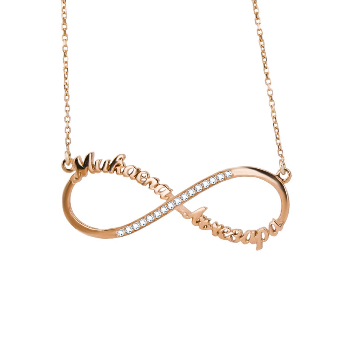 Златно колие с две имена по избор и циркони