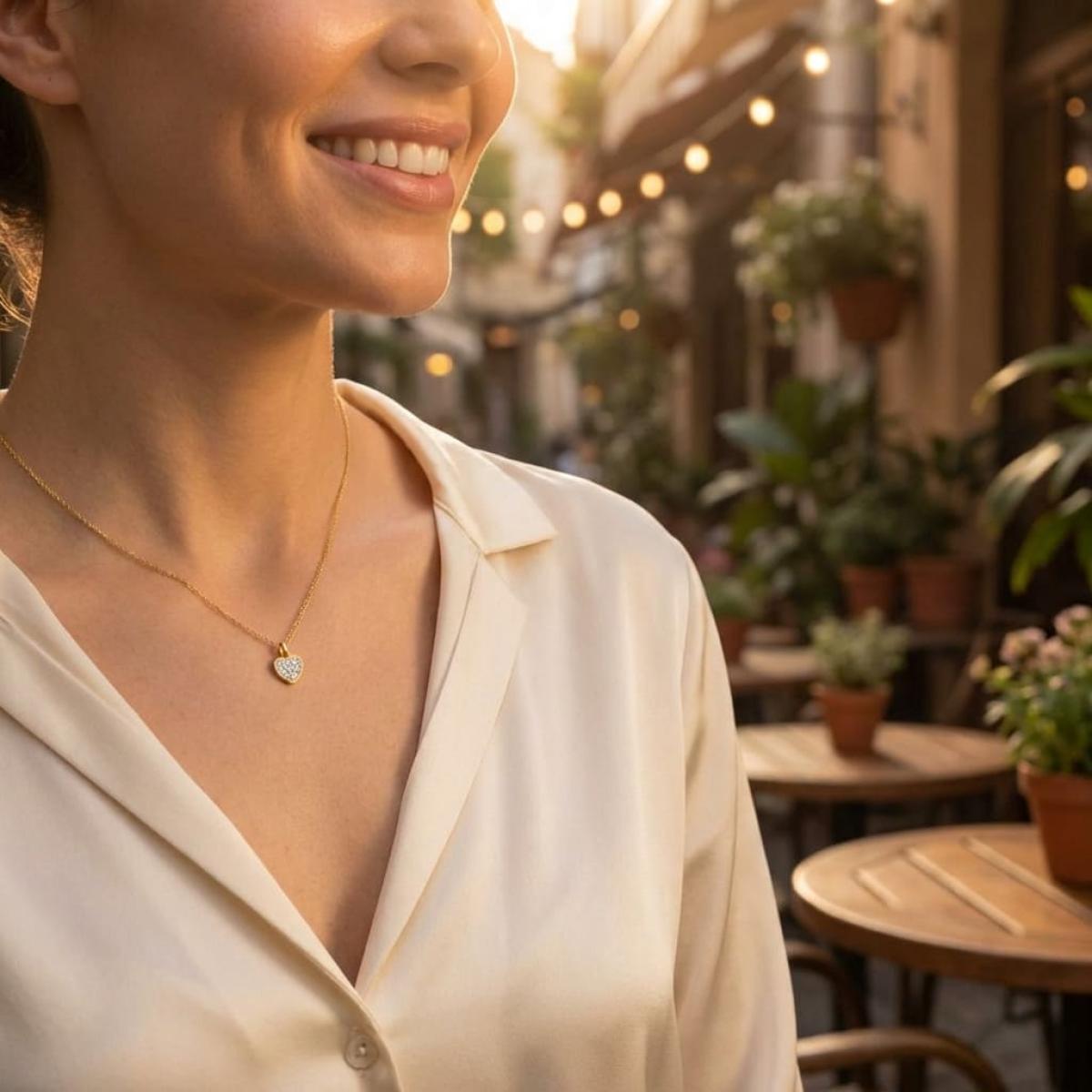Златно колие сърце с диамант-0,03 ct – класика с вечна стойност