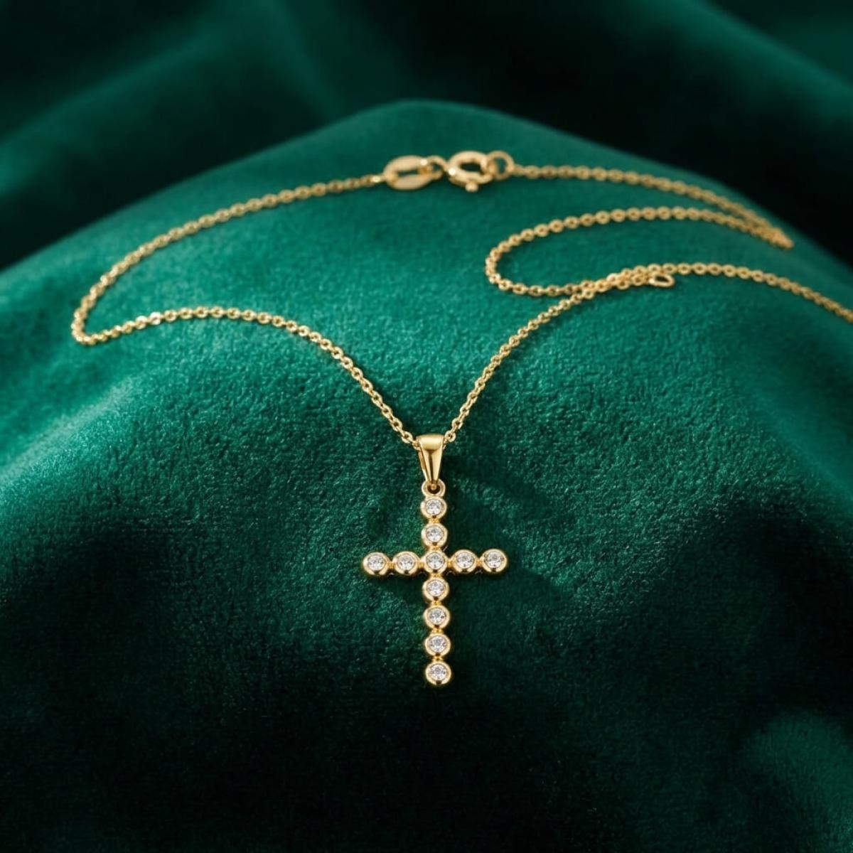 Златният кръст е не просто символ на Християнството, а личен амулет за много от вярващите по света. Предлагаме ви един превъзходен подарък за жена, която се уповава на Божията подкрепа и която не крие своя афинитет към стилните златни бижута. Златно кръстче, декорирано с циркони е чудесен подарък и за кръщене.