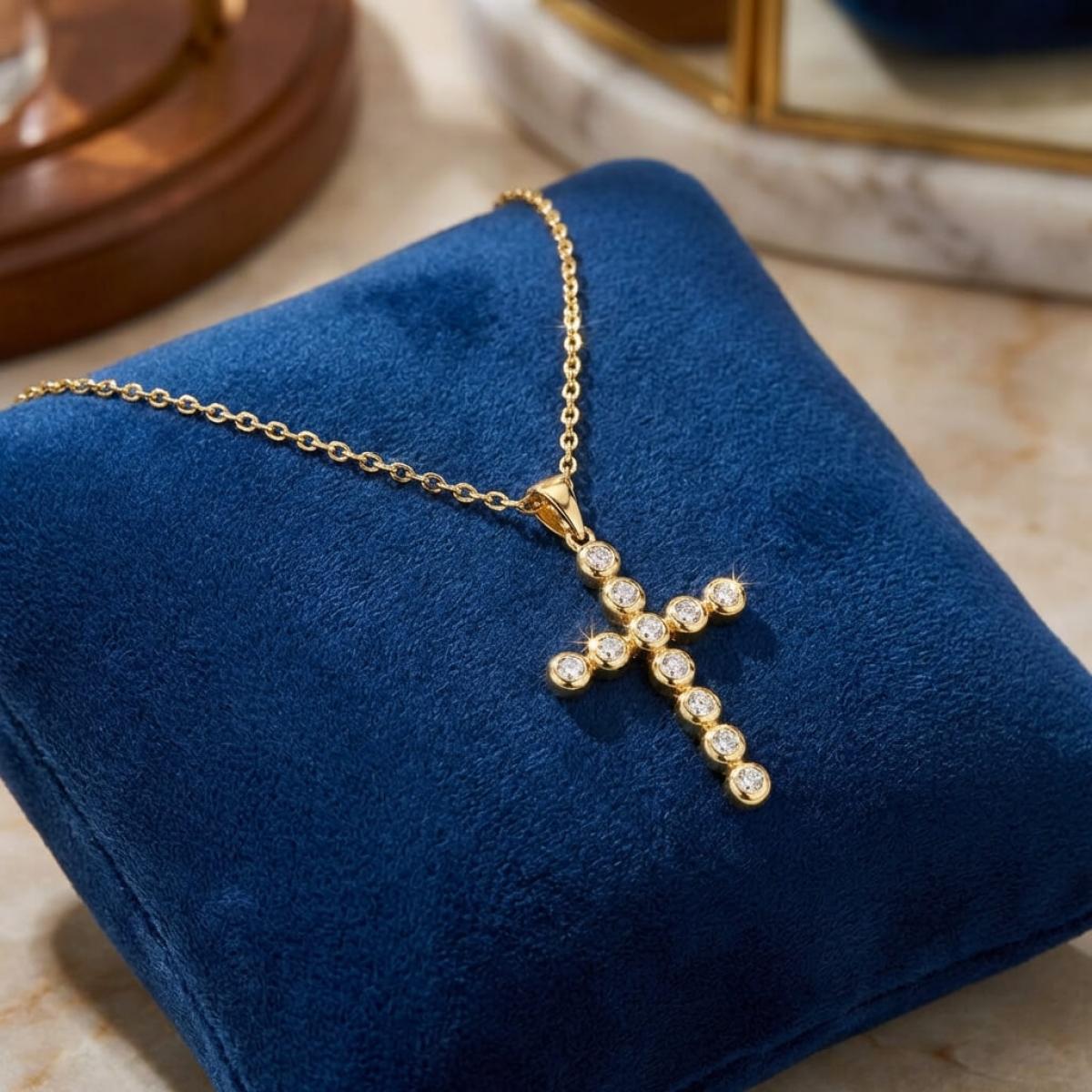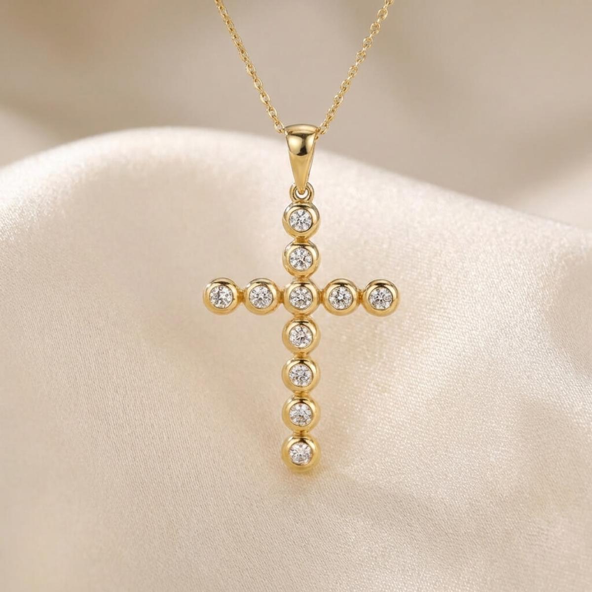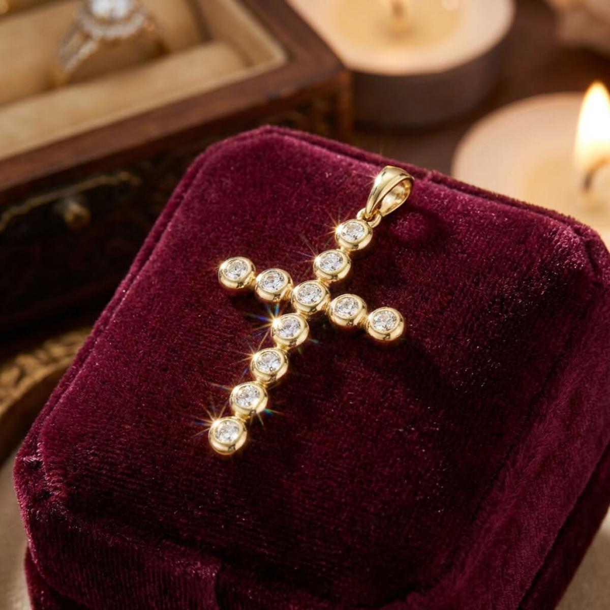 Кръстчето се изработва в два варианта: класическо жълто злато или от бяло злато. Изборът ви трябва да се базира на предпочитанията на бъдещата притежателка на бижуто. Обърнете внимание кои накити преобладават в личната ѝ колекция – сребърните или златните. Както жълтото, така и бялото злато се съчетават чудесно с прозрачните циркони. Те са универсална декорация за накитите от всеки вид благороден метал.
