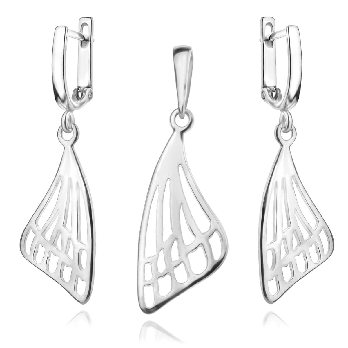 Най-добрият и лесен начин да синхронизирате различни бижута е, като използвате готов ювелирен ансамбъл. Предлагаме ви изящен сребърен комплект от обеци висулки и медальон. Дизайнът залага на изключително нежна форма , наподобяваща ангелско крило. Можете да добавите сребърен синджир към своята поръчка.