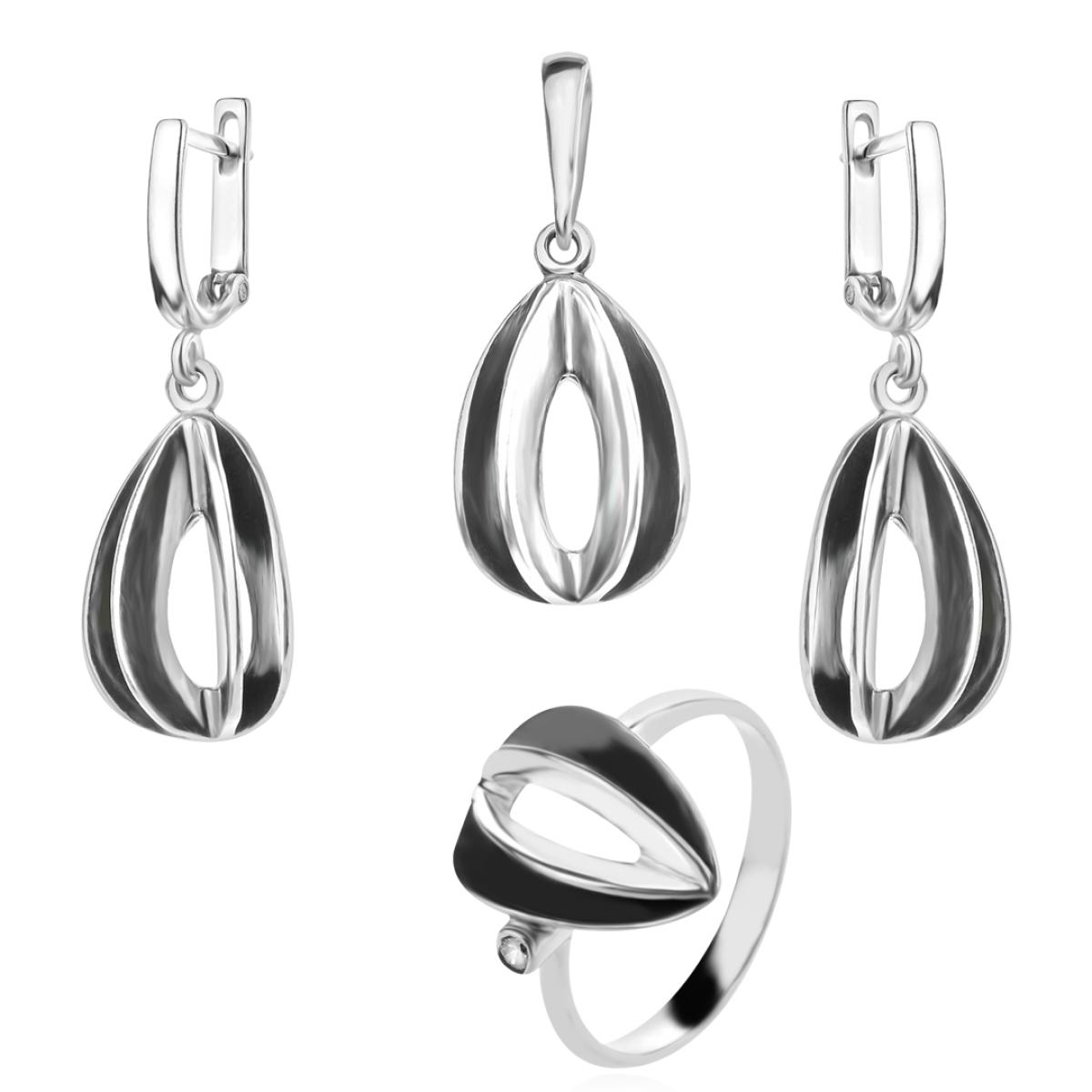 Елегантен сребърен комплект пр.925 обеци, медальон и пръстен. Комплектът е много нежен и е подходящ както за делови срещи в офиса, така и за ежедневието.