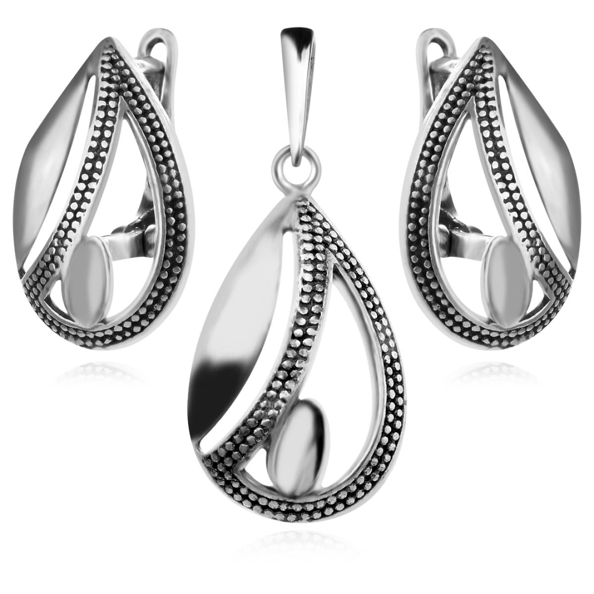 Елегантен сребърен комплект пр.925 обеци, медальон и пръстен. Комплектът е много нежен и е подходящ както за делови срещи в офиса, така и за ежедневието.
