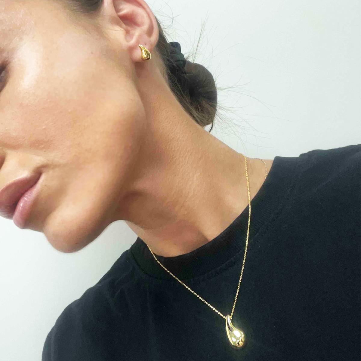 Капковидният дизайн на бижутата в този комплект е само част от тяхното очарование. Когато се изберат във „златен” вариант, те са достойно допълнение към визията на стилната жена. Решавайки да позлатим този сет от колие и обеци, ние ви даваме възможност да го закупите на много по-ниска цена, отколкото ако е направен изцяло от злато.