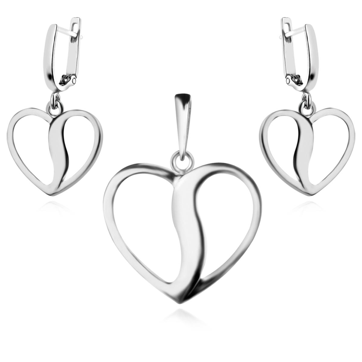 Сребърен Комплект Сърца Обеци и Медальон 7148