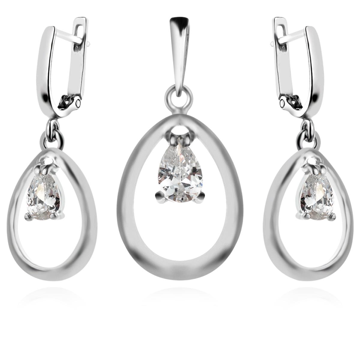 Сребърен Комплект Обеци И Медальон с циркони 7145