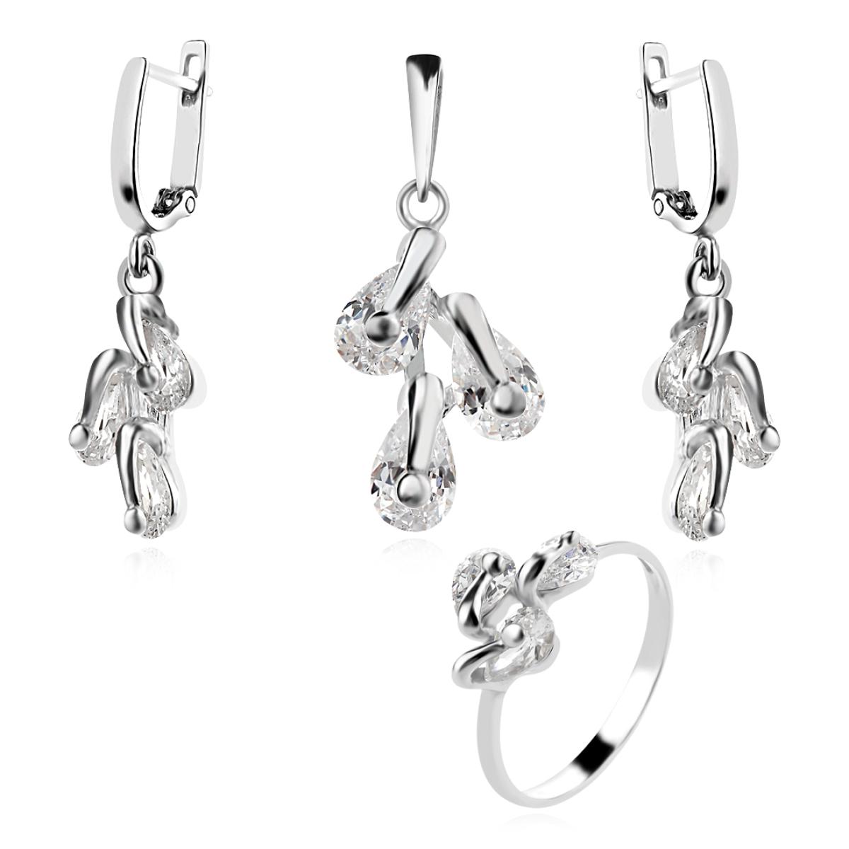 Сребърен Комплект Обеци, Медальон и Пръстен с Цирконий 7162