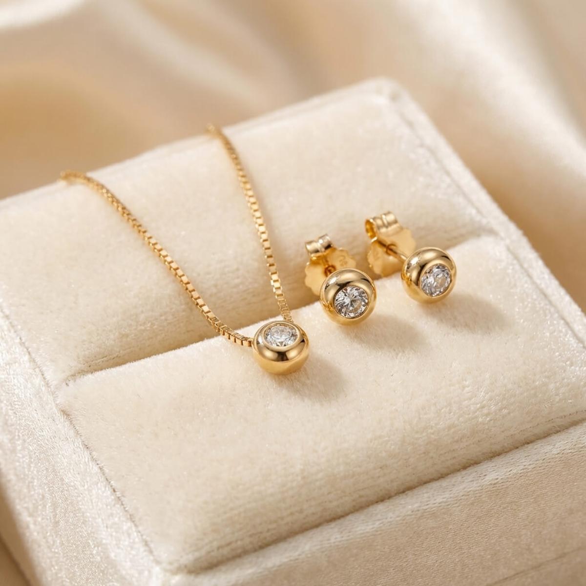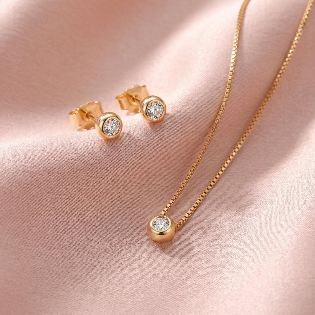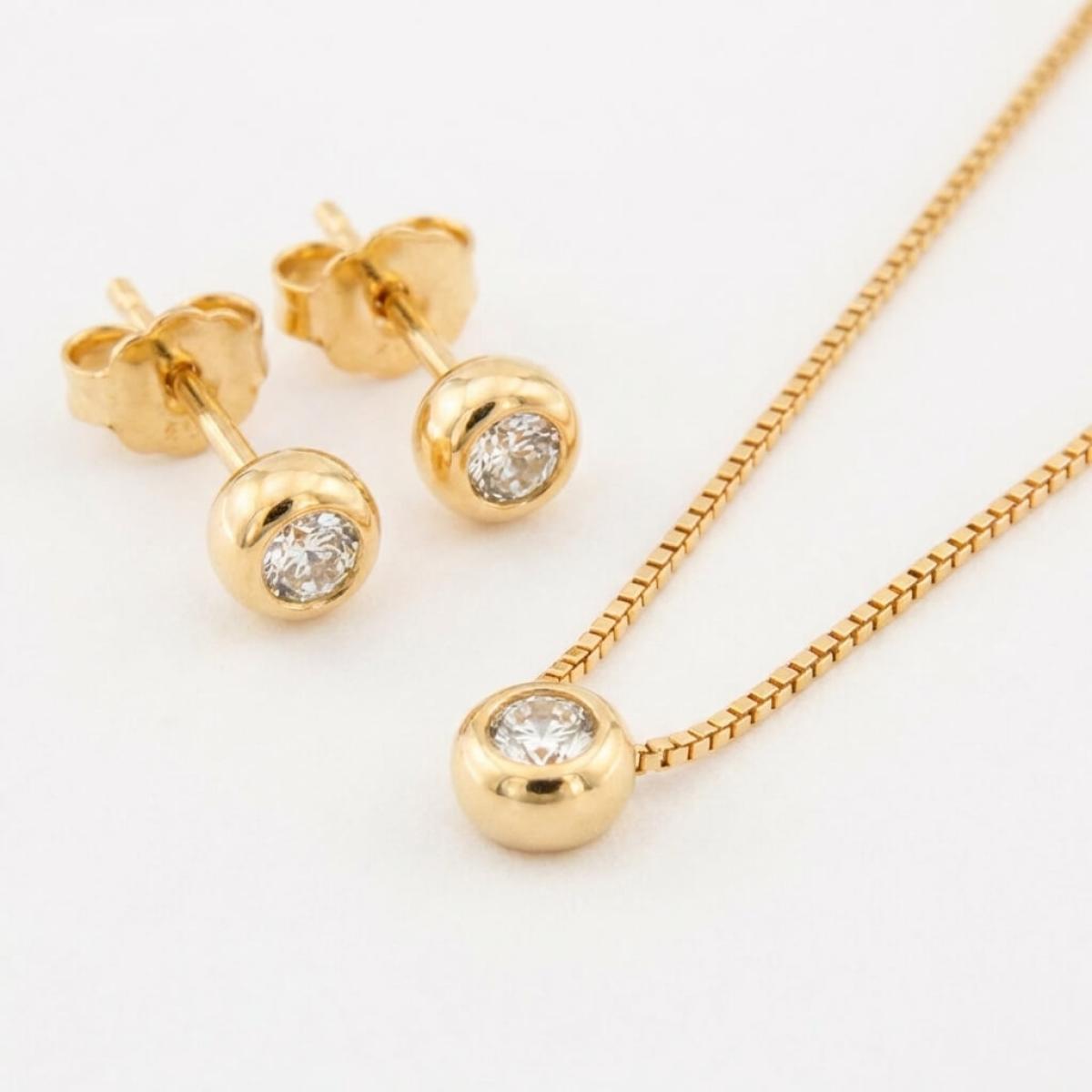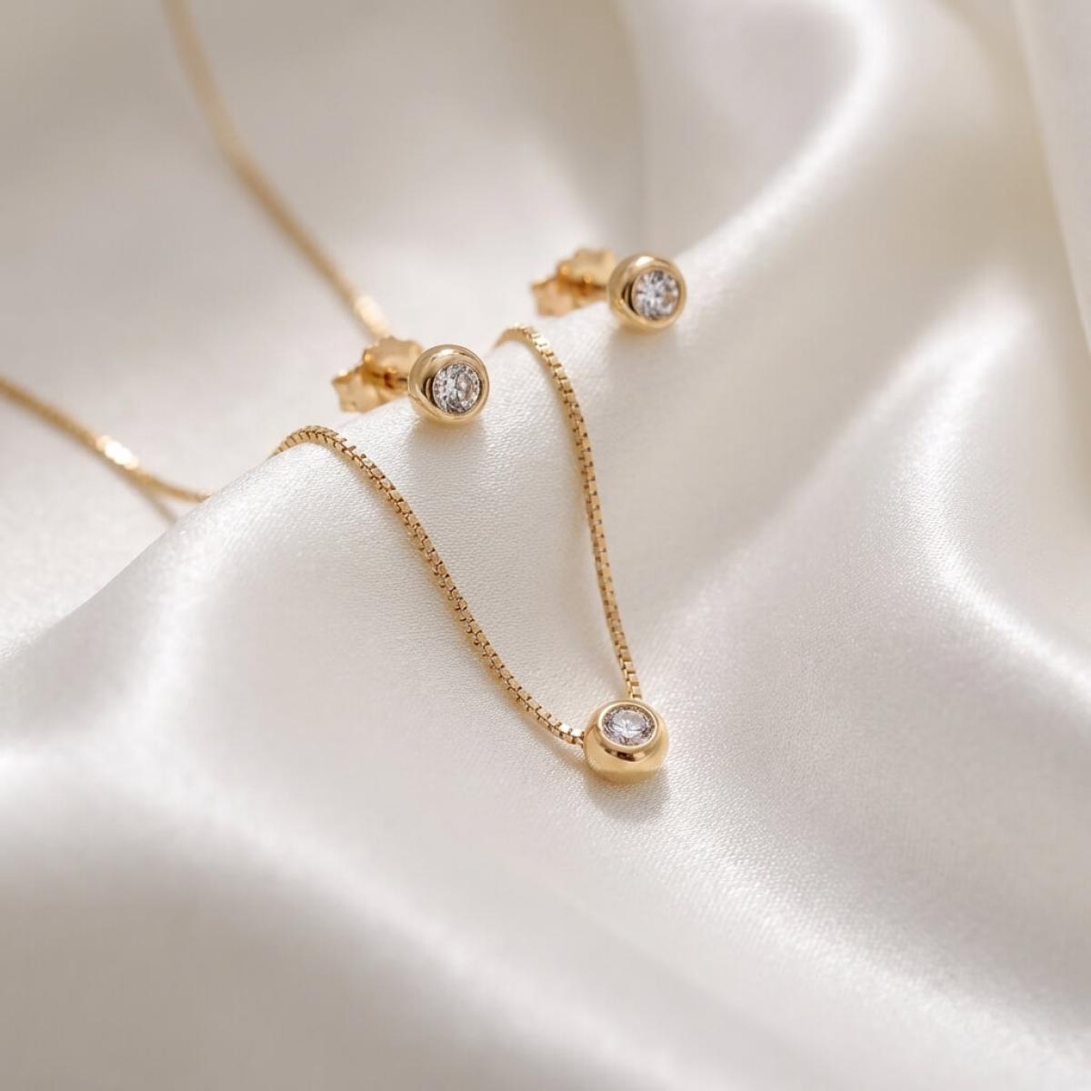 Златният комплект Нежен Циркон е едно обаятелно ювелирно изделие, което ще стои прекрасно на всяка женска шия. Заслужава си да го поднесете като подарък на любимата жена, за да ѝ покажете, че тя е вашата кралица. Майсторите бижутери на бижутерия Паладиум са вложили цялата любов и старание в неговата изработка. Златният накит запазва не само финансовата си, но и своята емоционална стойност.