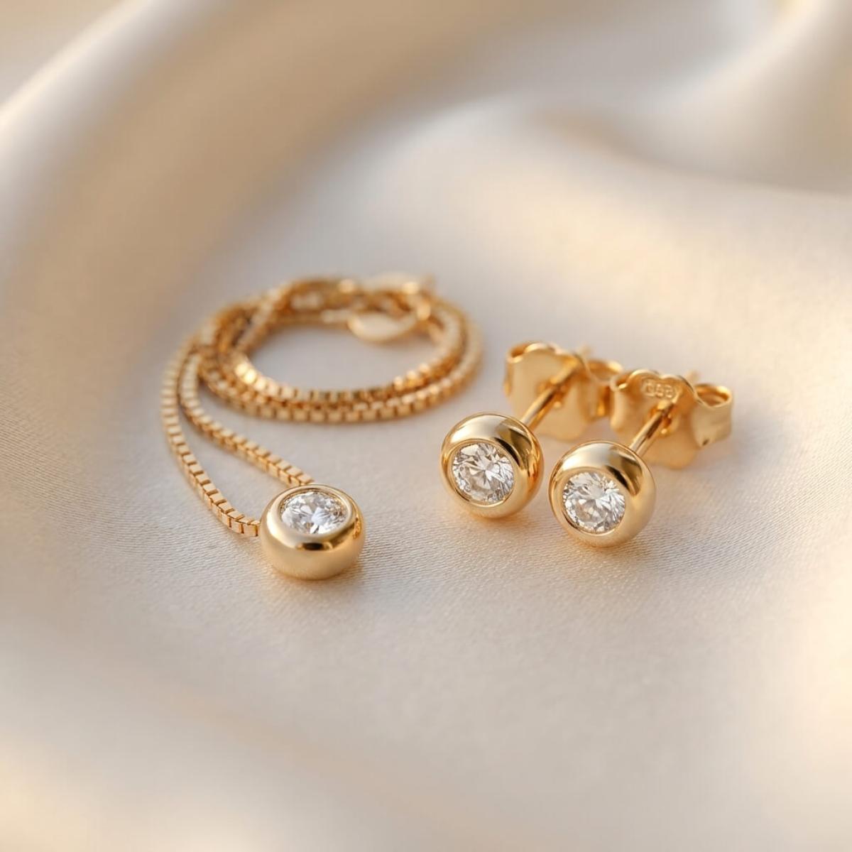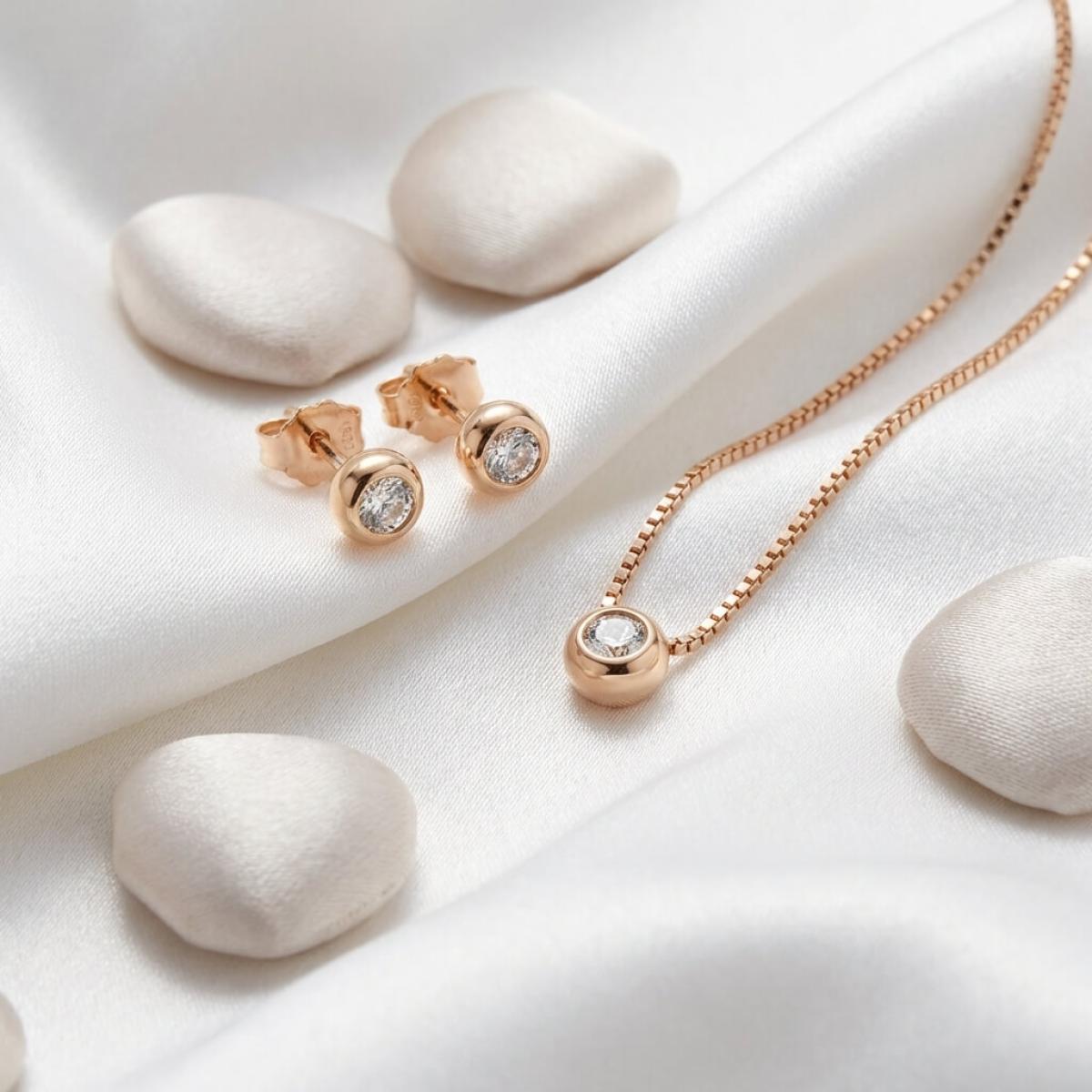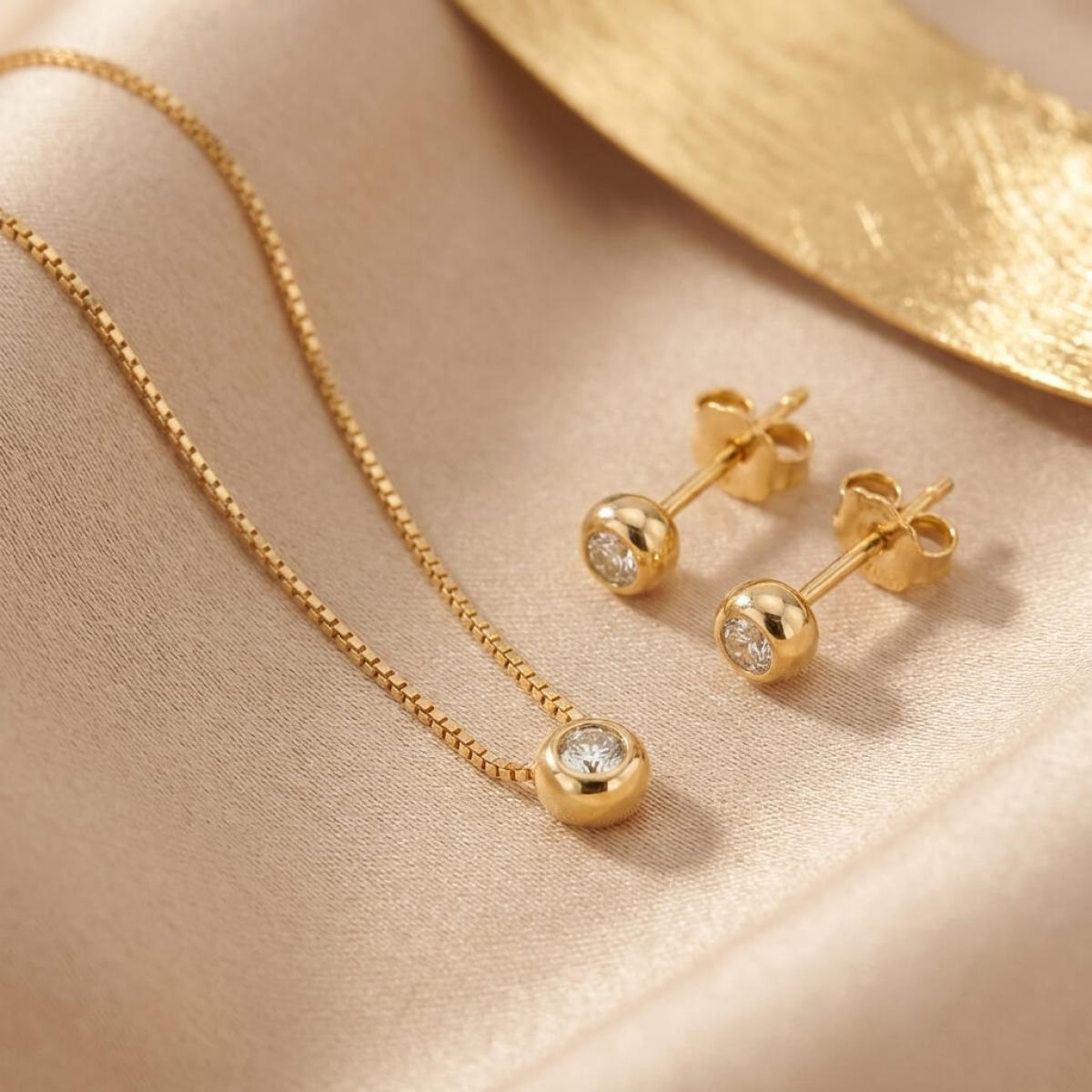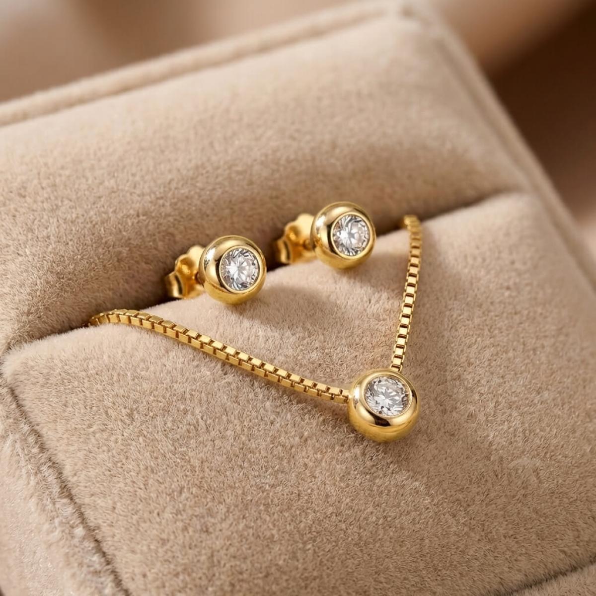 Златният комплект Нежен Циркон е едно обаятелно ювелирно изделие, което ще стои прекрасно на всяка женска шия. Заслужава си да го поднесете като подарък на любимата жена, за да ѝ покажете, че тя е вашата кралица. Майсторите бижутери на бижутерия Паладиум са вложили цялата любов и старание в неговата изработка. Златният накит запазва не само финансовата си, но и своята емоционална стойност.