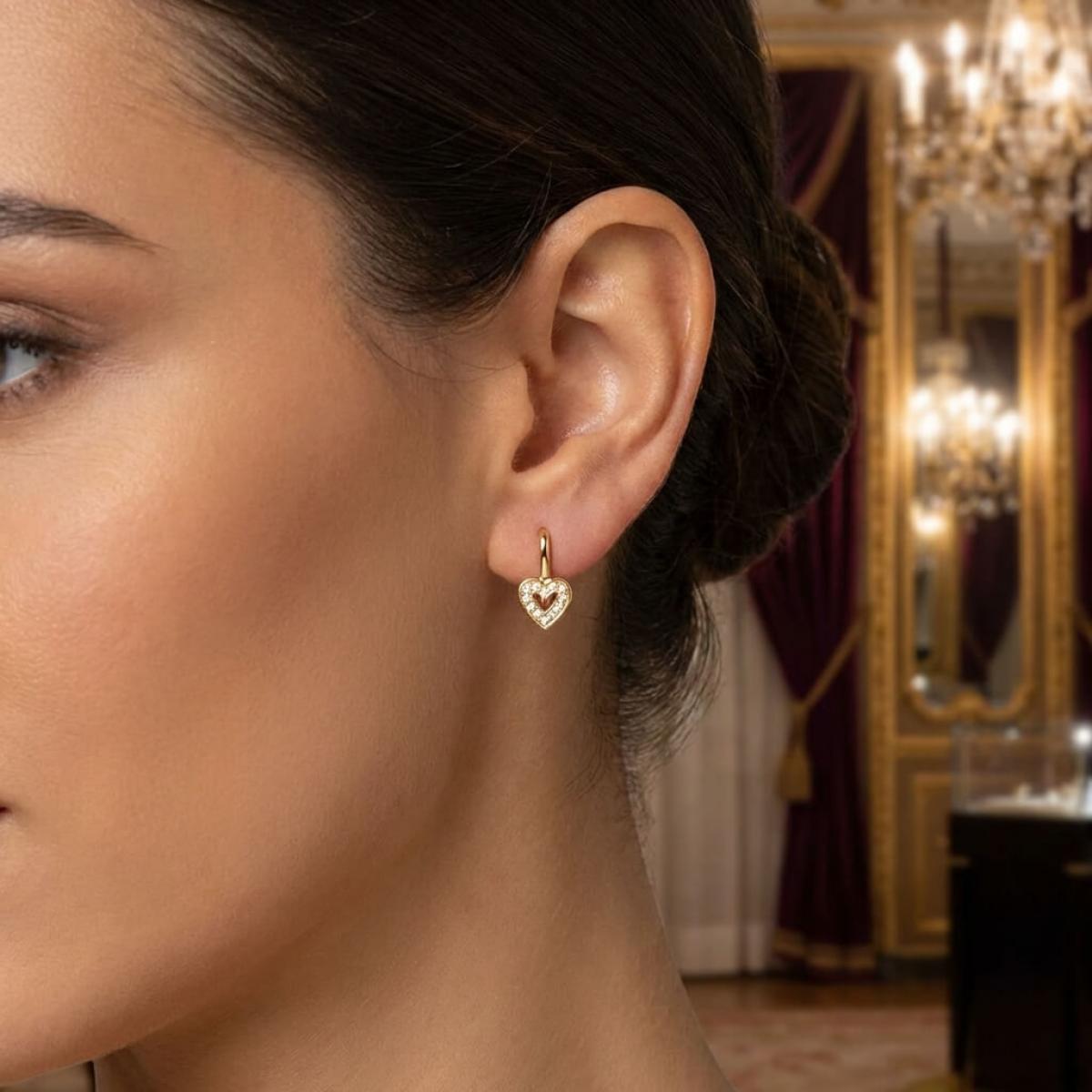 Нежни златни обеци във формата на сърце
