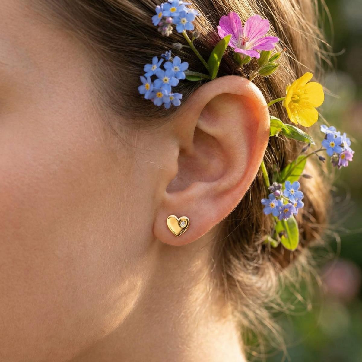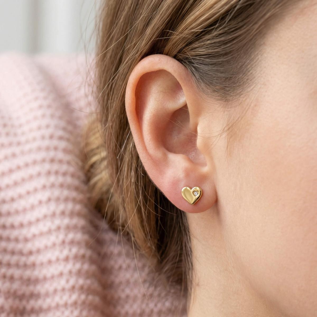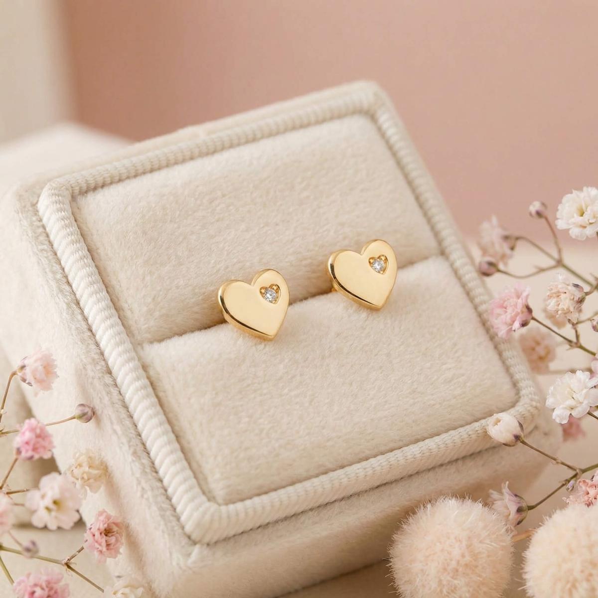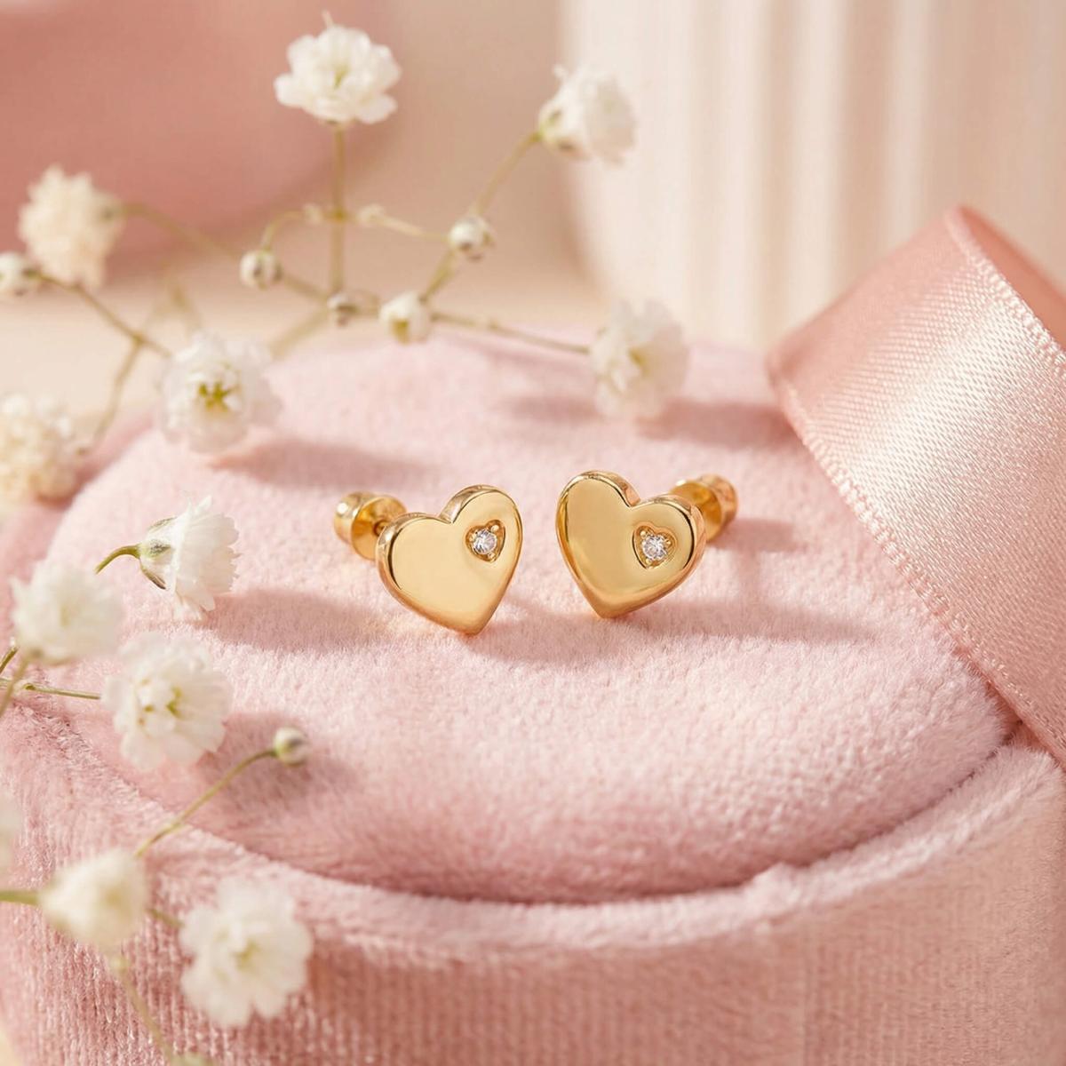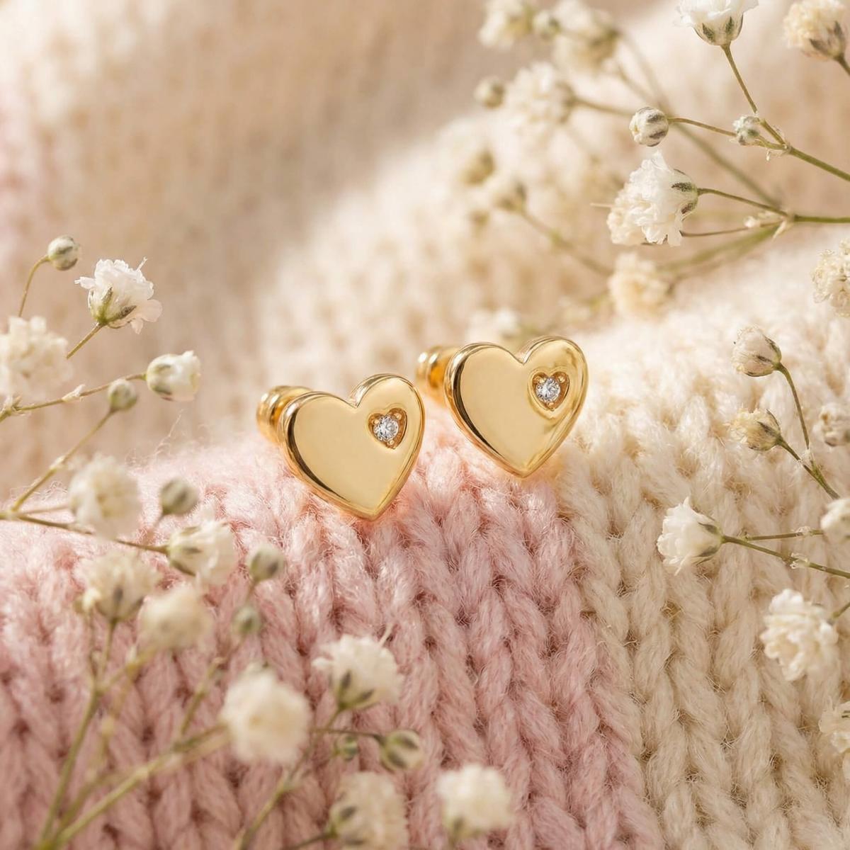 Нежни златни обеци във формата на сърце