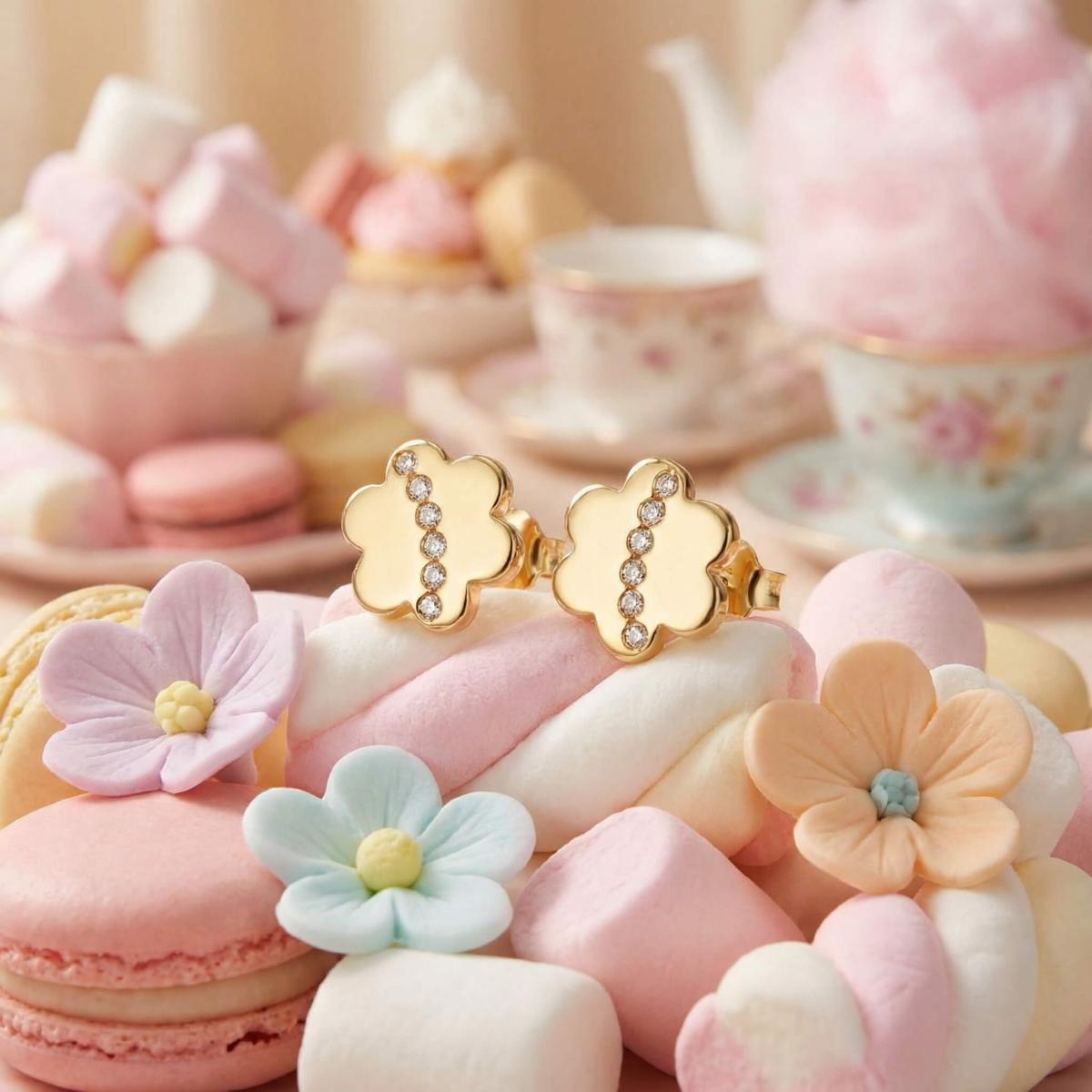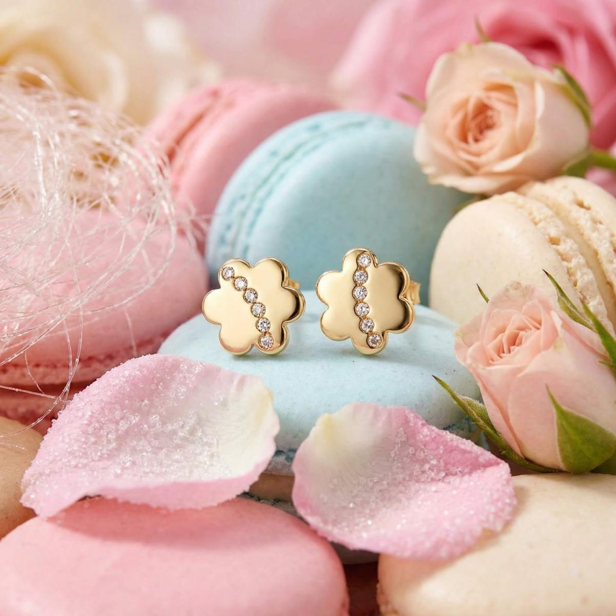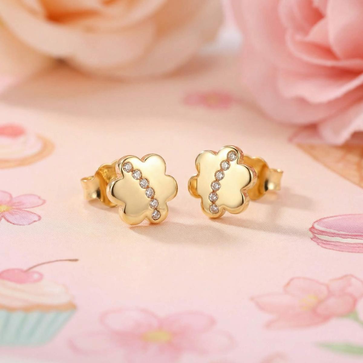 Детски златни обеци Диамантени цветя са нежно и очарователно бижу, създадено с внимание към детайла и любов към красотата.