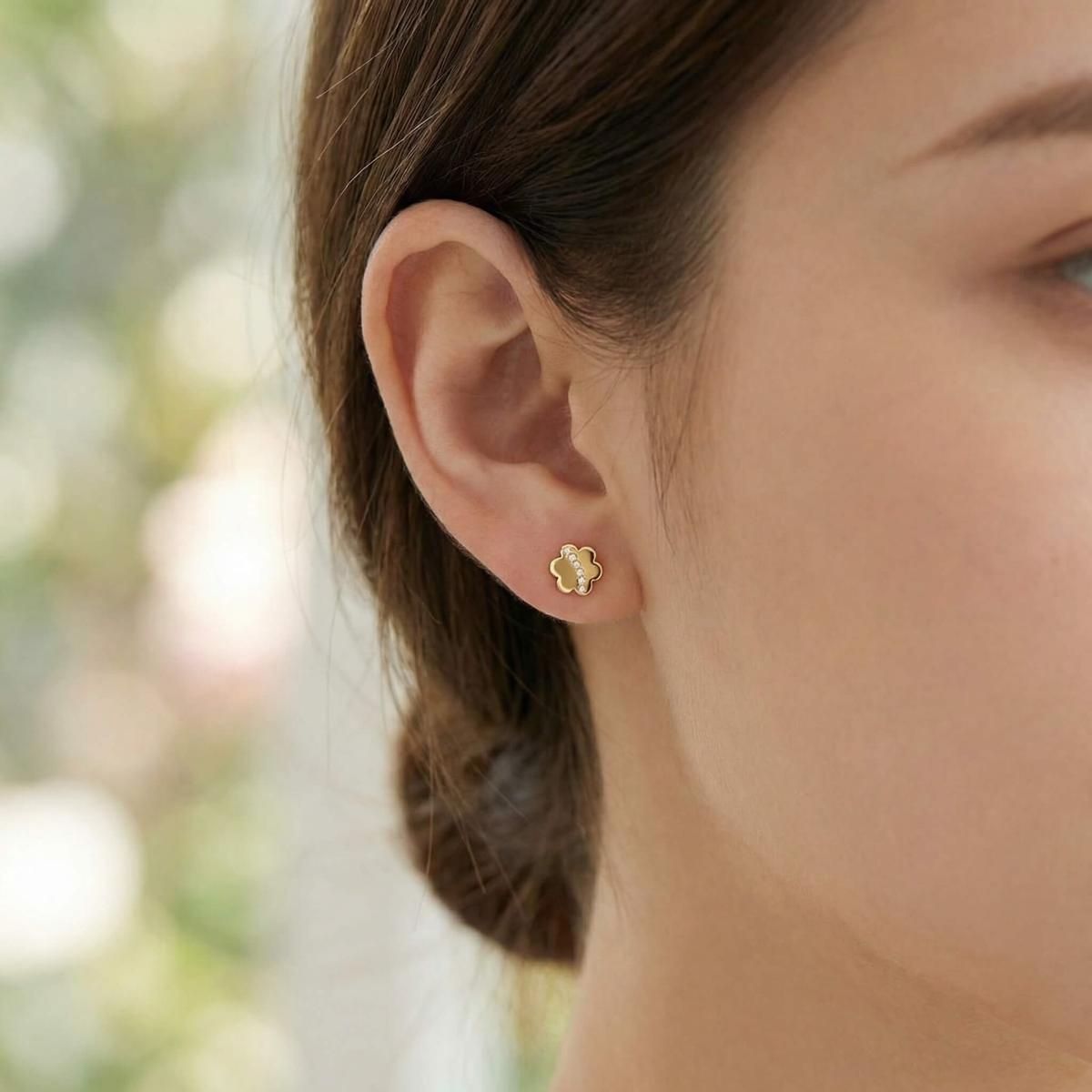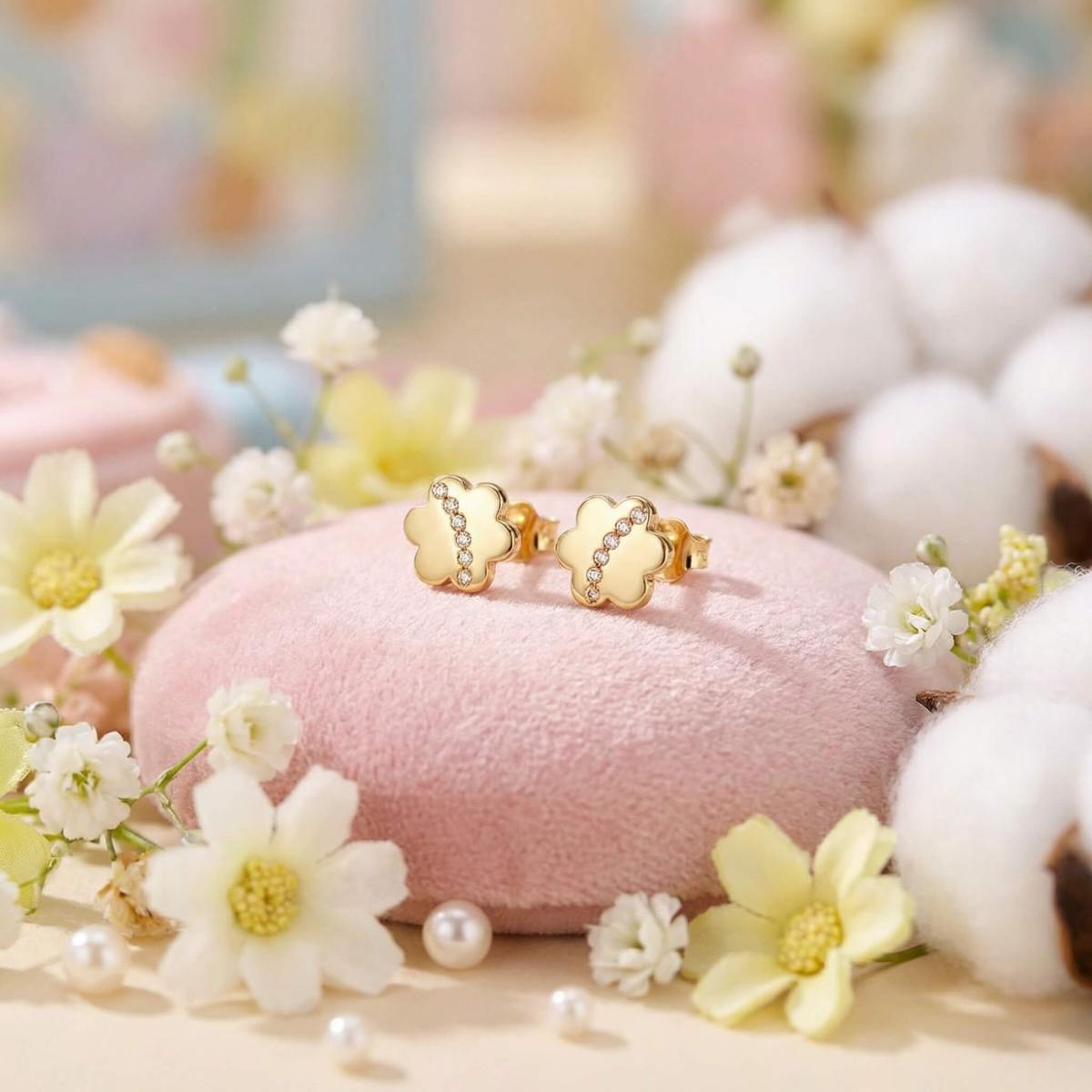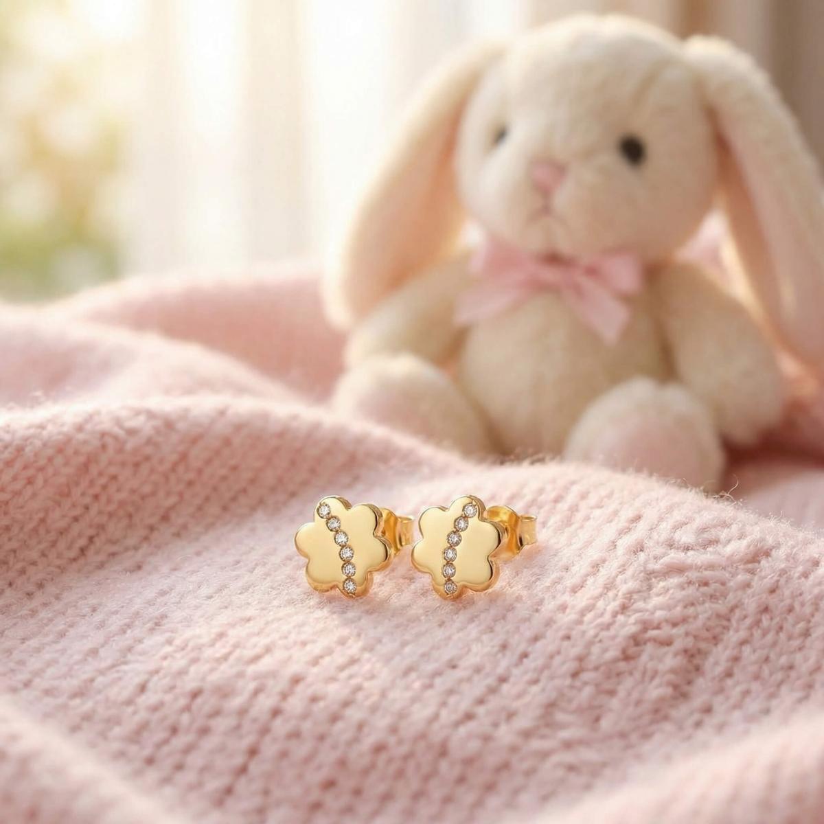 Тези нежни обеци са перфектният начин да добавите фин блясък към визията на вашето дете, като същевременно подчертават неговата невинност и чар.