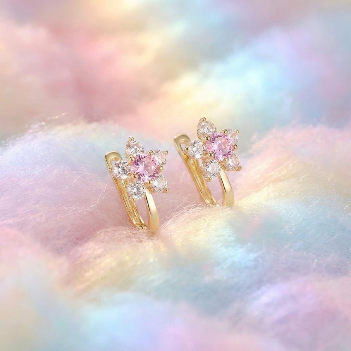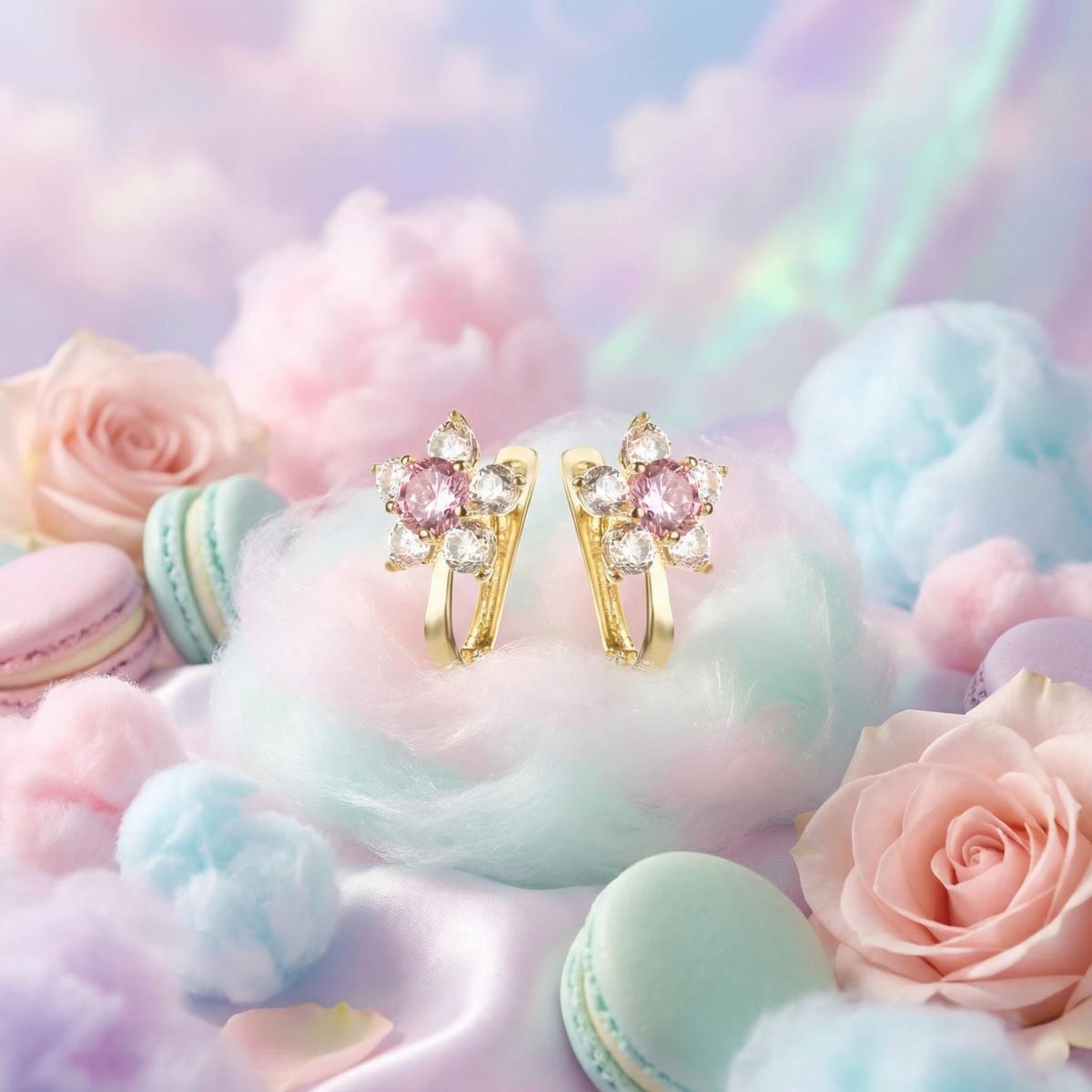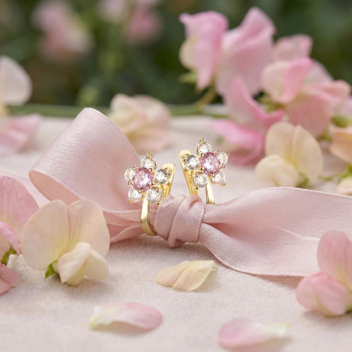 Детски златни обеци с бели и розови циркони