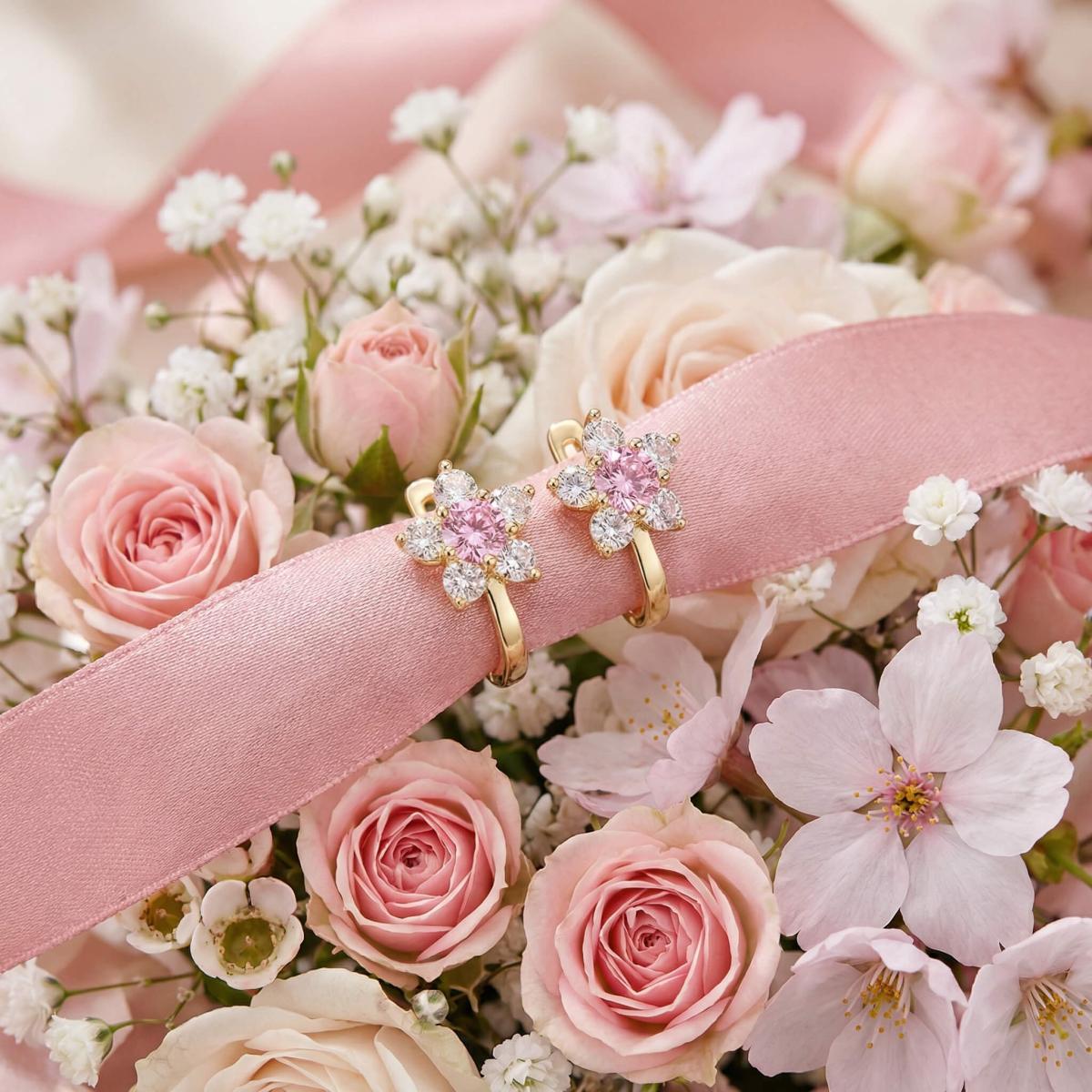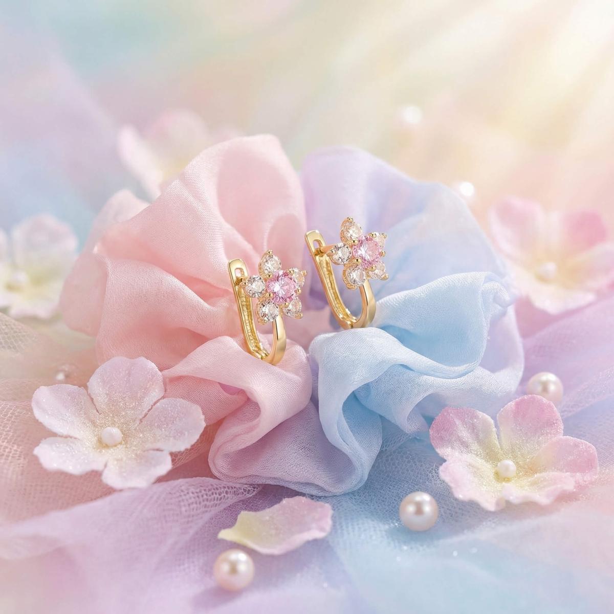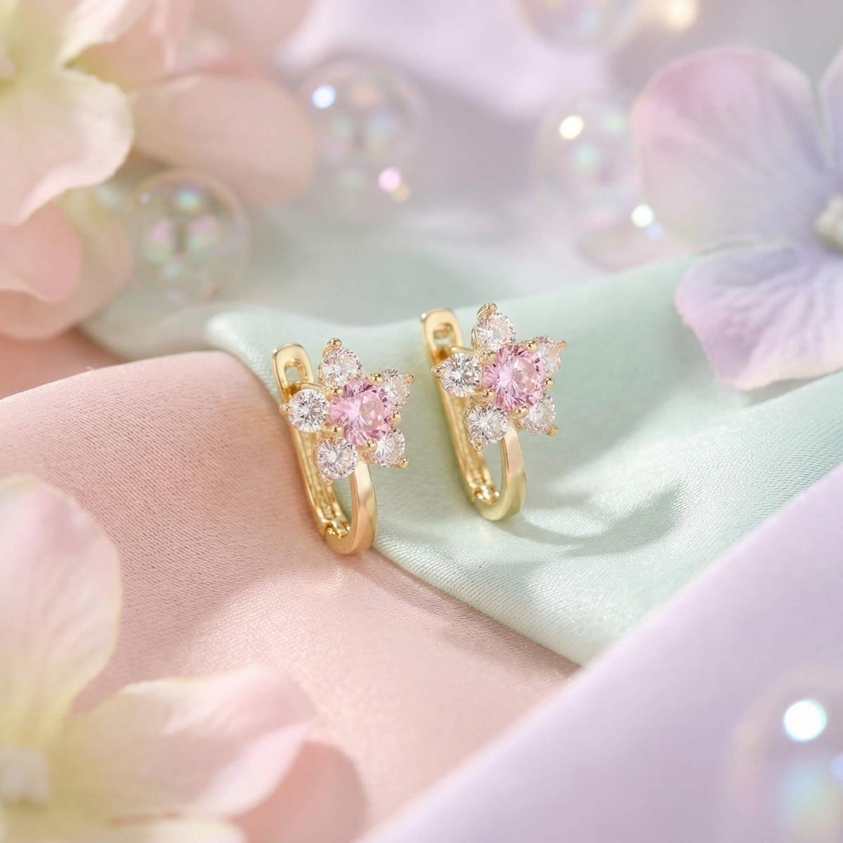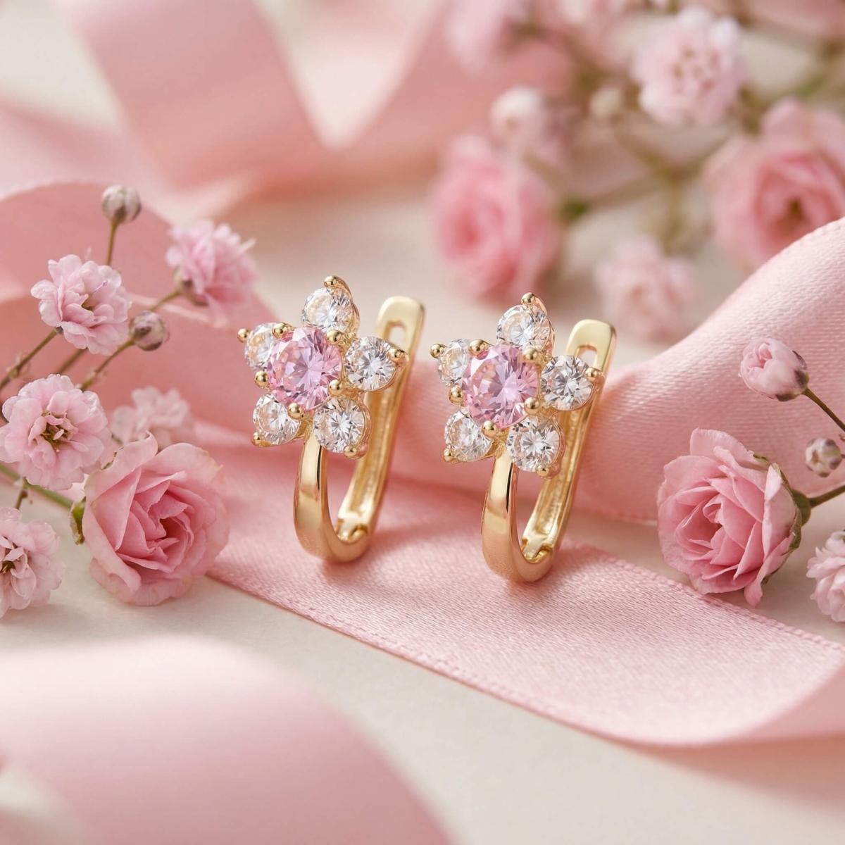 Детски златни обеци с бели и розови циркони