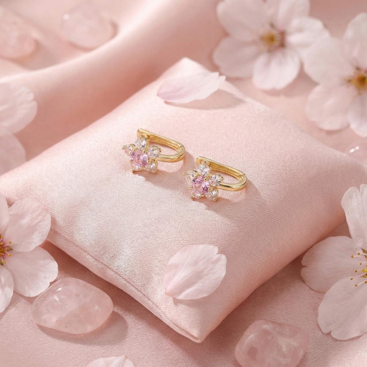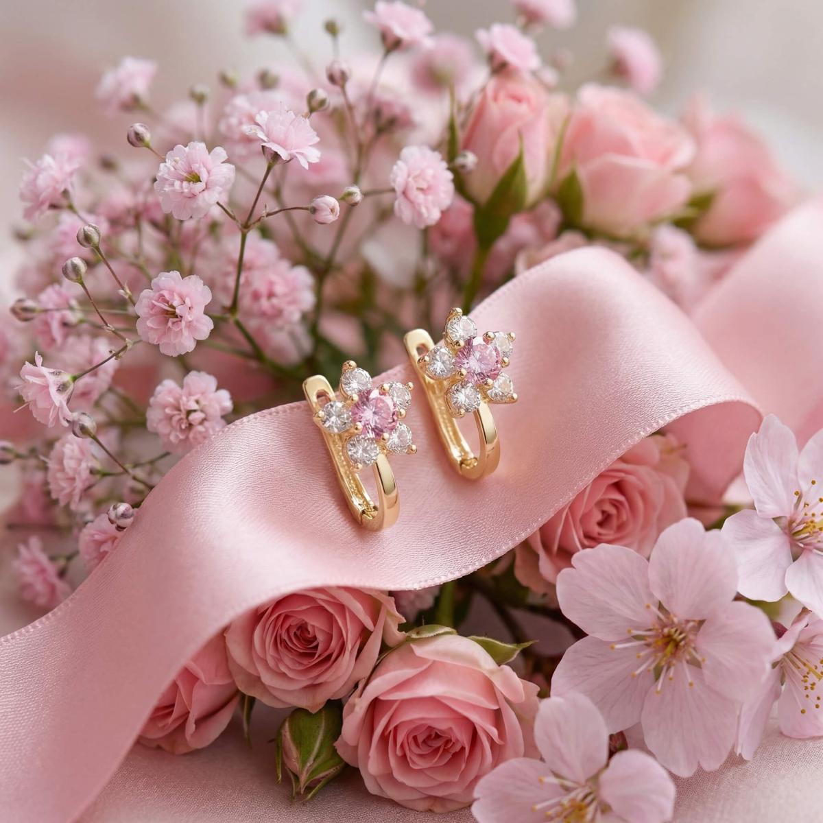 Детски златни обеци Розови Цветя